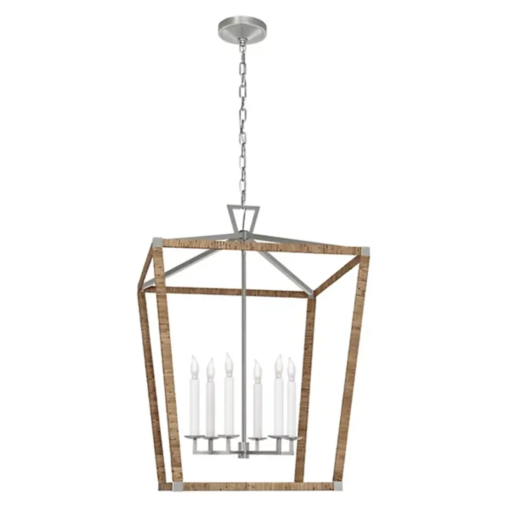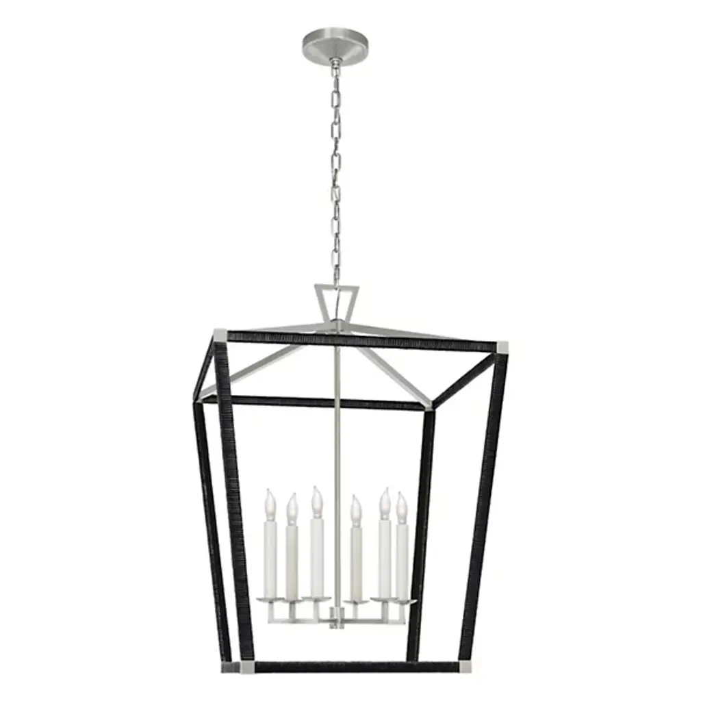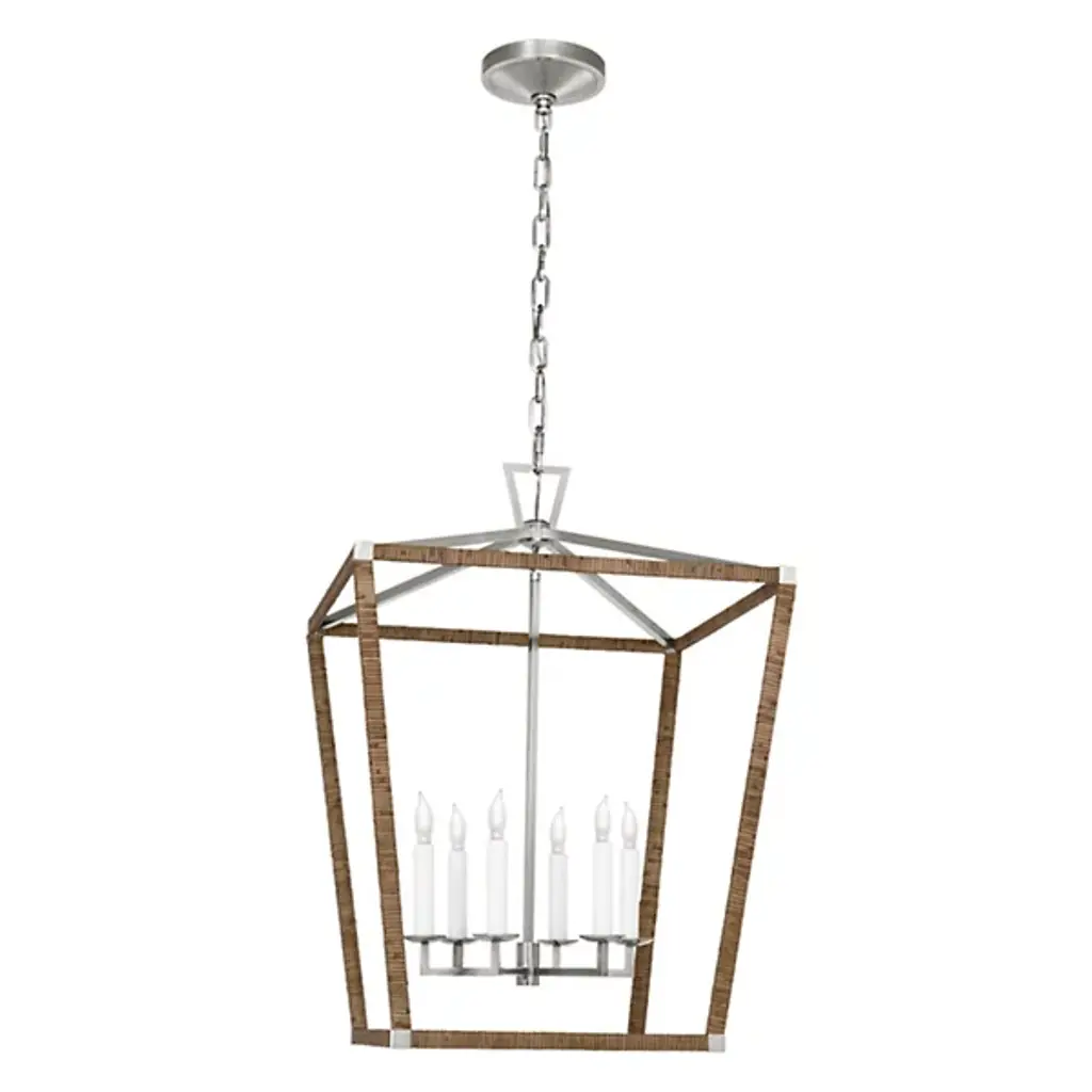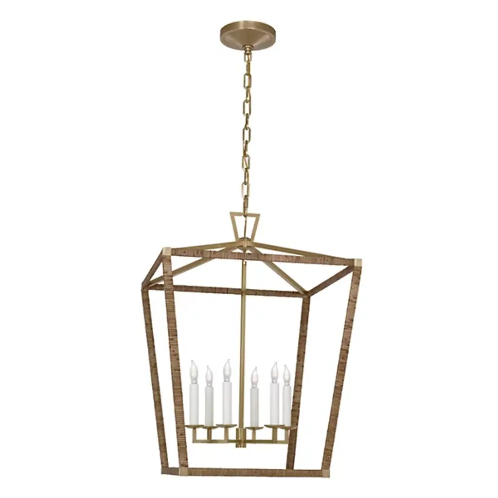 Bring a contemporary sense of style to your living space with the Darlana Wrapped Lantern Pendant from Visual Comfort Signature. Designed by Chapman & Myers, this pendant boasts a geometric framework of fine steel, which is shaped like a lantern. The eye is drawn to the ribbed detailing from natural rattan. Within this pendant’s angular frame rests a collection of candle-inspired LEDs.