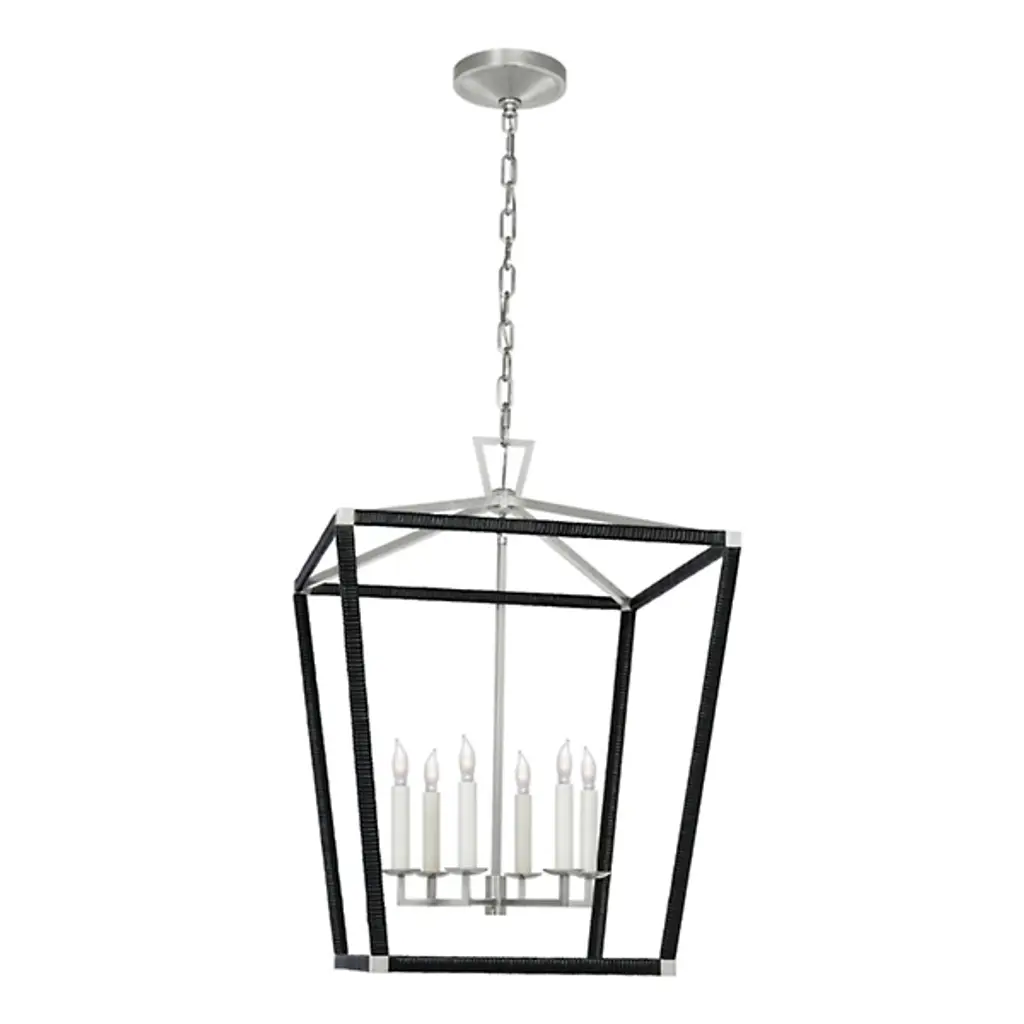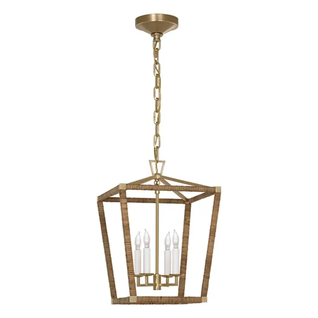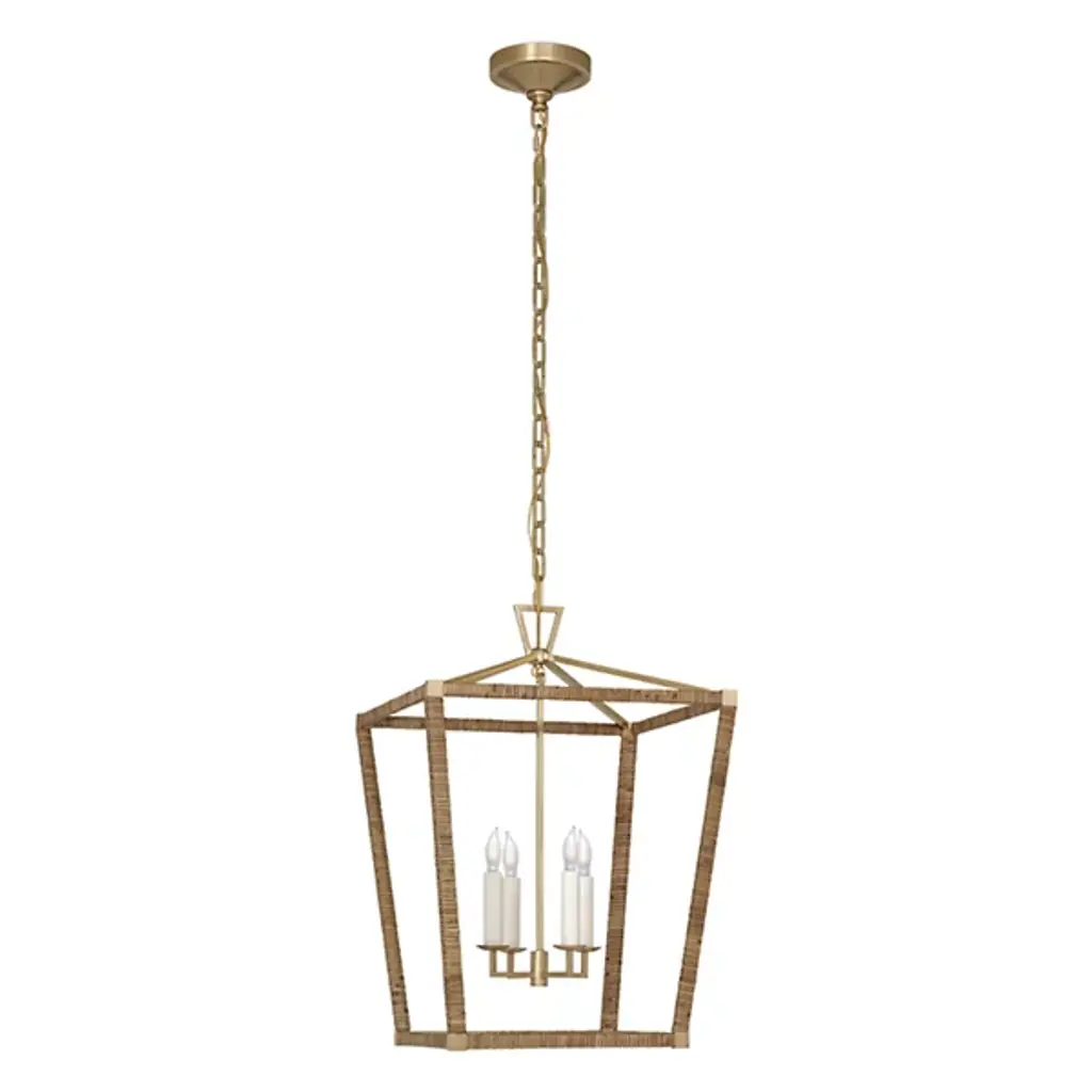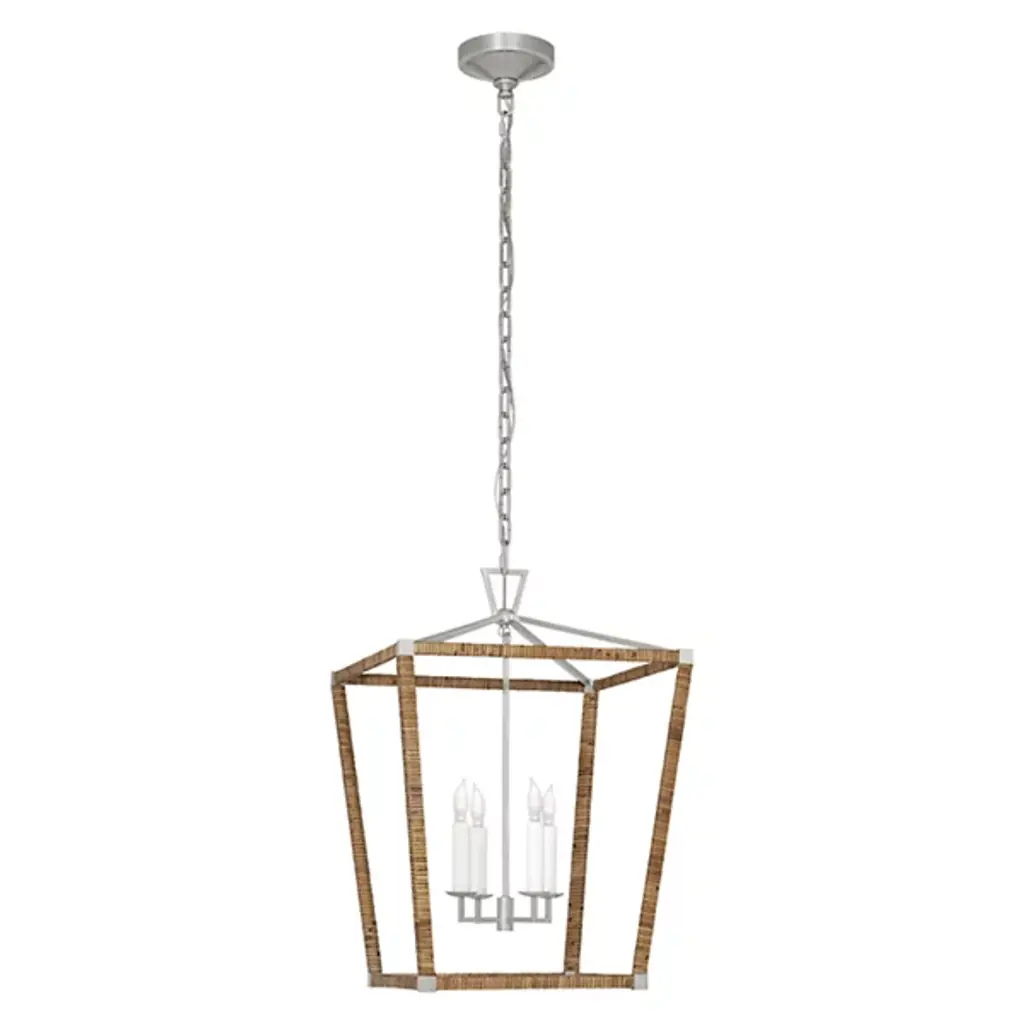Bring a contemporary sense of style to your living space with the Darlana Wrapped Lantern Pendant from Visual Comfort Signature. Designed by Chapman & Myers, this pendant boasts a geometric framework of fine steel, which is shaped like a lantern. The eye is drawn to the ribbed detailing from natural rattan. Within this pendant’s angular frame rests a collection of candle-inspired LEDs.