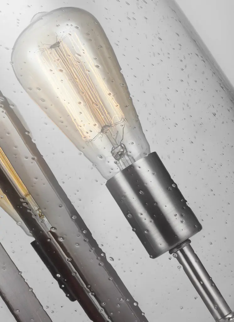 The Dawes three light indoor pendant in brushed nickel is the perfect way to achieve your desired fashion or functional needs in your home. This chic Dawes pendant light by will gracefully take center stage in any foyer, kitchen or dining room. The sleek, modern silhouette adds excitement to any room without over shadowing furniture and decor. Light shines through a Clear Seeded glass shade, making the Dawes pendant an airy, unobtrusive but definitive style statement that comes to life with its cylindrical shape. Dawes comes in a choice of either a Brushed Nickel or Burnt Sienna finish which offers a clean, simplistic design to complement your living room, dining room, or in a cluster over a kitchen island. Fixtures are California Title 24 compliant and easily convert to LED by purchasing LED lamps sold separately.