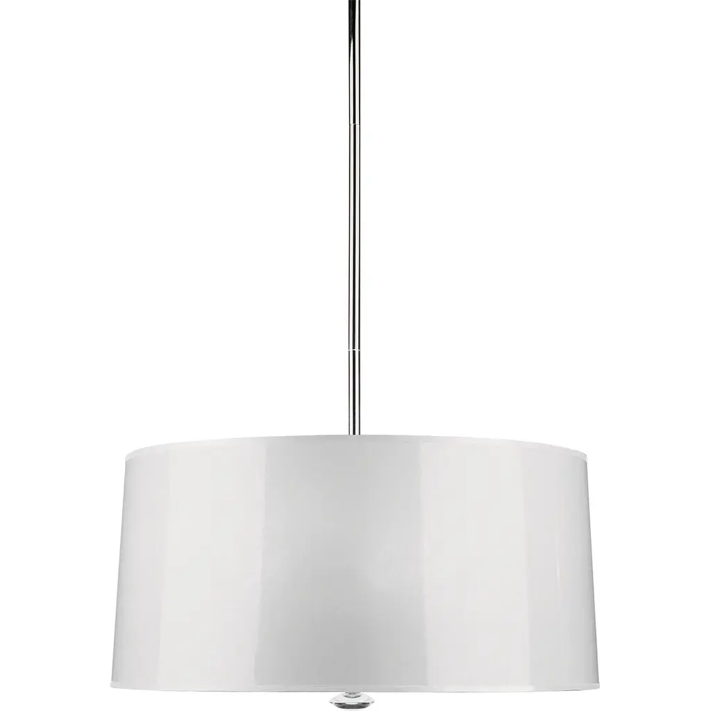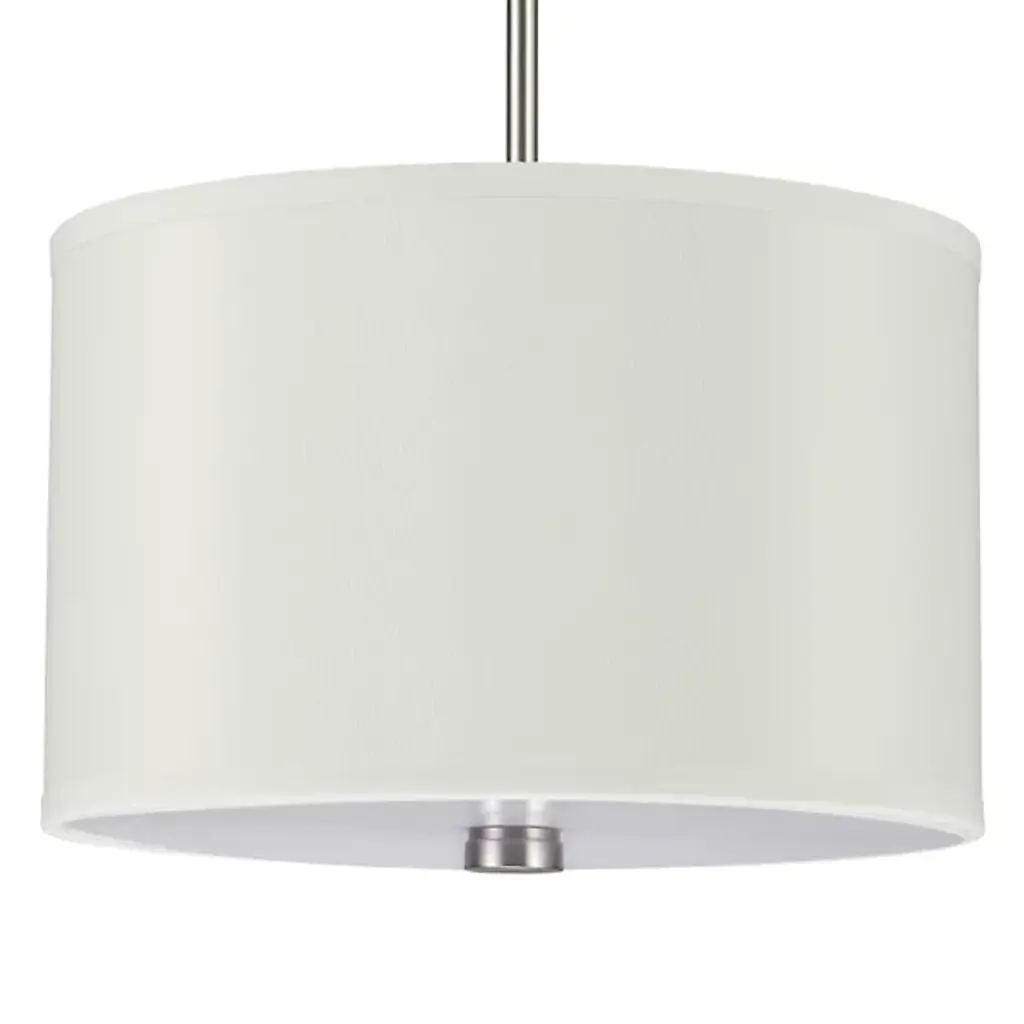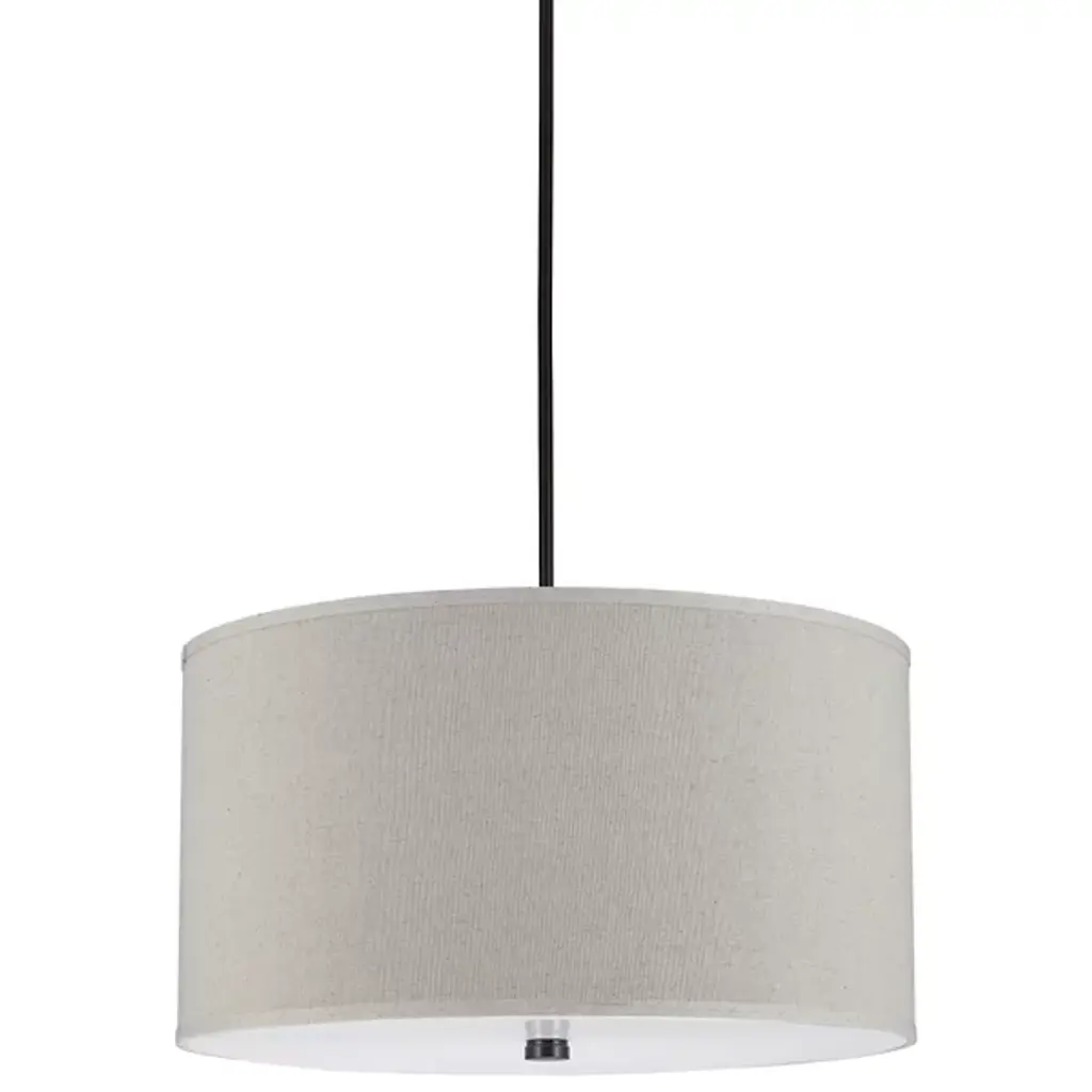 The Dayna Pendant by Visual Comfort Studio, formerly known as Sea Gull Lighting, captures the essence of the classic drum shade with its tailored aesthetic and welcoming ambiance. Its recognizable design features a sleek, fabric shade and a smooth acrylic diffuser that is held in place by a decorative metal finial. Once lit, a series of internal sources radiate through the shade and diffuser, creating a warm, glare-free illumination for the surrounding space.