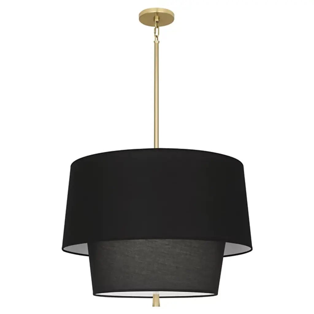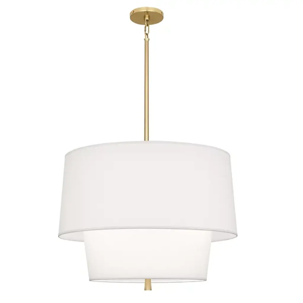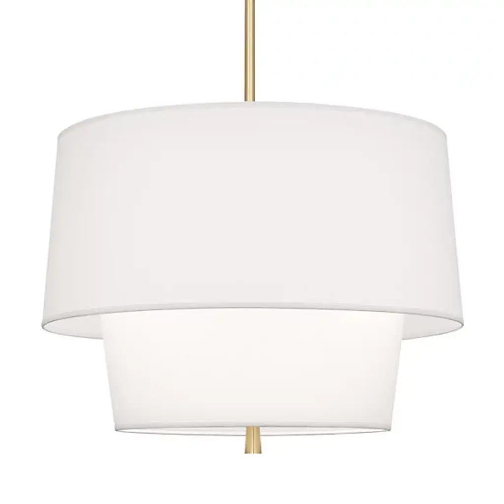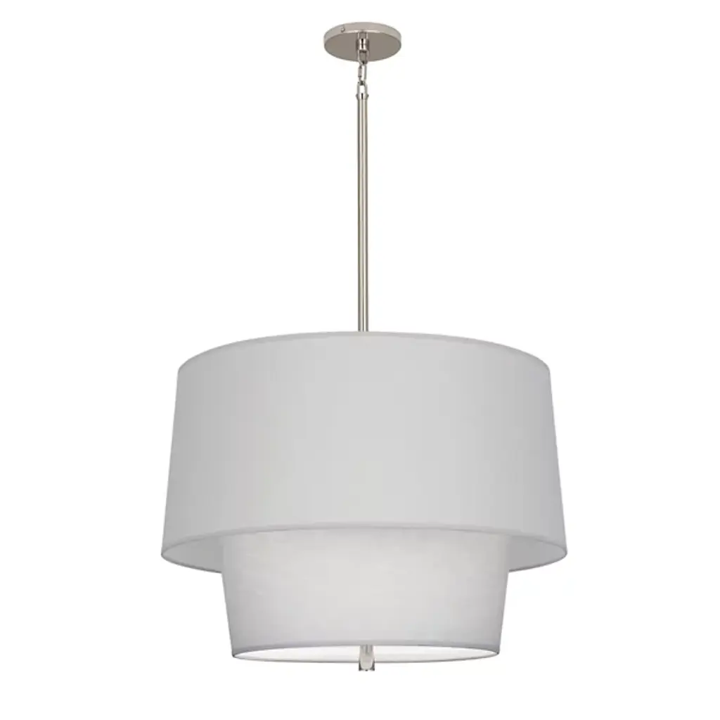 Simplicity and elegance define the Decker Pendant by Robert Abbey. A metal canopy and short stem complement a rounded hardback fabric shade surrounding a corresponding inner shade. Its seamless design forms a distinctive silhouette that instantly sets an artful tone for the room without being too bold. Its light is filtered through both shades, softening its glow and allowing it to spread evenly throughout the area for the perfect indoor atmosphere.