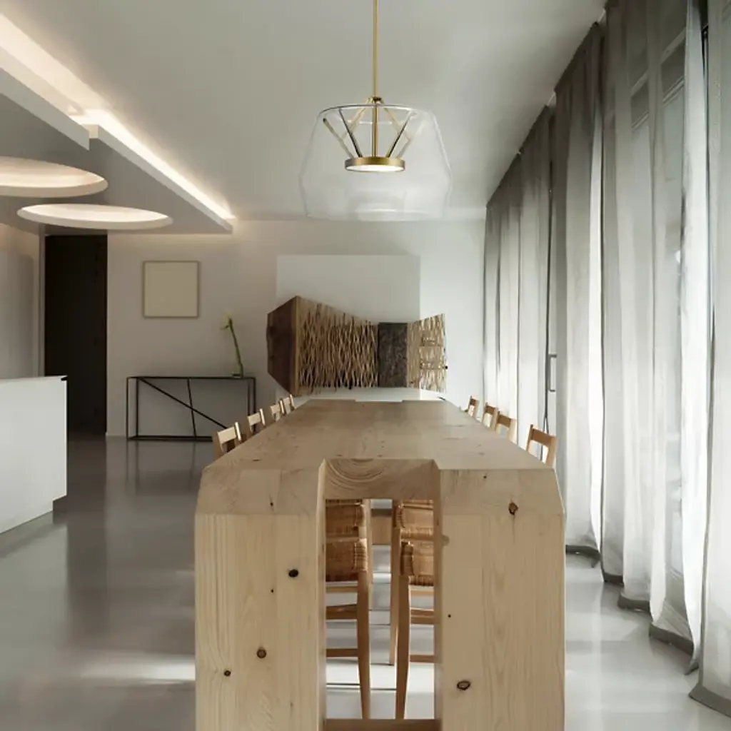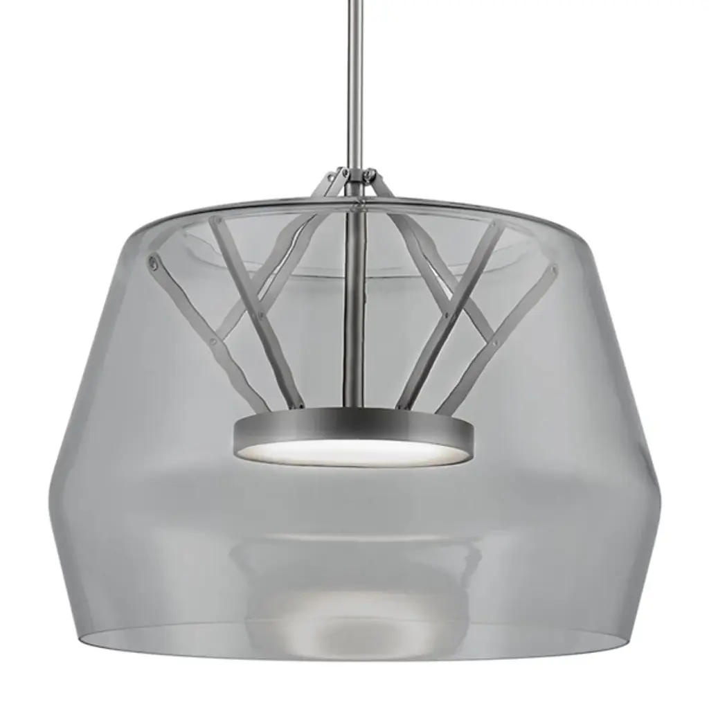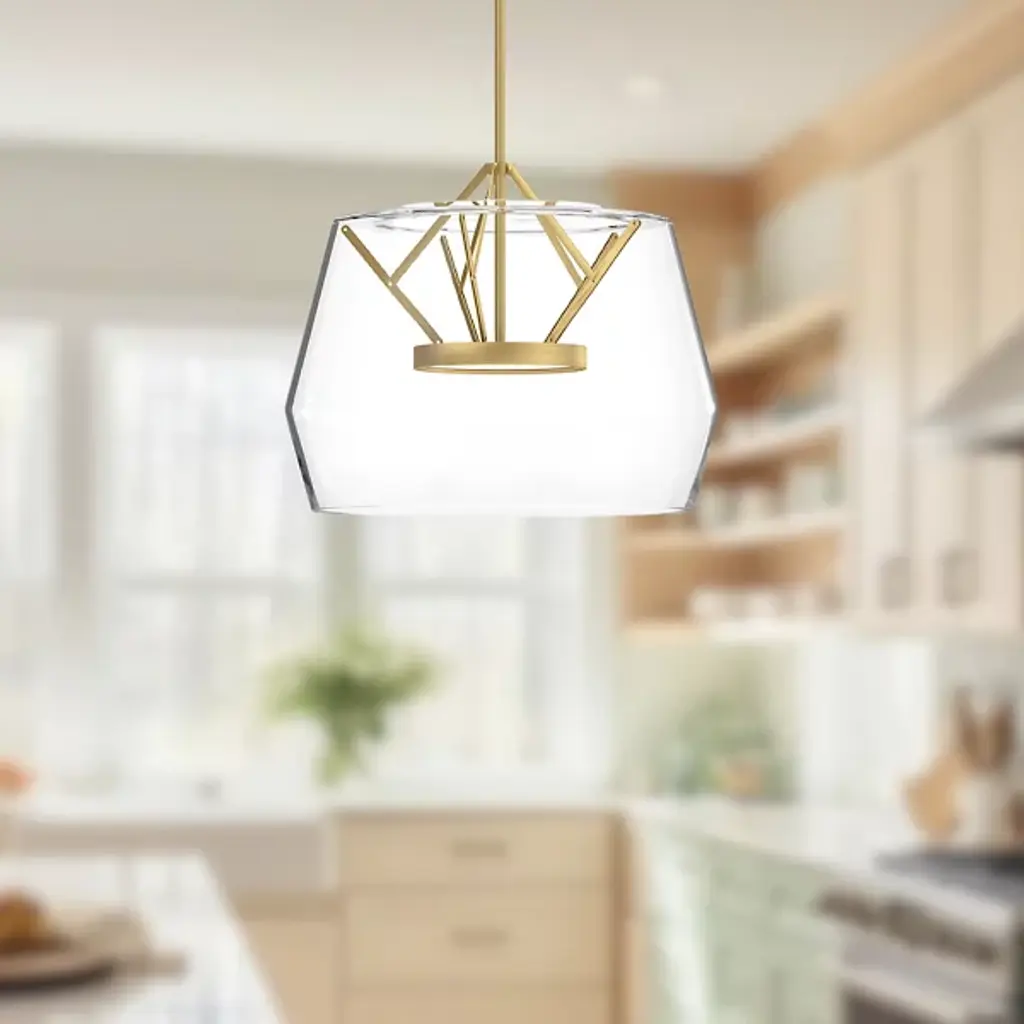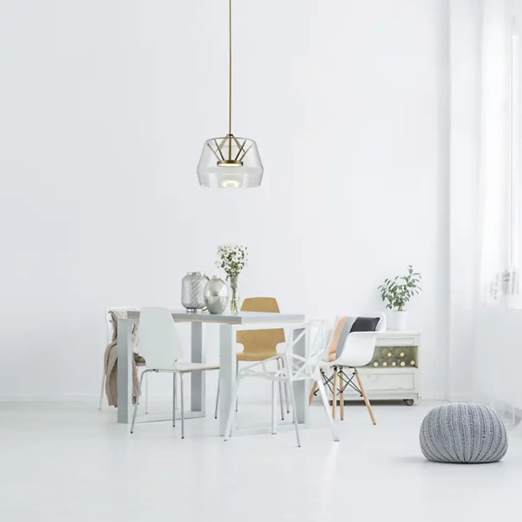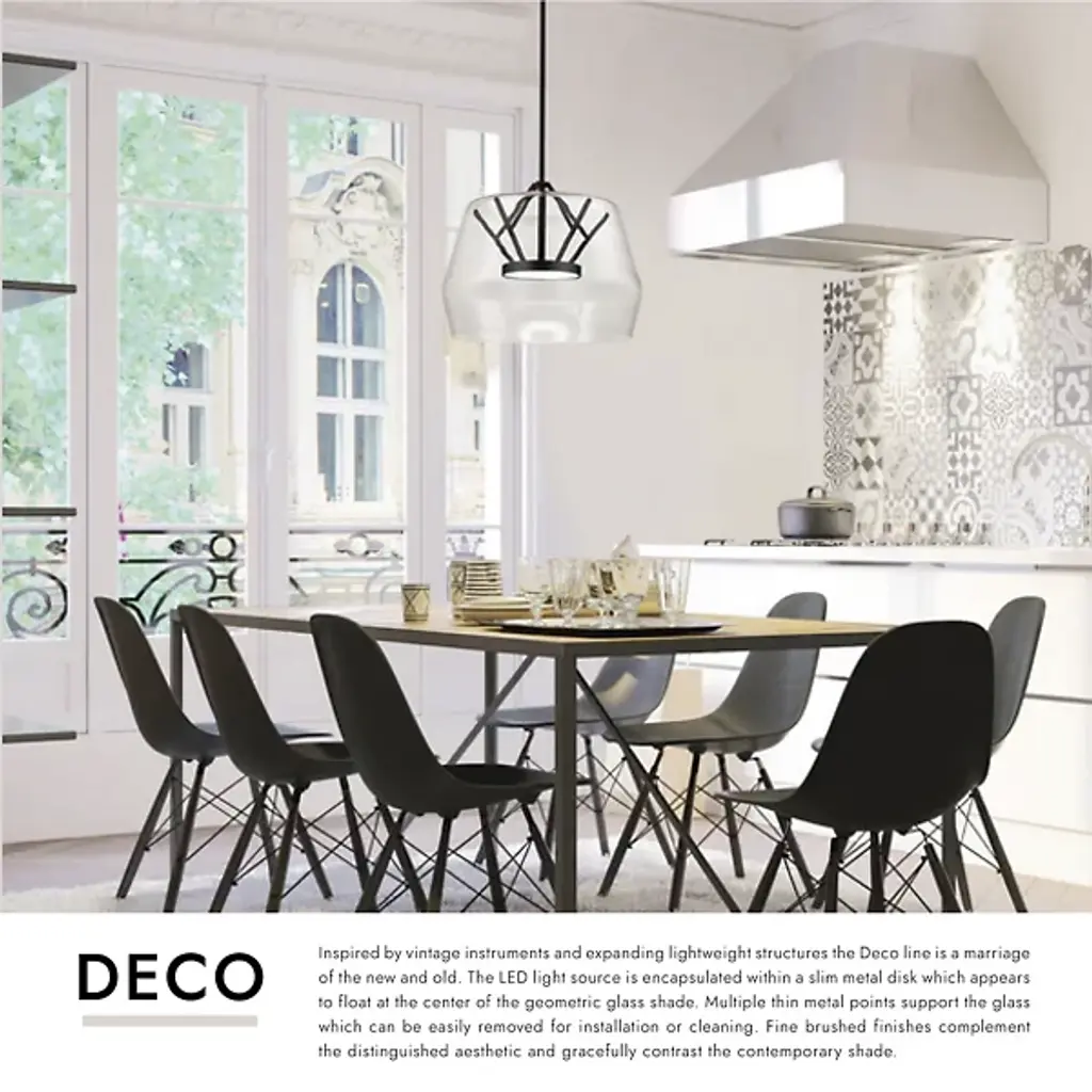 Enhance a contemporary space with the Deco LED Pendant by Kuzco Lighting. A slim acrylic disc that seems to float in the center of the geometric glass shade is outfitted with an LED board to provide energy efficient illumination in stylish fashion. The ability to adjust the height ensures perfect placement and this pendant is dimmer compatible to provide multiple lighting levels that can accommodate any setting.