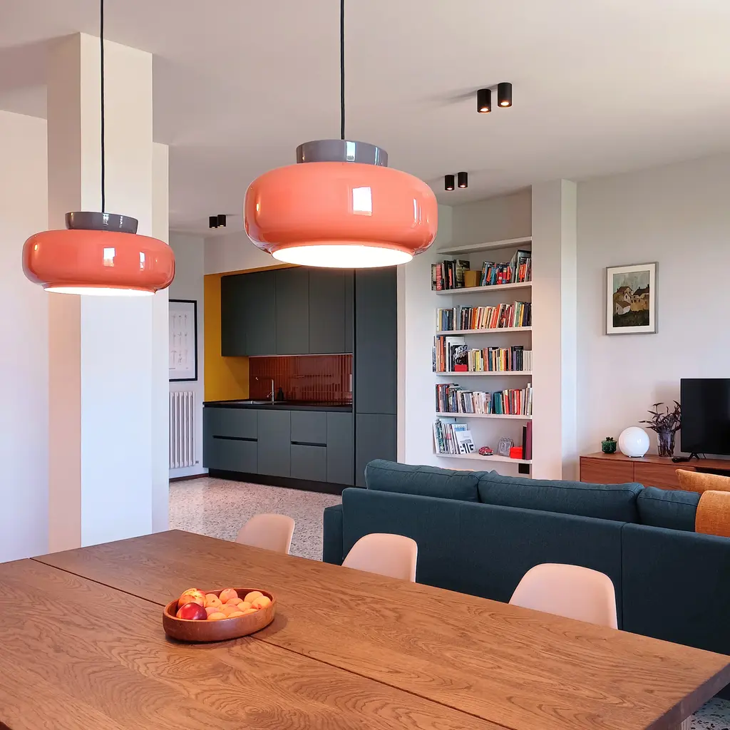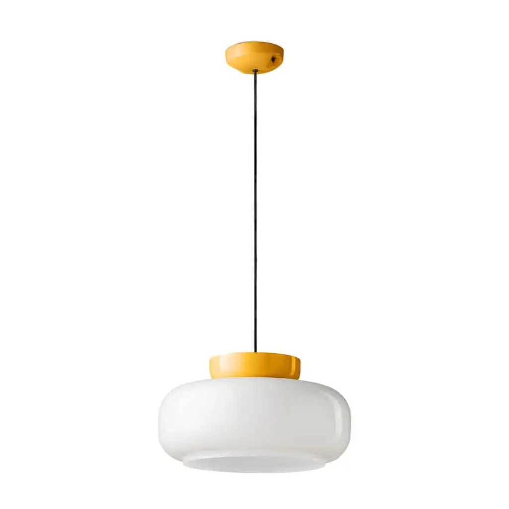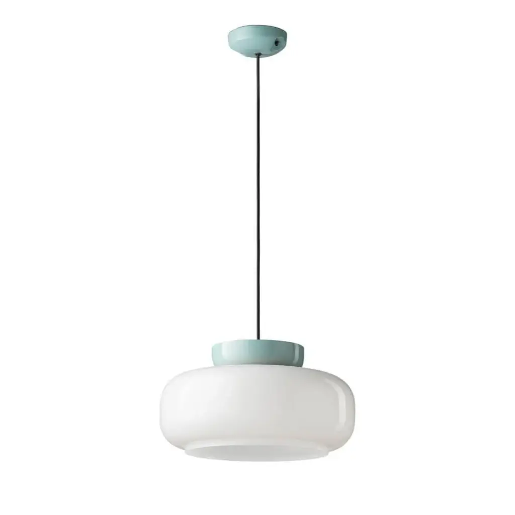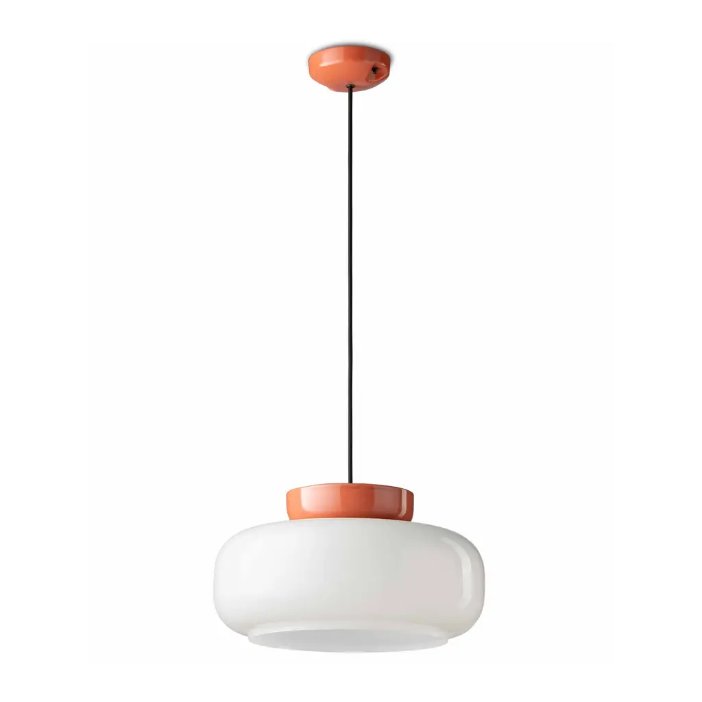 The Deco Maracana Pendant Light from Ferroluce makes a stunning centerpiece in any interior design. Its classic circular shape and soft curves echo the elegance of Rio de Janeiro's iconic Maracana Stadium, adding a unique touch of sophistication to any space. Handcrafted in Italy, the bold ceramic and glass shade adds a playful touch to any room. Highlights