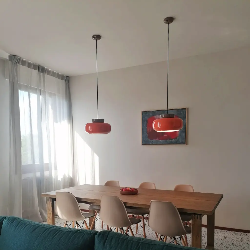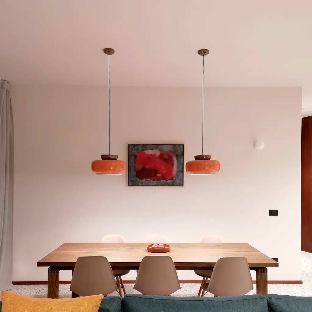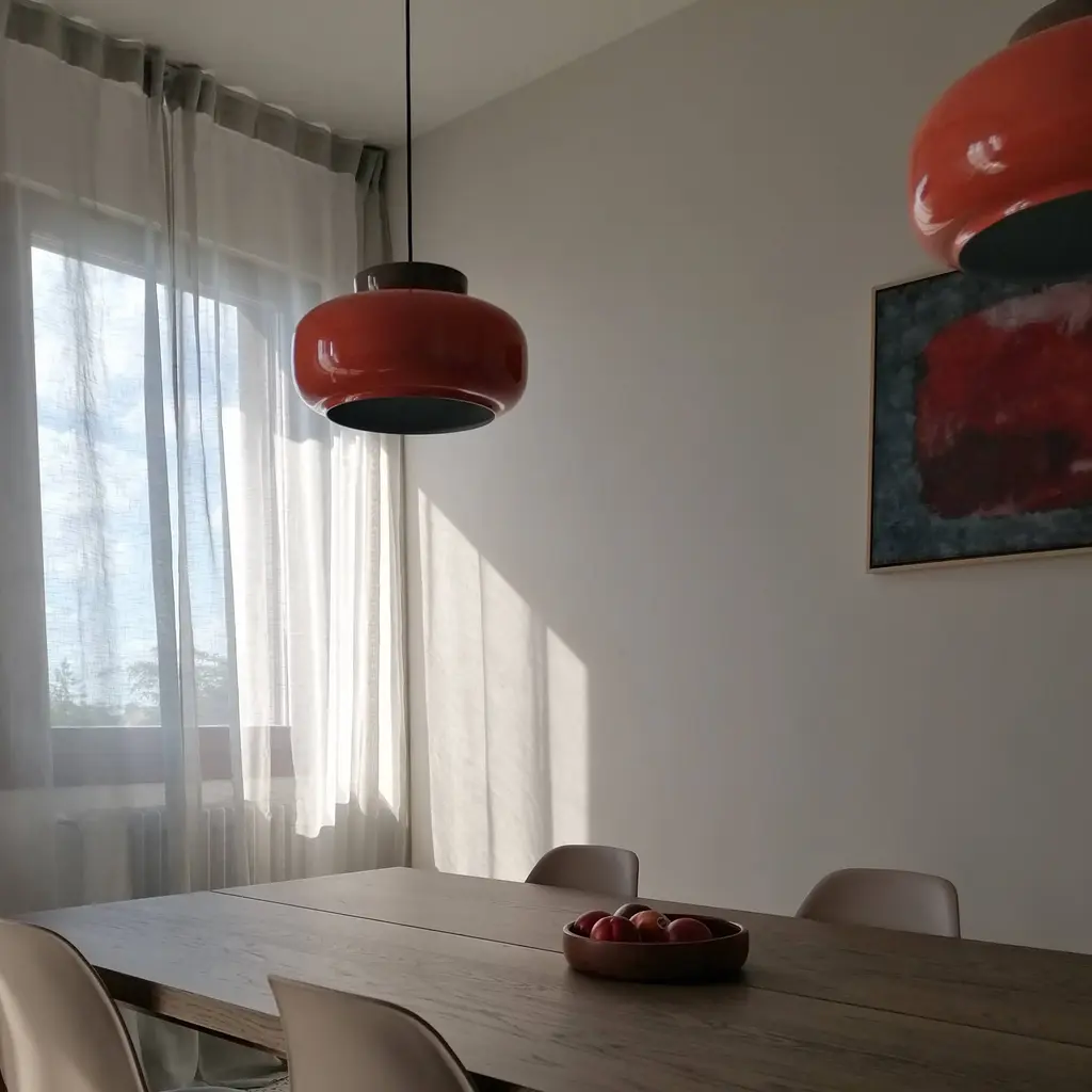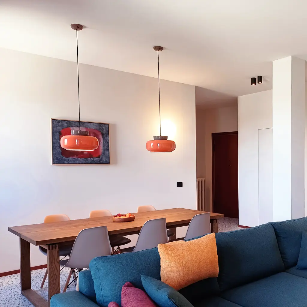 The Deco Maracana Pendant Light from Ferroluce makes a stunning centerpiece in any interior design. Its classic circular shape and soft curves echo the elegance of Rio de Janeiro's iconic Maracana Stadium, adding a unique touch of sophistication to any space. Handcrafted in Italy, the bold ceramic and glass shade adds a playful touch to any room. Highlights