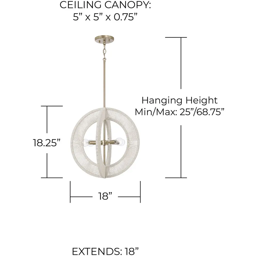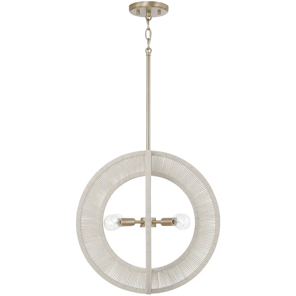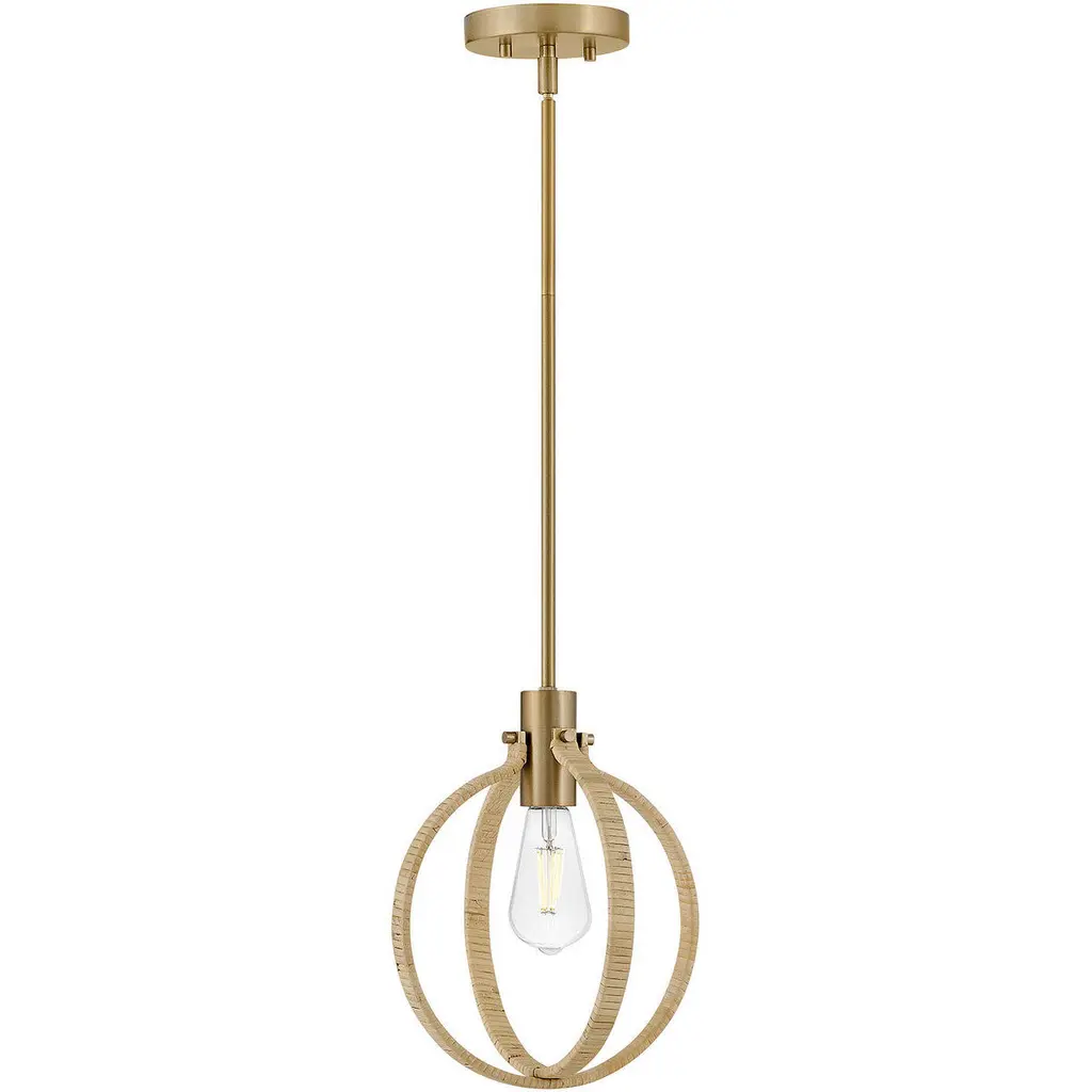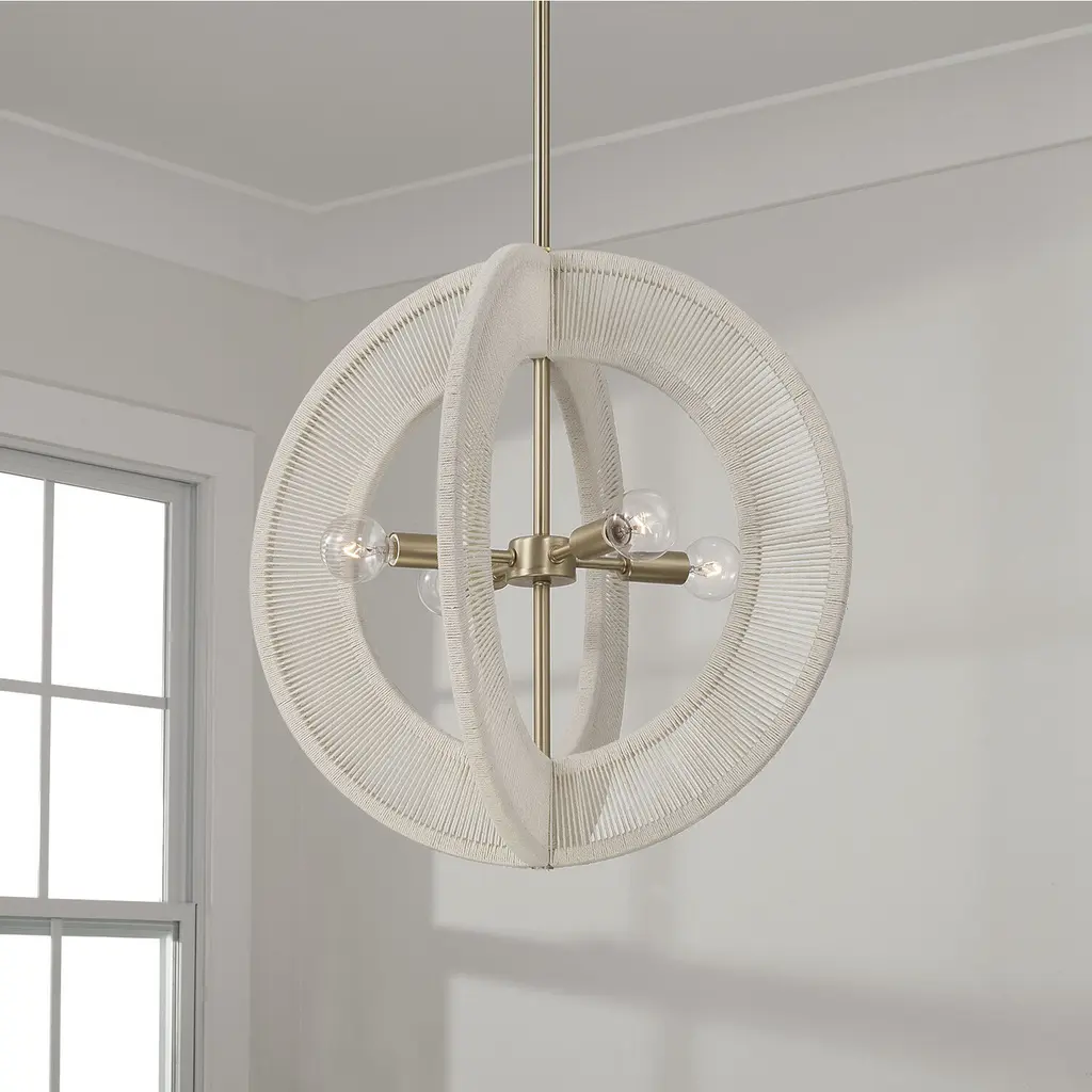 Casual chic meets all-around luxury with the Delaney Orb Pendant. The warm Matte Brass finish complements the hand-wrapped Bleached Natural Rope rings to bring elevated designer style to any space.