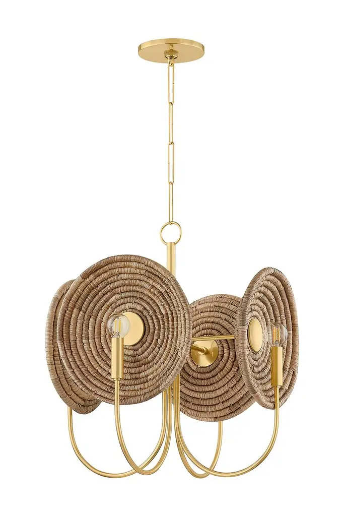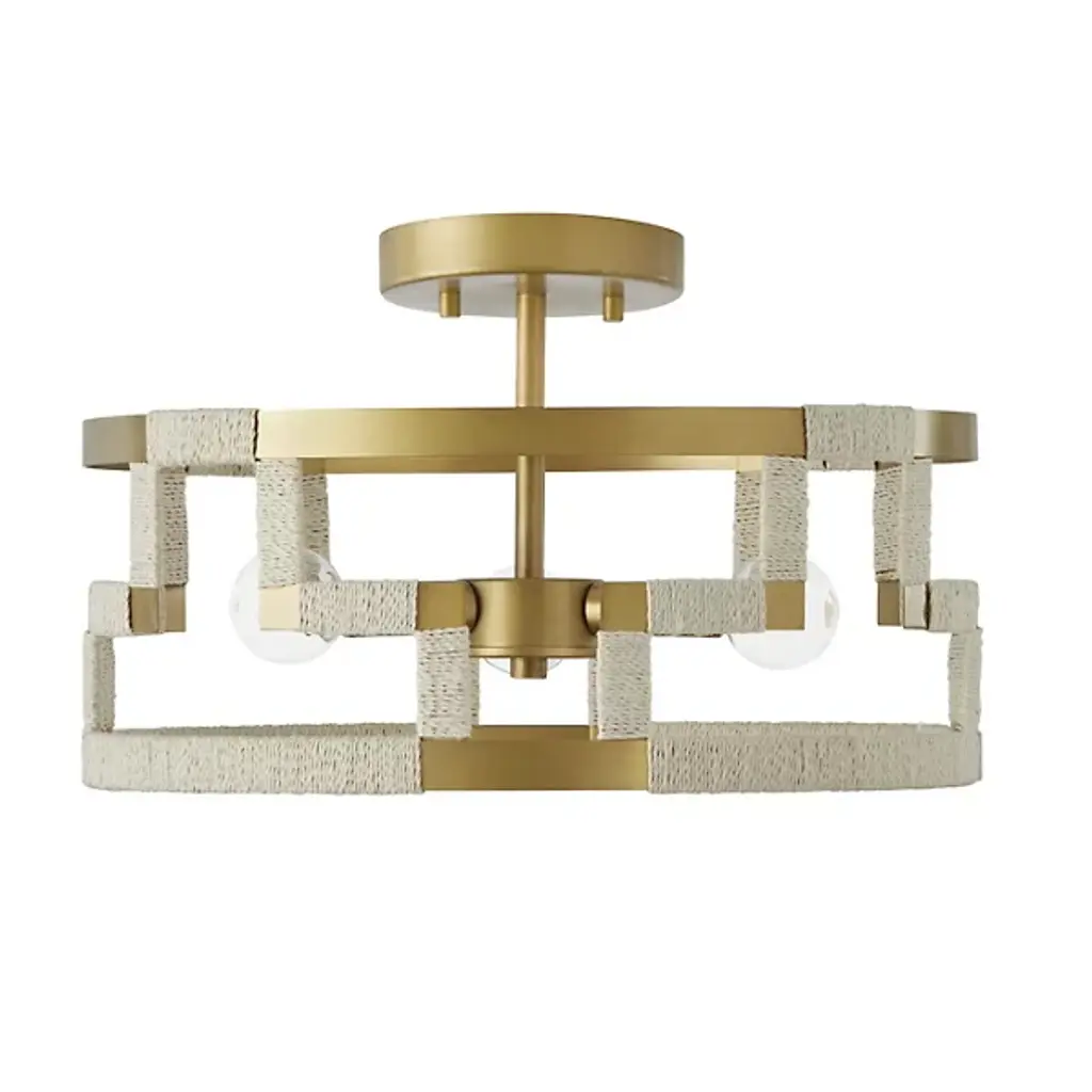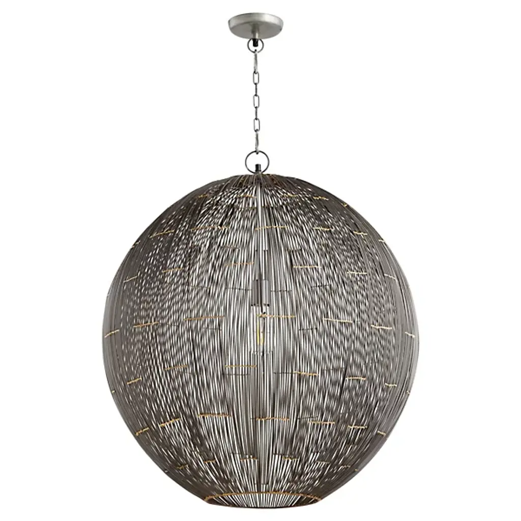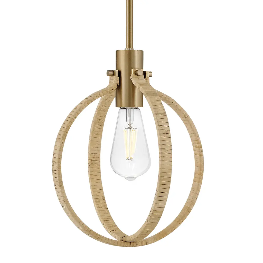 The Delaney Pendant from Capital Lighting introduces unusual texture through hand-wrapped bleached natural rope rings. This orb-shaped pendant breaks from conventional lighting with its artisan craftsmanship that brings organic elements into contemporary settings. The horizontal socket placement within the pendant distributes light evenly throughout the open framework. Drawing inspiration from global and bohemian influences, this pendant maintains a minimalist foundation while incorporating natural materials. The craftsmanship evident in each carefully wrapped rope section demonstrates attention to detail. The open design allows light to play through the structured rings while maintaining a light, airy presence in any room.