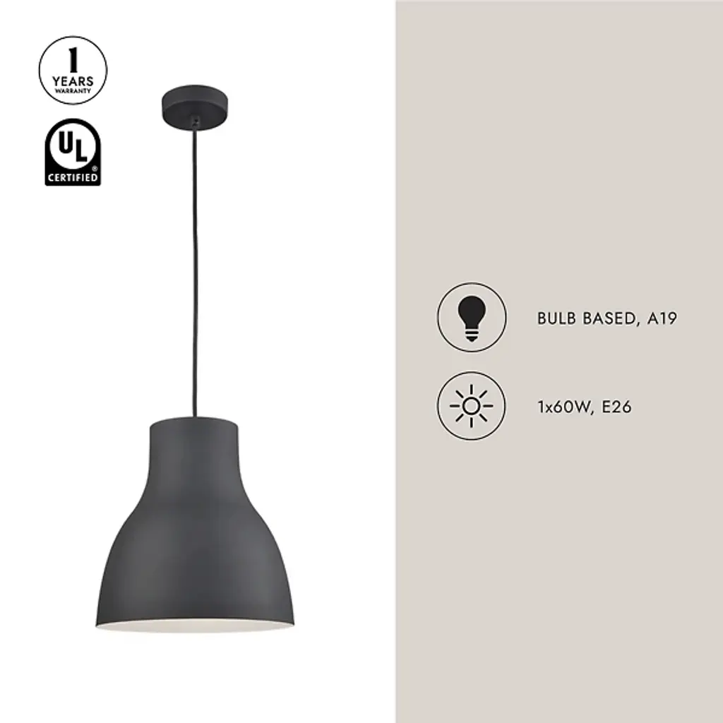 The Delfin Bell Pendant from Huxe boasts a tapered, bell-shaped frame that exudes a refined aesthetic that effortlessly enhances your decor. The LED lamp brings brilliant light from above, glowing brilliantly throughout your room. Secured by a ceiling canopy, Delfin showcases contemporary style while maintaining its practicality. Dimmable with an ELV dimmer, it allows you to tailor the lighting to suit your event. This fixture is well-suited for kitchens and dining rooms alike.