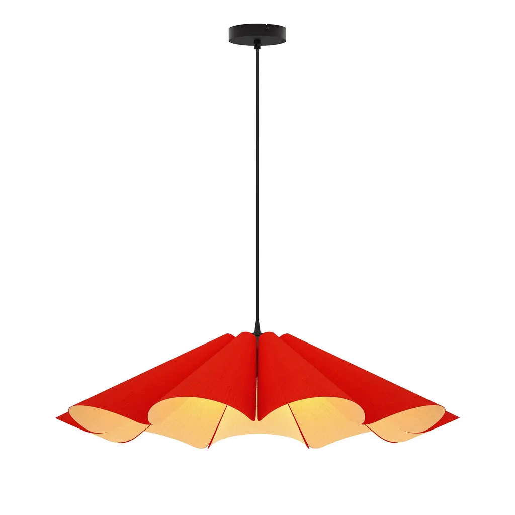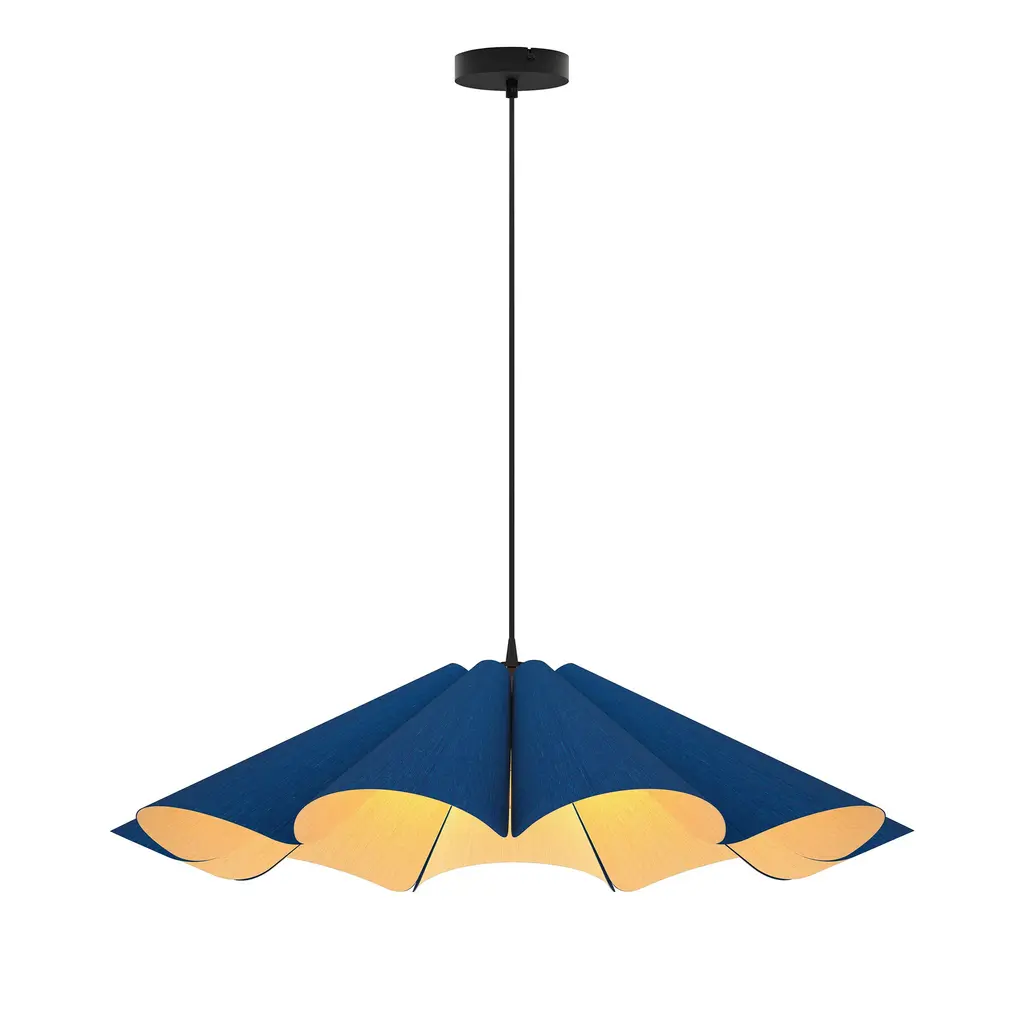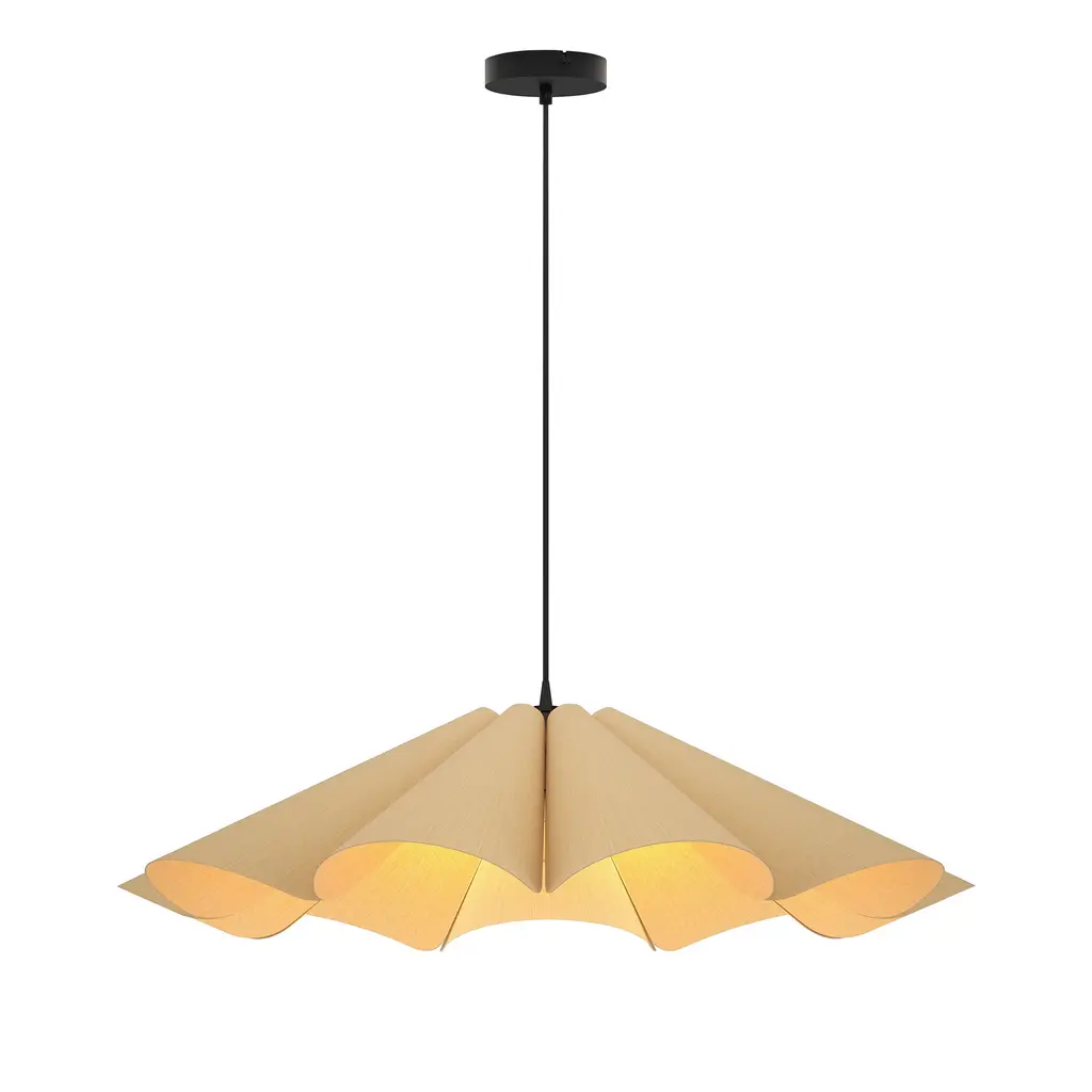 Natural lighting with a fashionable edge, the Delfina Pendant Light from Bruck Lighting adds visual intrigue to any contemporary interior. Crafted from several individual curved panels of flexible, yet strong reconstructed wood veneer, the undulating curves showcase the beauty of the natural wood grain further highlighted by the incandescent light source. The fluid nature of this pendant was inspired by the diverse ecologies seen throughout Spain and was created as part of the larger Wood Ecological Project.Highlights