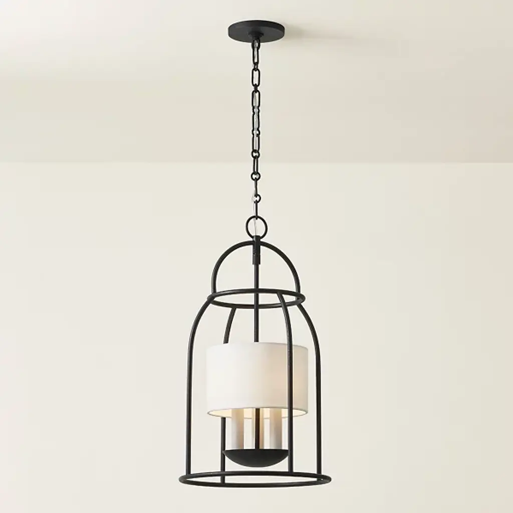 The Delia Lantern Pendant from Mitzi is a contemporary reinterpretation of timeless design traditions, blending classic elegance with transitional flair. With a birdcage-like silhouette and gently rounded geometries, Delia brings a fresh perspective to traditional lantern designs. The piece boasts a luminous array of candles. The open framework of this airy lantern lets light disperse in all directions, creating a warm and inviting ambiance in your space. Crafted with precision from high-quality steel, your pendant is complemented by a linen shade.