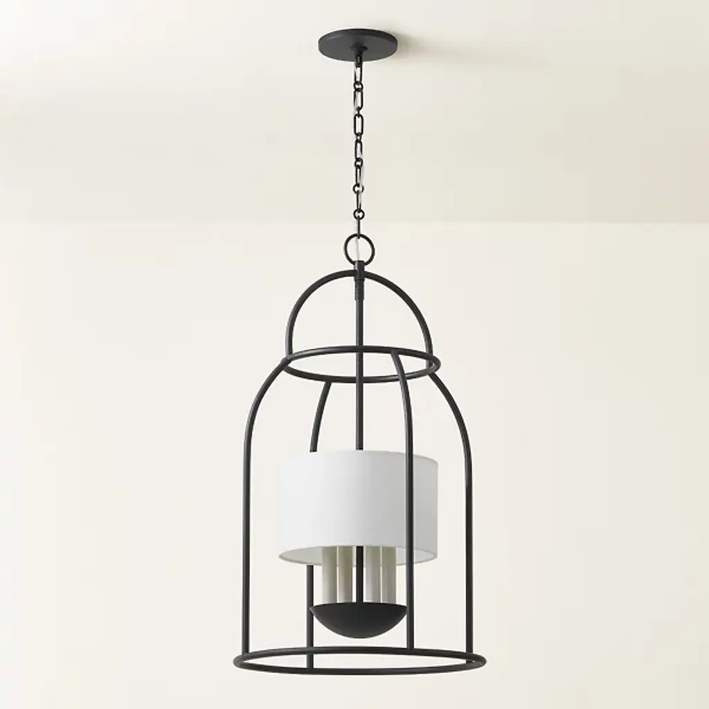 The Delia Lantern Pendant from Mitzi is a contemporary reinterpretation of timeless design traditions, blending classic elegance with transitional flair. With a birdcage-like silhouette and gently rounded geometries, Delia brings a fresh perspective to traditional lantern designs. The piece boasts a luminous array of candles. The open framework of this airy lantern lets light disperse in all directions, creating a warm and inviting ambiance in your space. Crafted with precision from high-quality steel, your pendant is complemented by a linen shade.
