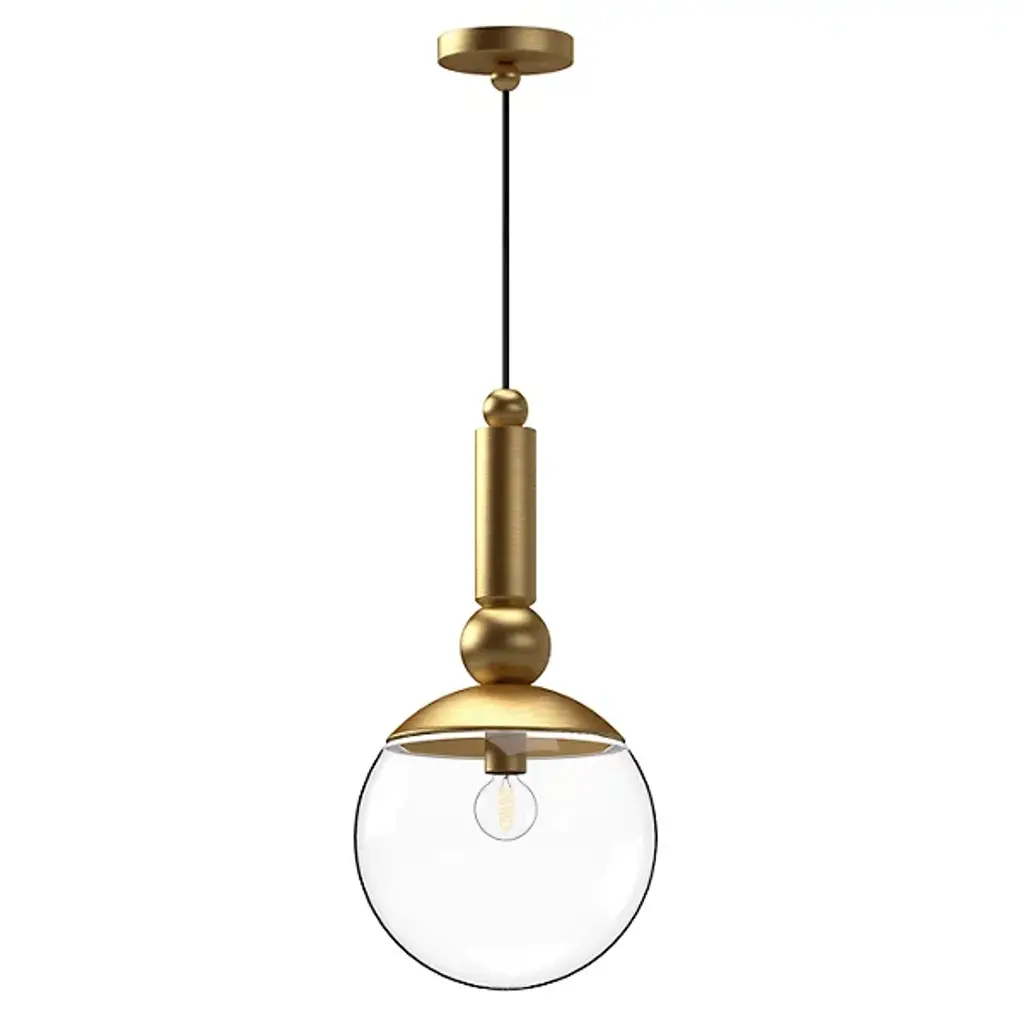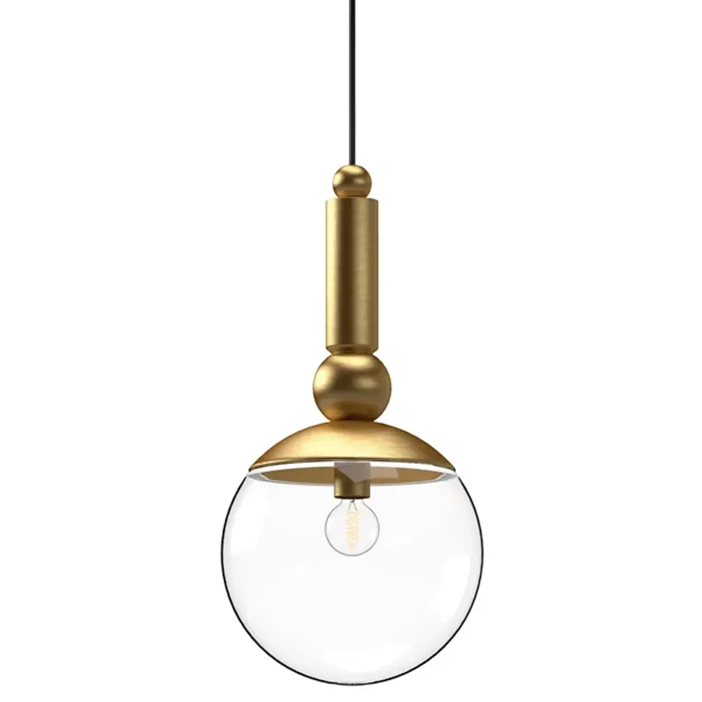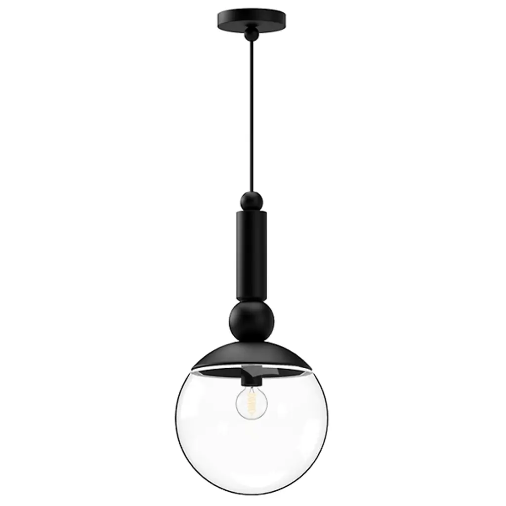 Drop a daring, decadent profile from ceilings with the Delilah Pendant from Alora Mood. A smooth circular canopy suspends the fixture via a slender cable, securing a cylindrical body with sphere accents at each end, and extending a single socket from its lower end. Direct glare from the lamping is mellowed by a spherical shade of clear glass that blooms from a downward-facing dish bobeche, extending an even ambiance across the fixture’s surroundings.