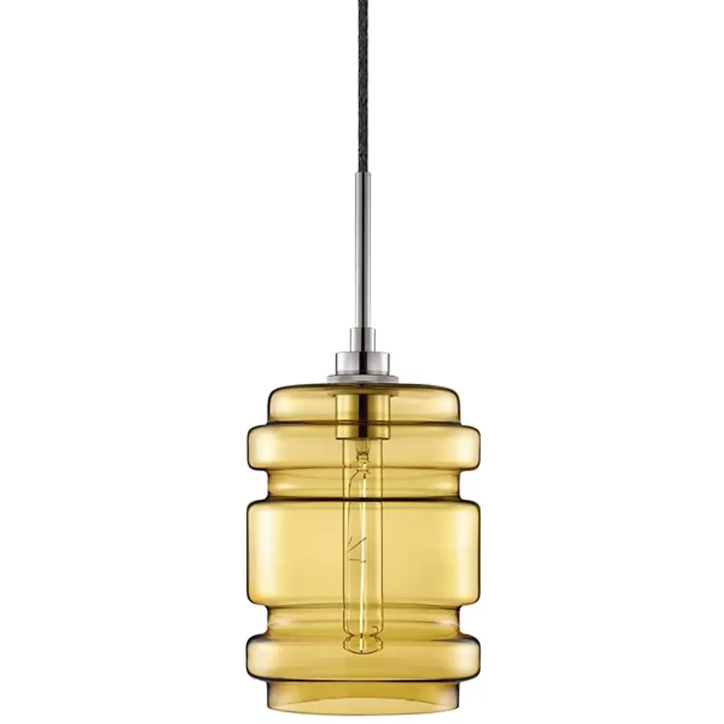 The Niche Modern Delinea Pendant bears a faint resemblance to automotive gears, but much sleeker and shapelier. Oh, and more colorful. Handblown in New York and paired with a tubular Edison-style bulb. Delinea is part of the new Crystalline Collection, a line that embraces playful, fresh colors and bold defined angles while never straying from Niche's signature design principles of simplicity and elegance. Complementary forms and colors make the collection an ideal consideration for multiples installations.