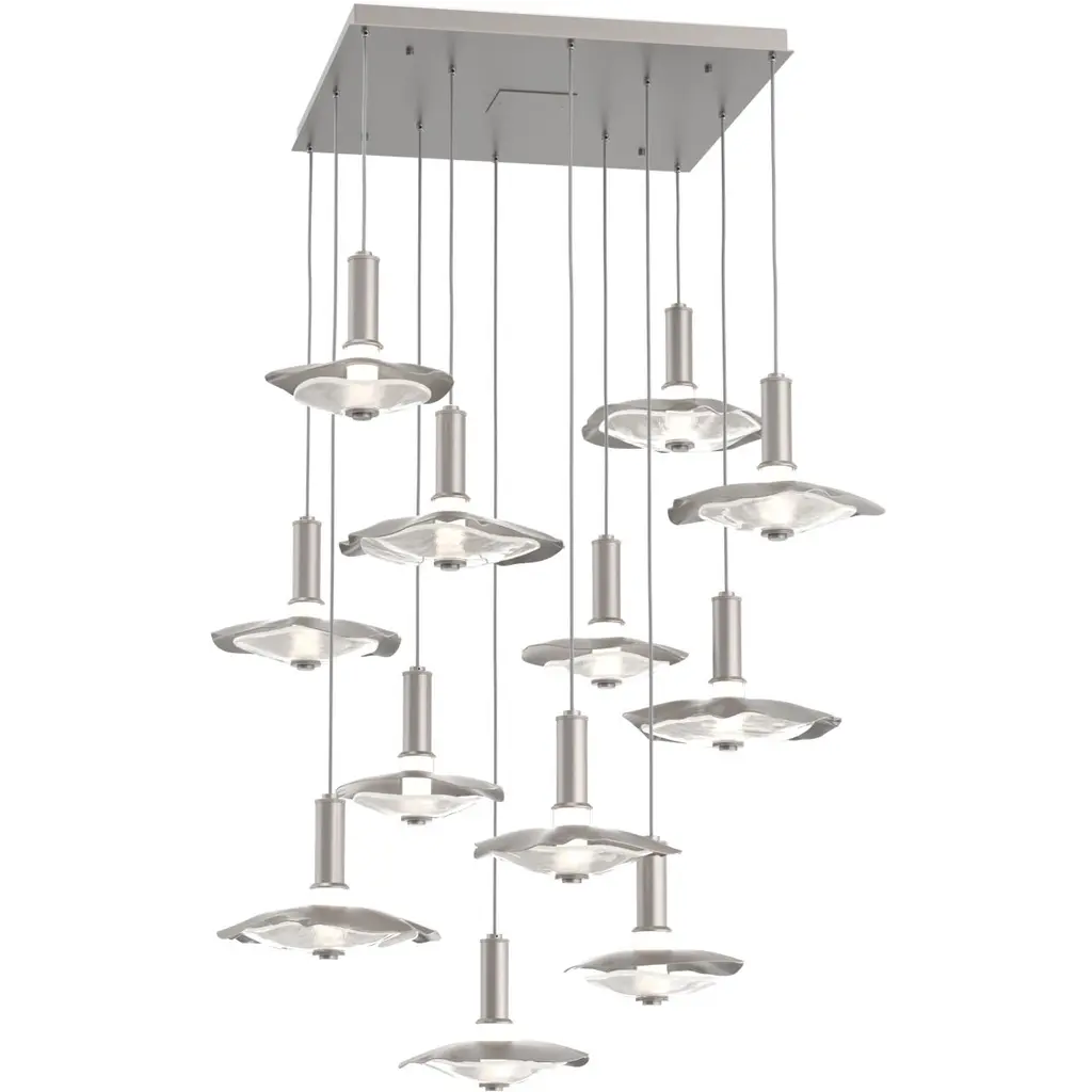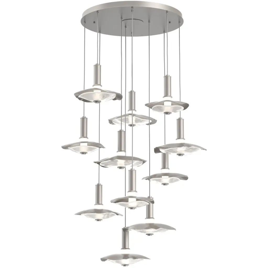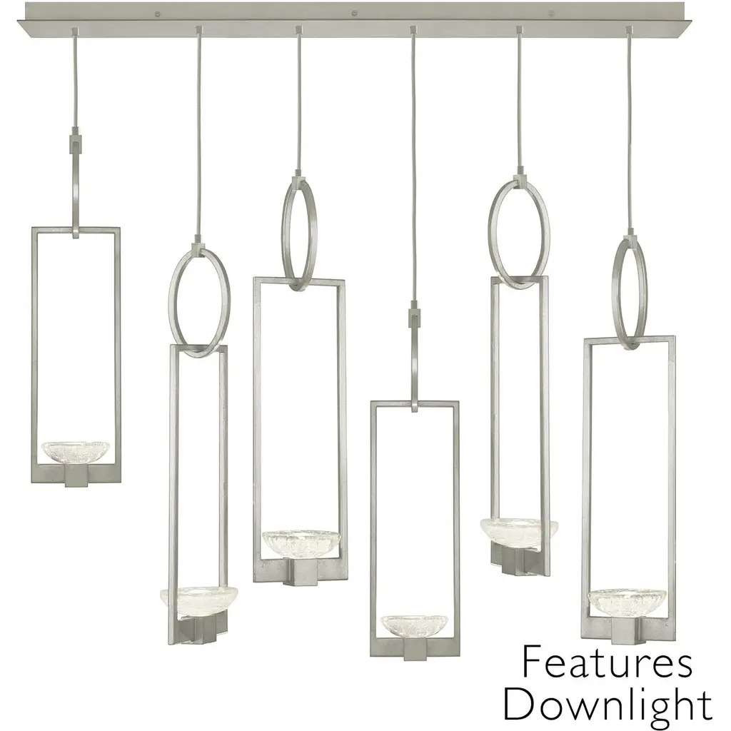 Inspired by the myths and legends of the ancient Oracle of Delphi, this pendant features hand formed glass and is set within a silhouette whose form above all emphasizes purity. Each single hanging pendant also features a down light. Available in silver