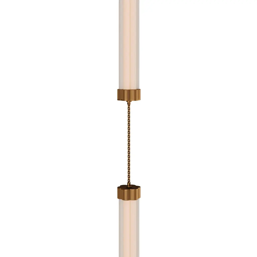 Effortless, yet striking, the Delphi Vertical LED Pendant is an elegant minimalist fixture inspired by the architectural form of Greek columns. With its clean vertical lines, fluted glass, and brass hardware, this pendant light is equally suited to a quiet corner or part of a dynamic cluster for customized lighting. It offers refined ambiance and craftsmanship in a compact profile—dramatic yet serene. Highlights