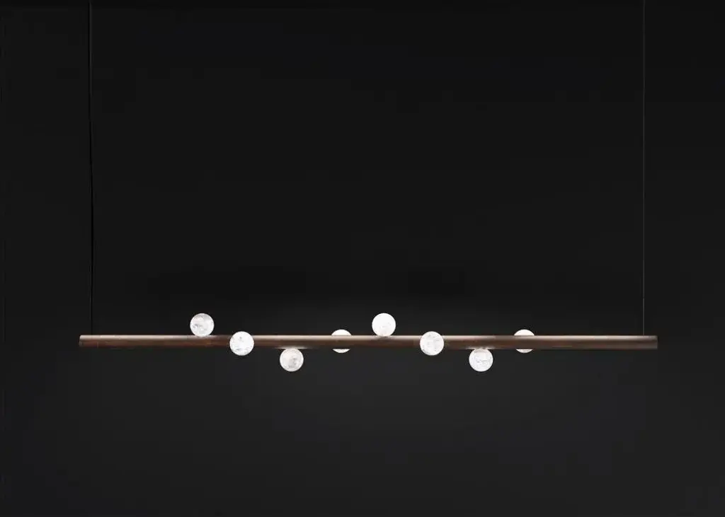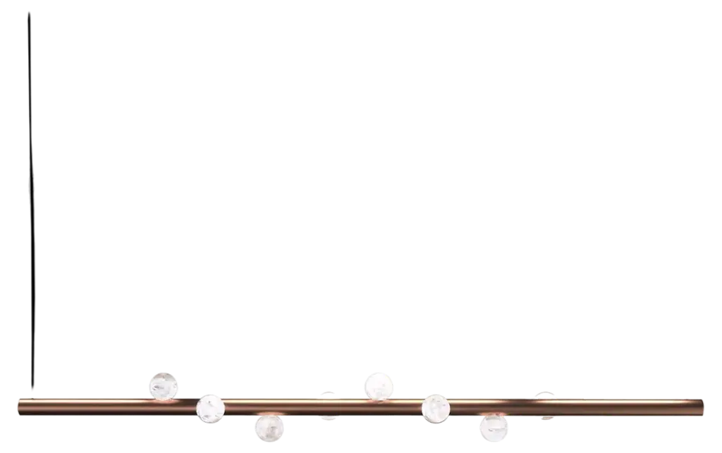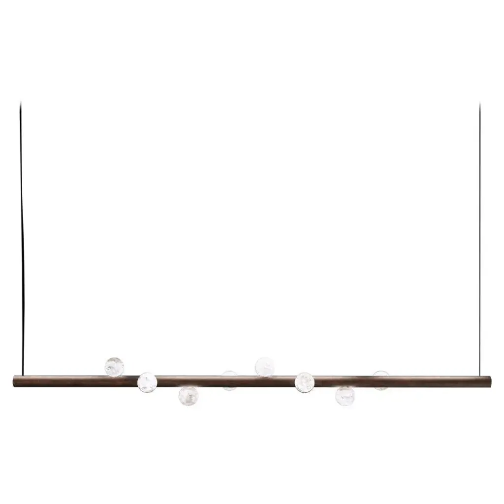 Demetra ruggine of florence metal pendant lamp 1 by alabastro italiano dimensions: d 12 x w 120 x h 12 cm. Materials: white alabaster, ruggine of florence metal and leather. Available in different finishes: shiny silver, bronze, brushed brass, ruggine of florence, brushed burnished, shiny gold, brushed black, freedom green, shiny black and copper. the name demetra, goddess of flora, sister of zeus, fully reflects the particular shape of this series by alabastro italiano. The spheres, of pure hand-turned alabaster, look like fruits hanging from the branches of a hypothetical tree of light. These brilliant elements stand out between heaven and earth and symbolize the richness that only mother nature can offer us. up to 250v (europe/uk standard).
