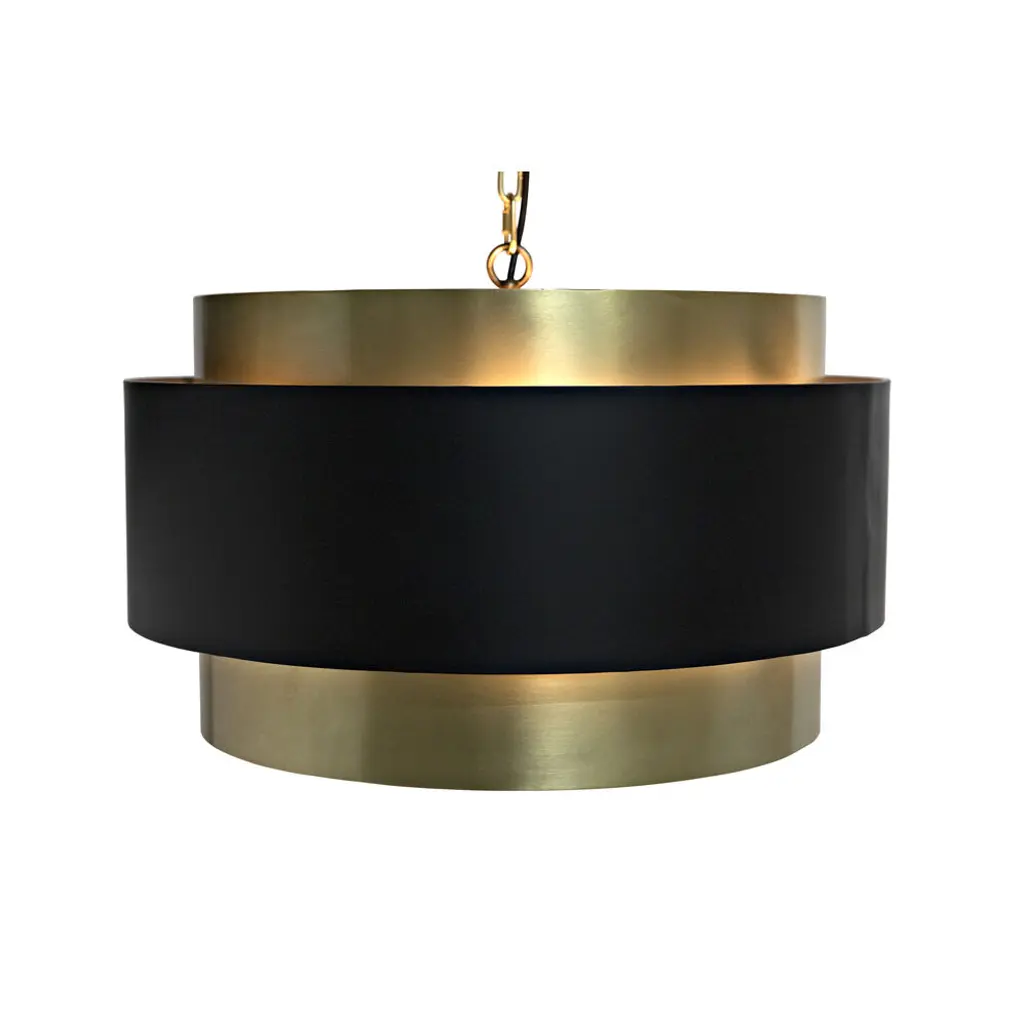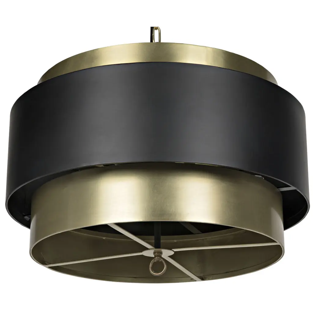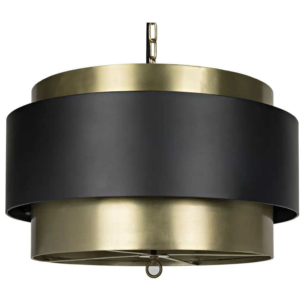 Add a strong sculptural element to any contemporary decor with this striking pendant from Noir. Each is handcrafted of metal with contrasting black and antique brass finishes. Modern and bold, its intriguing lines add style to your decor even when the bulbs within remain unlit.