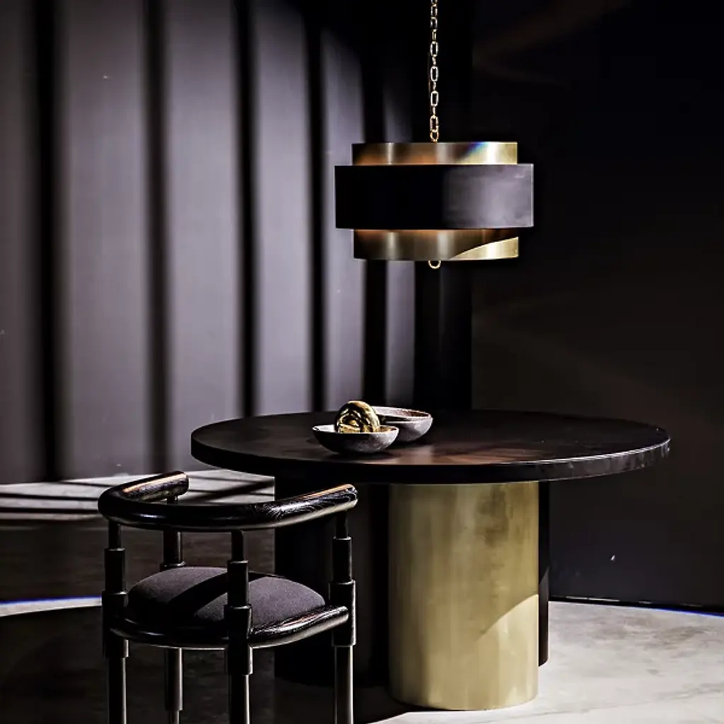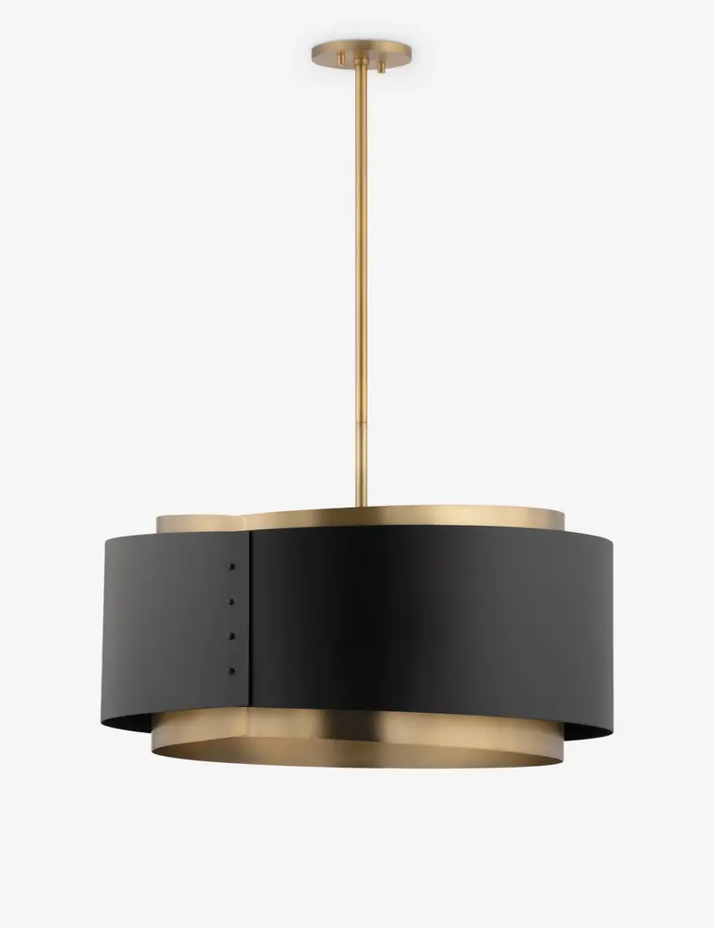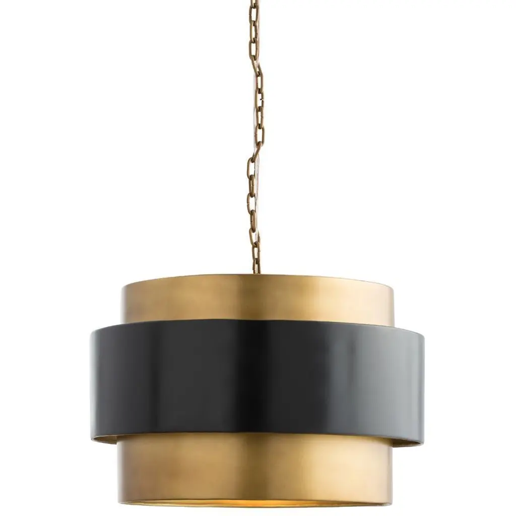 The Demetrius Pendant from Noir introduces a bold sculptural presence into your contemporary decor. Meticulously handcrafted from metal, it showcases a captivating interplay of contrasting black and antique brass finishes. Modern and daring, its intriguing lines stand as a style statement, even when the bulbs within remain unlit. Elevate your space with this captivating pendant that seamlessly marries artistry with contemporary design, promising to be a focal point in any room.