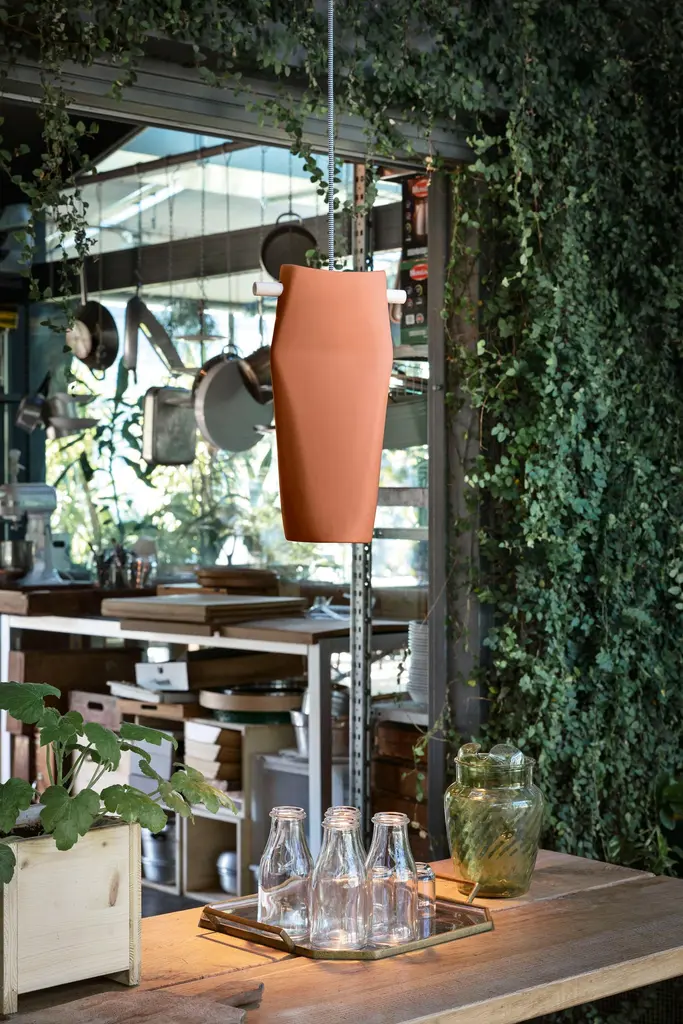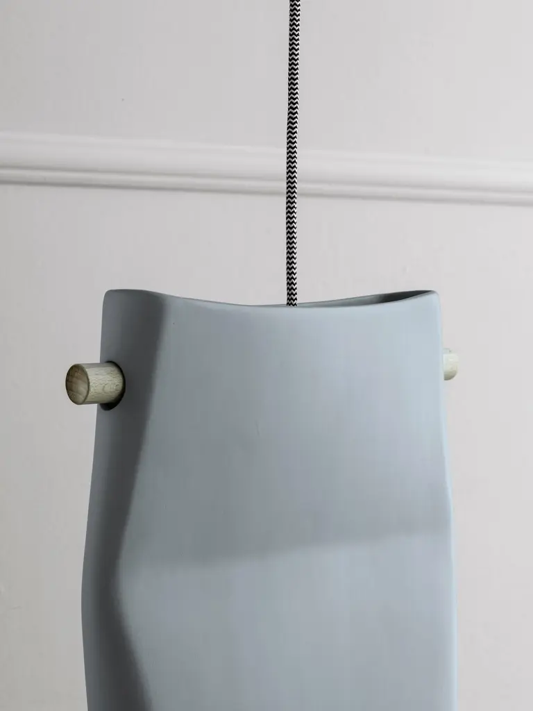 Dent is a pendant ceramic lamp available in two different dimension. A squeezed and deformed pipe is the focus study for this unique shape, where ceramic and wood make everything extremely delicate.Ceramic lamp with solid beech insert. The available colors are window grey, intense blue, jade and beigered.Additional Information:Material: Ceramic, beechShade: CeramicFinish: CoralEnvironment: IndoorLightbulb: E27, max 60WCable lenght: 1.80 mEnergy class: A++, A+, ADimensions: 30 W x 19 D x 56 H cmAvailable in other size options: LargeAvailable in other color options: Anthracite ceramic, beige ceramic, intense blue ceramic, jade ceramic, marsala red ceramic, veronese green ceramic, white ceramic, window gray ceramic, yellow ceramic
