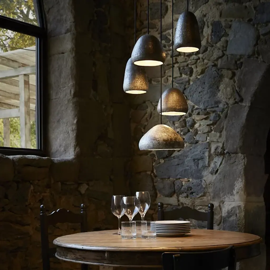The Dento Bell Mini Pendant from El Torrent transforms the alchemy of the four elements into an elegant and artistic interior piece. It matches contemporary simplicity with vibrant Spanish design, descending gracefully from a circular canopy, supported by a slender cable that encases robust lamping within a bell-shaped ceramic shade. The contrasting textures play a vital role – the pale, reflective interior juxtaposes the rough, handcrafted exterior, infusing vibrant and organic textures that bring depth to the otherwise minimalist structure.