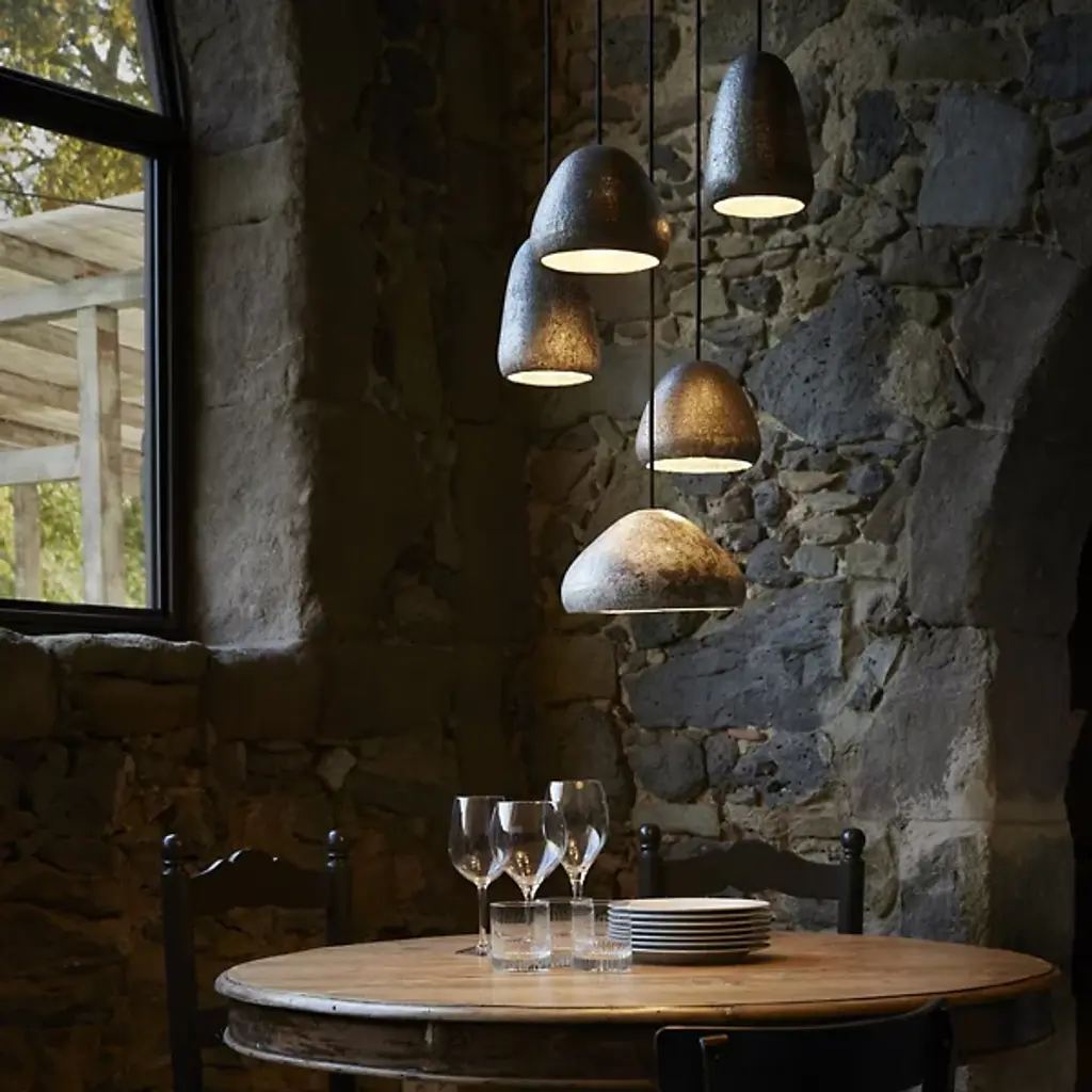 Provide an elegant, artistic appeal to interiors with the Dento Dome Pendant from El Torrent. An artful mix of contemporary and Spanish design, it starts simply, descending from a circular canopy along a slender cable that secures strong lamping inside a dome-shaped ceramic shade. The pale, reflective interior contrasts with the rougher texture of the handcrafted exterior surface, adding a vibrant, organic texture that adds depth to the otherwise simple structure.