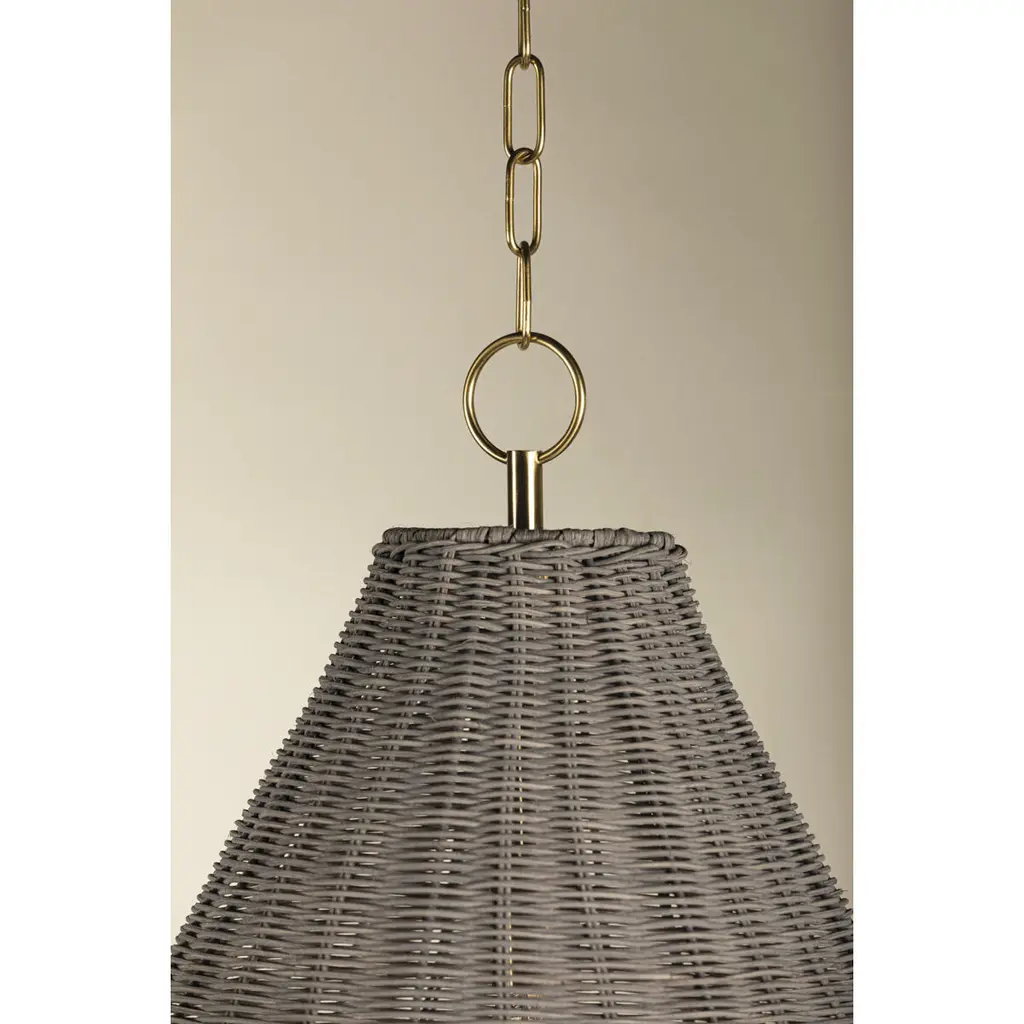 Combining the beauty of natural wicker and polished Aged Brass, this coastal-inspired fixtureexudes understated elegance. When illuminated, the golden-hued brass gleams through thegray wicker, creating a warm and earthy glow. Available as a sconce, pendant, or floor lamp.Part of THELIFESTYLEDCO® collection.*Due to the one-of-a-kind nature of the medium, exact colors and patterns may vary slightly fromthe image shown.