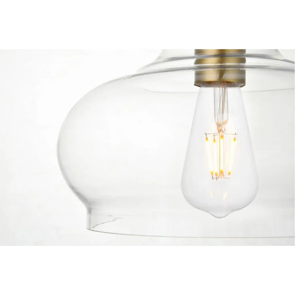 The small, but mighty Destry collection offers sleek pendant lamps that will add a powerful accent to your urban, industrial, or transitional décor. The light’s brass hardware finish adds to the interest of the piece. Brass 'top hat' design accentuates the clear glass shade. Each brass and clear conical shade holds one incandescent or LED light bulb (not included). Brighten your kitchen island, bathroom, entryway, or den with this one-light statement fixture. You may adjust the height to your desired length between 15 and 68