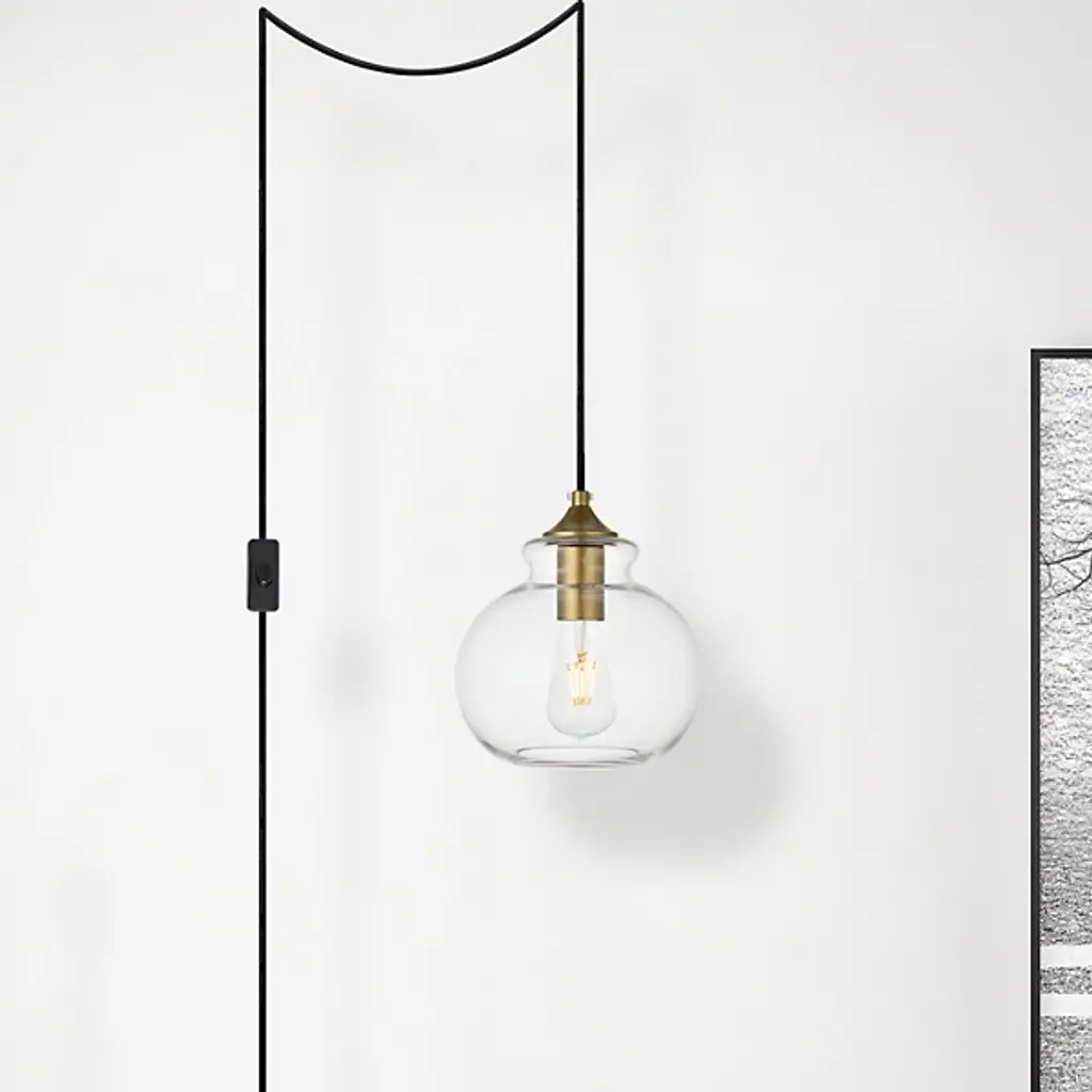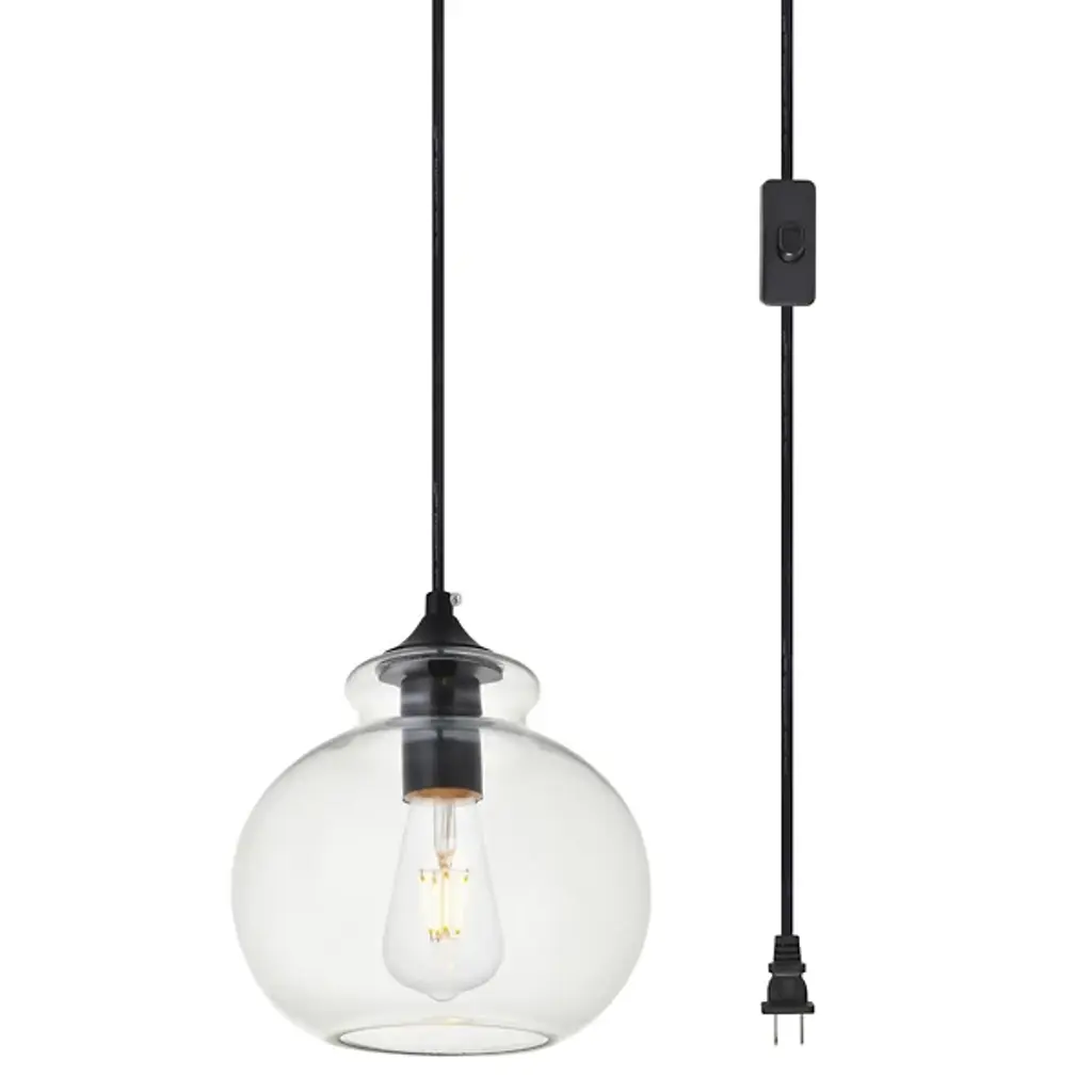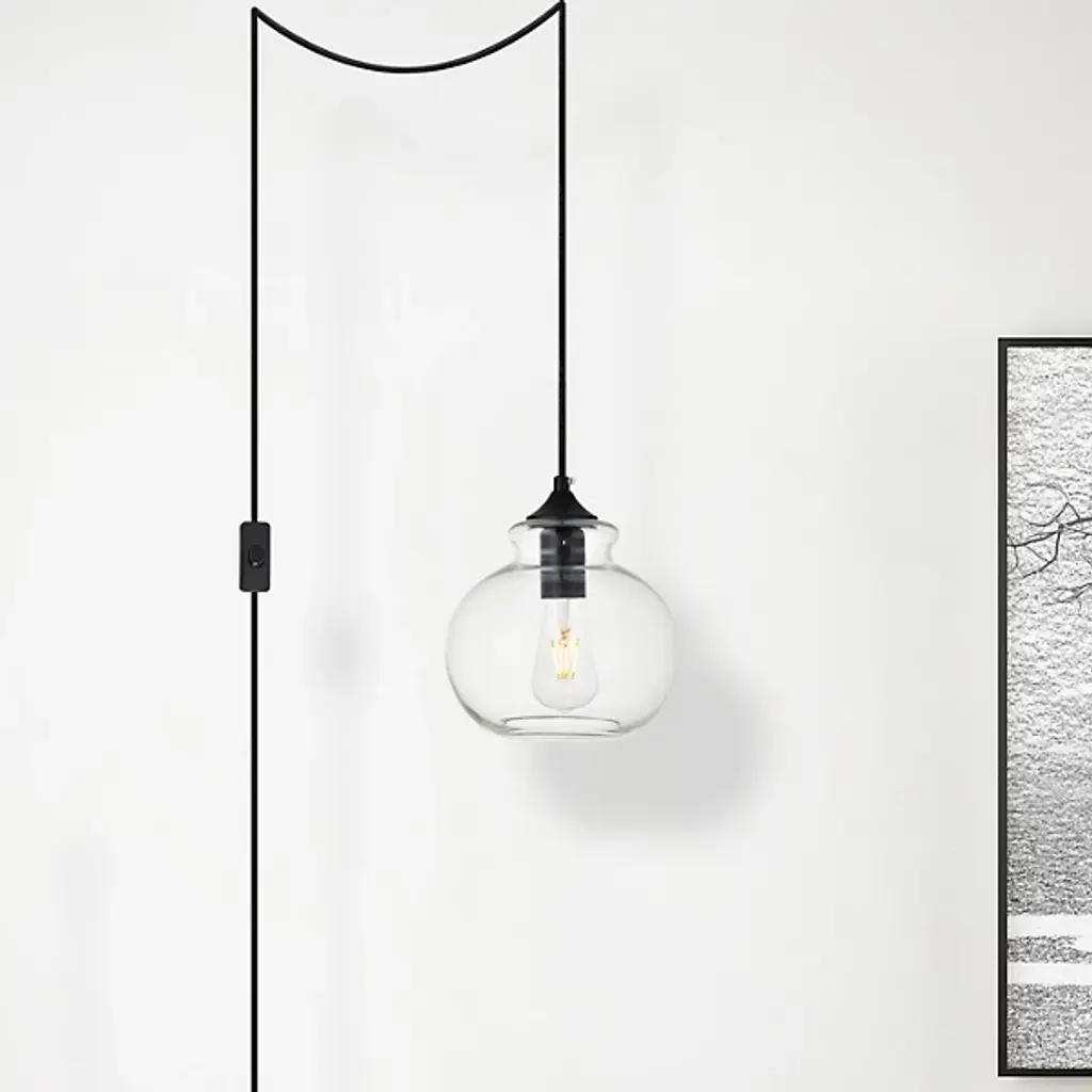 The Destry Plug-In Globe Pendant from Elegant Lighting redefines convenience in modern illumination. This pendant showcases a charming sugar pot-shaped clear glass shade, amicably paired with polished hardware. A built-in on/off switch provides effortless control, while the adjustable cord length adapts to various ceiling heights. Perfect for urban dwellers or those seeking a quick decor refresh, this pendant brings industrial chic to kitchens, reading nooks, or cozy corners.