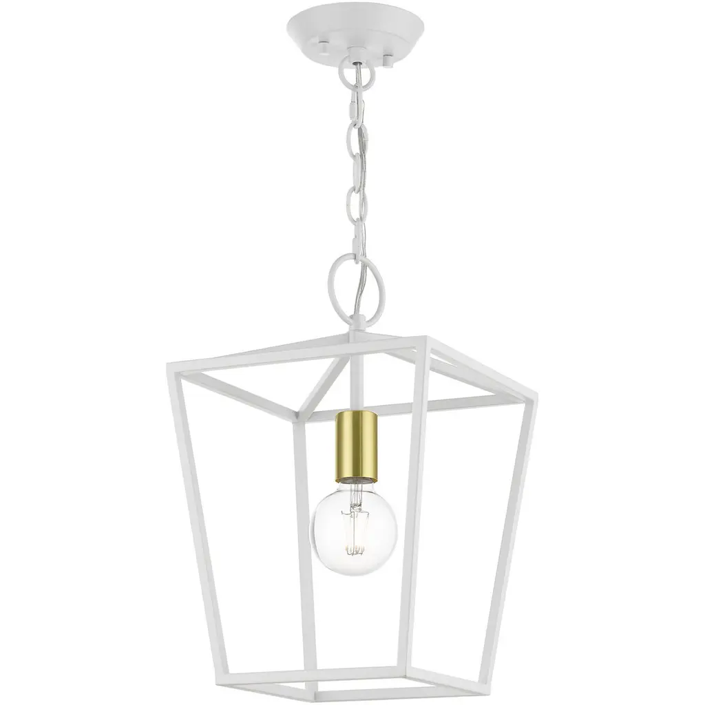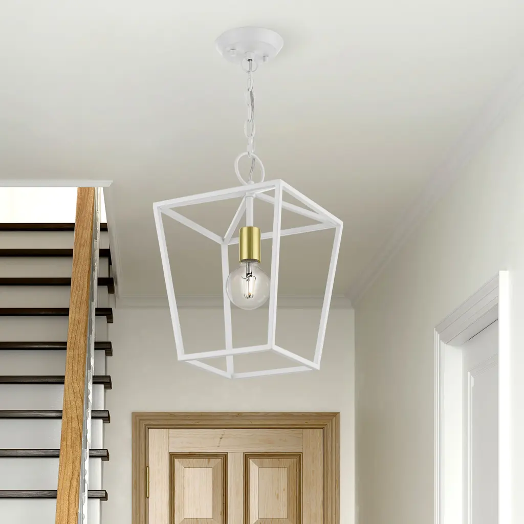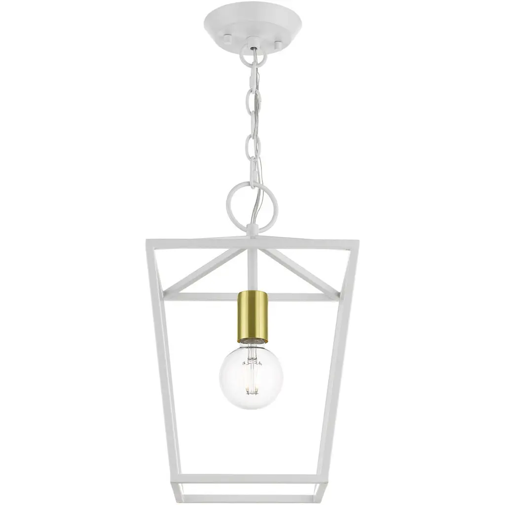 Devone 1 Light 10 Inch White With Satin Brass Accent Pendant Lantern Ceiling Light