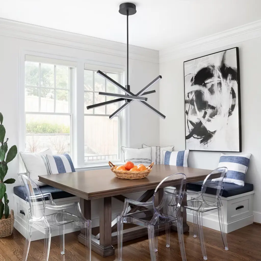Bring a bold modern touch to your home with the Dewdrop 3-Light LED Pendant Light. Designed with a sleek matte black frame and soft white silicone accents, this geometric chandelier delivers 1480 lumens of bright, energy-efficient illumination at 6000K. The dimmable function allows you to adjust brightness with ease, creating the perfect atmosphere for any space. ETL certified for safety and quality, it's ideal for dining rooms, kitchens, or living areas with a contemporary edge.