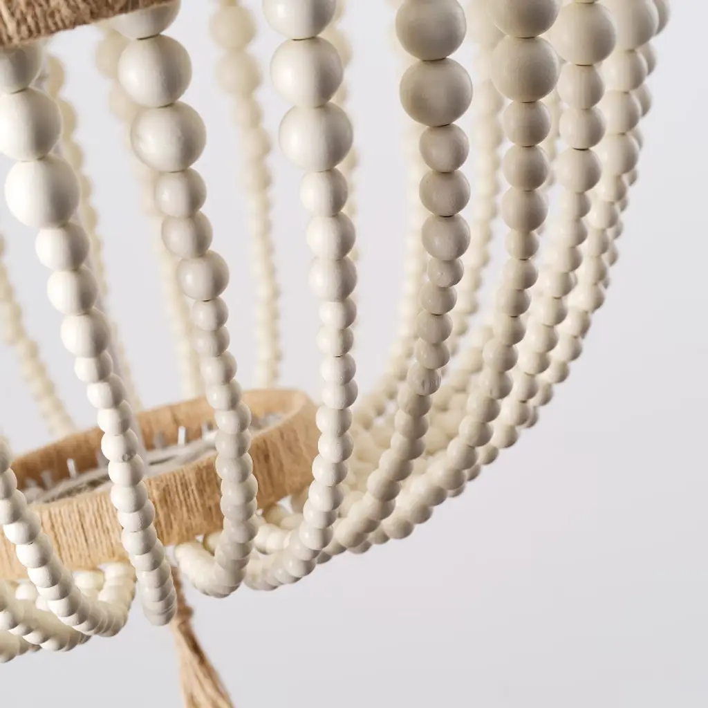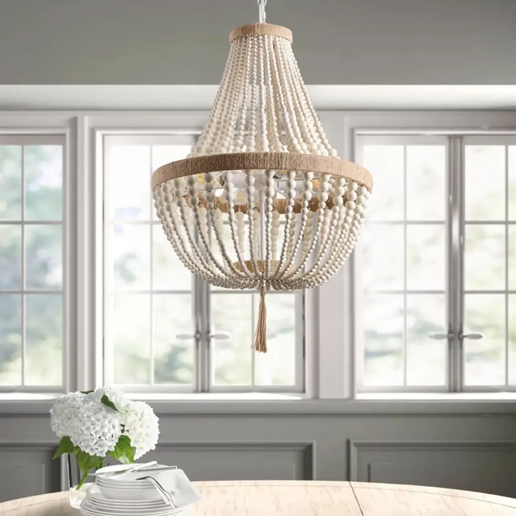 Dewdrop Boho Beaded Chandelier Rustic Farmhouse Wood Bead Pendant Light Fixture For Dining Room Bedroom