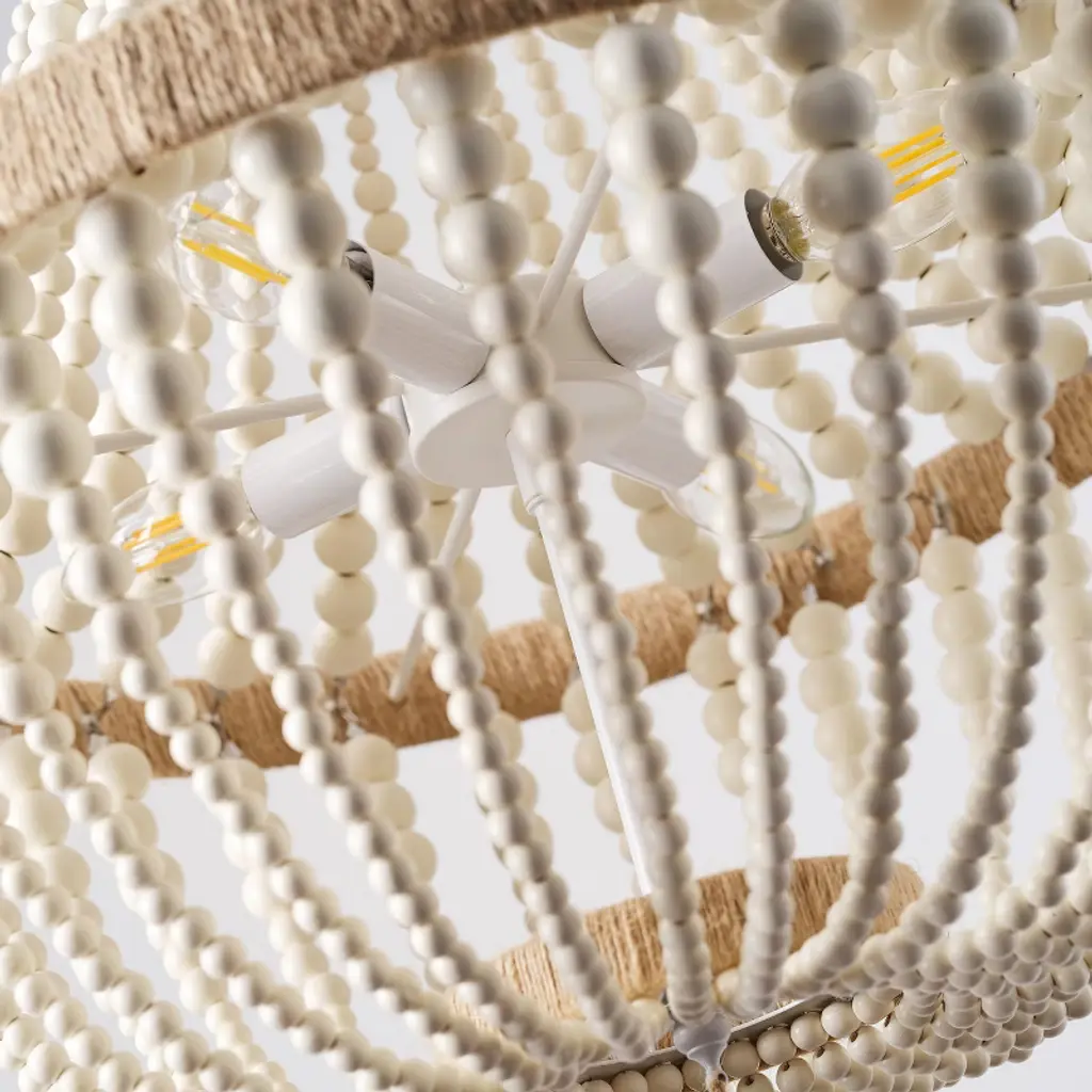 The Dewdrop Boho Beaded Chandelier combines wood beads, jute rope, and tassel accents with ETL certification and LED bulbs. Perfect for dining, bedroom, or entryway, it creates a warm farmhouse-inspired glow.