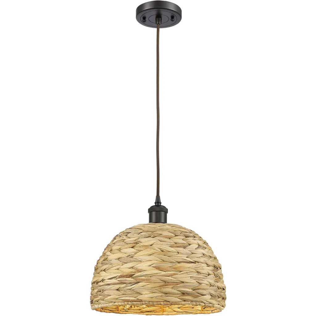 Dewdrop Boho Farmhouse Pendant Light Fixture Natural Rattan Woven Dome Chandelier