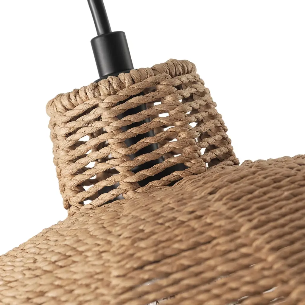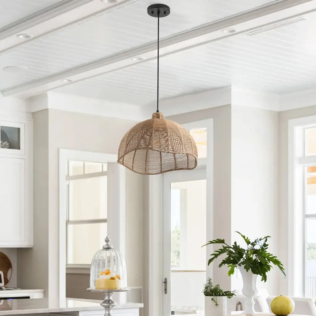The Dewdrop 2-Light Woven Pendant Light blends natural style with modern design. Featuring a black iron frame and handwoven brown paper shade, it adds warmth and boho farmhouse charm to any space. With two E26 sockets (40W max each, 120V), this fixture works with LED, incandescent, or CFL bulbs. ETL certified and built with durable SVT 3-core wiring, it is safe, reliable, and easy to install. Perfect for dining rooms, kitchens, bedrooms, or living areas.