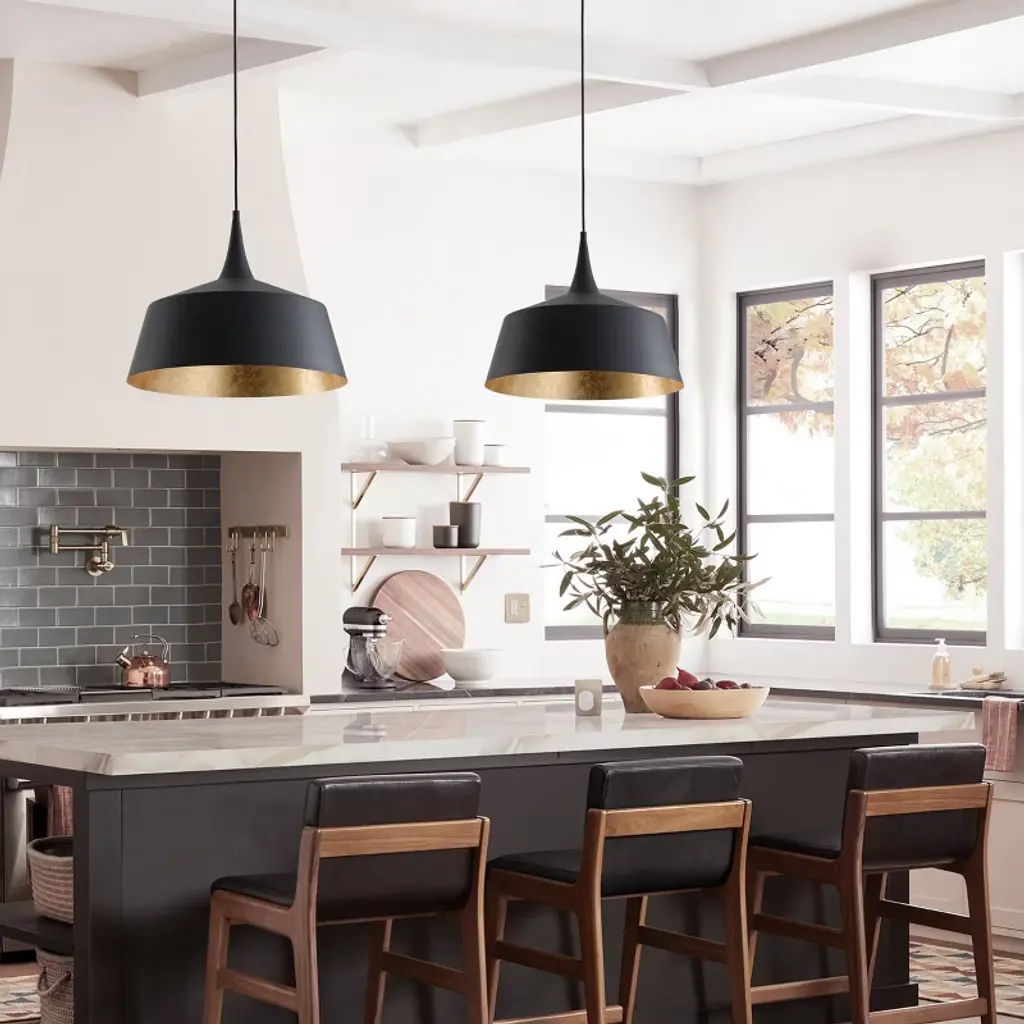 Dewdrop Contemporary Black Dome Pendant Light Hanging Lamp With Gold Interior Etl Listed Adjustable Fixture For Kitchen Island Dining Room