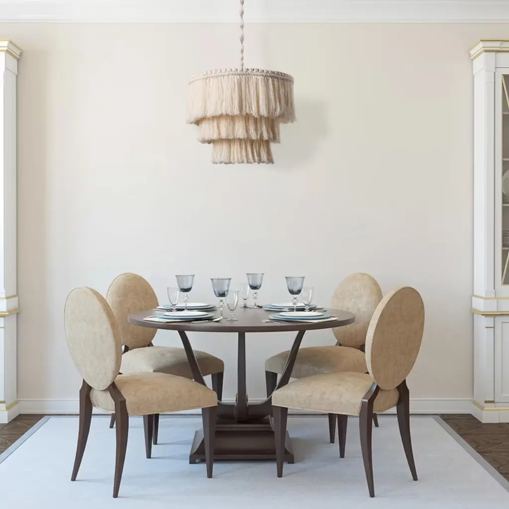 The Dewdrop Boho Fringe Chandelier combines layered cotton tassels with farmhouse charm. ETL certified, E26 bulb compatible, and perfect for bedrooms, dining rooms, or entryways.