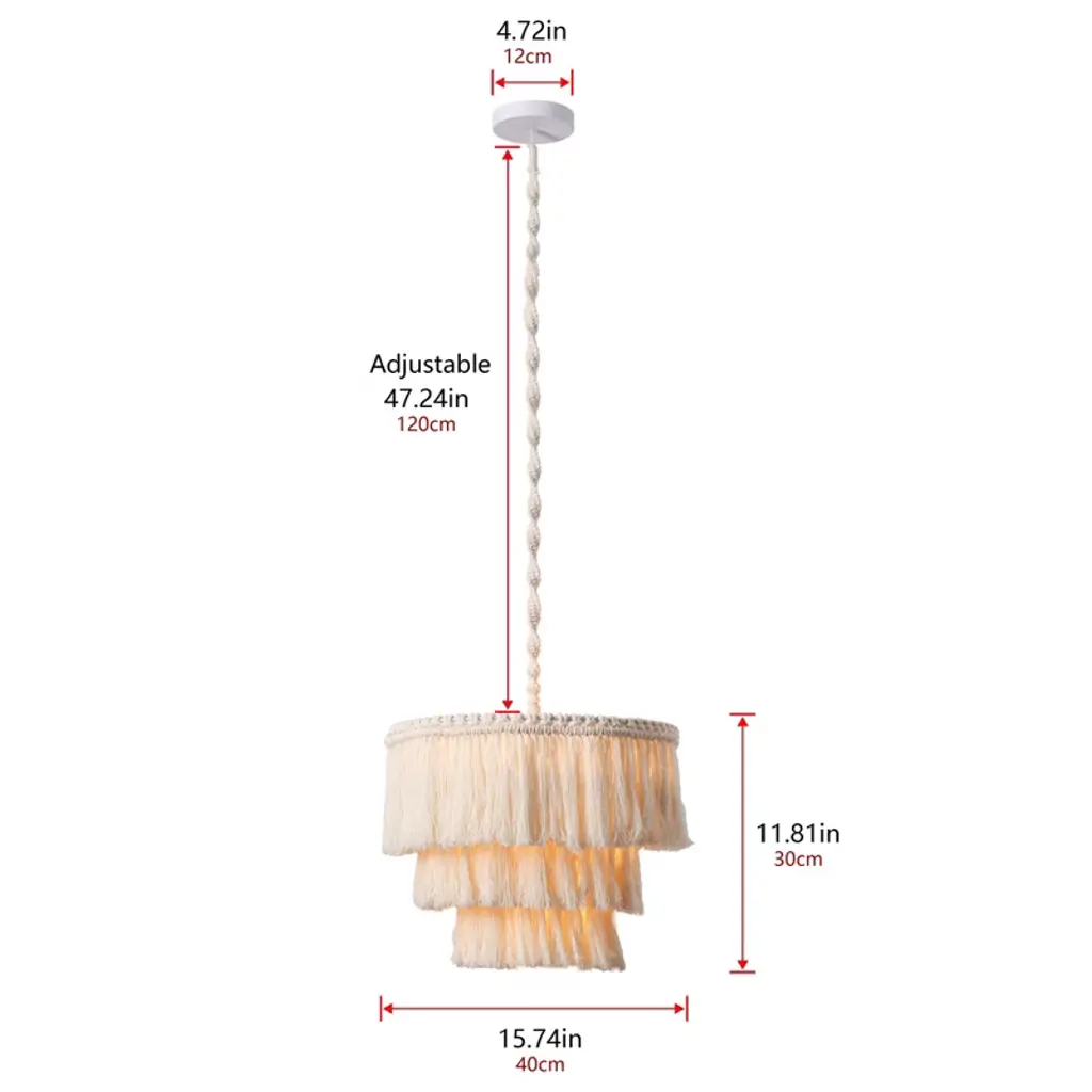 Dewdrop Farmhouse Boho Macrame Tassel Chandelier Layered Fringe Pendant Ceiling Light For Hallway