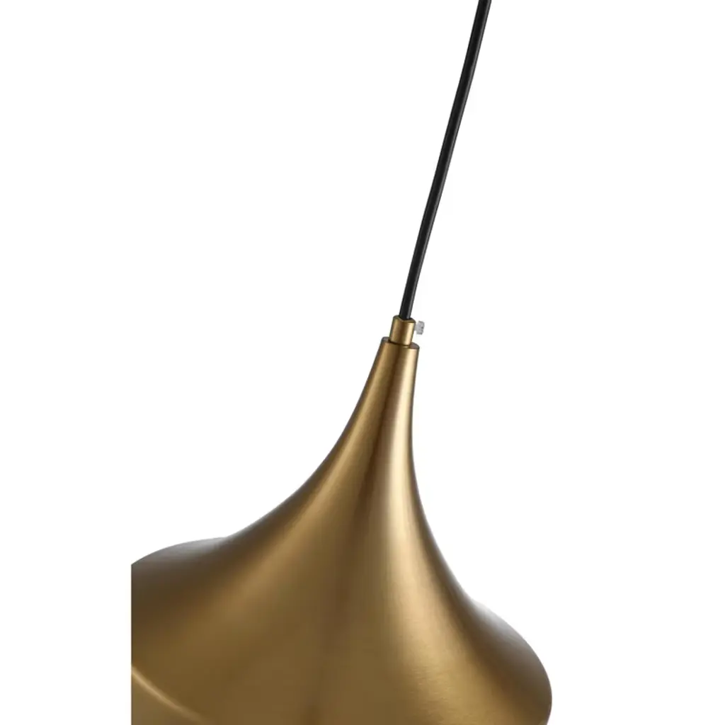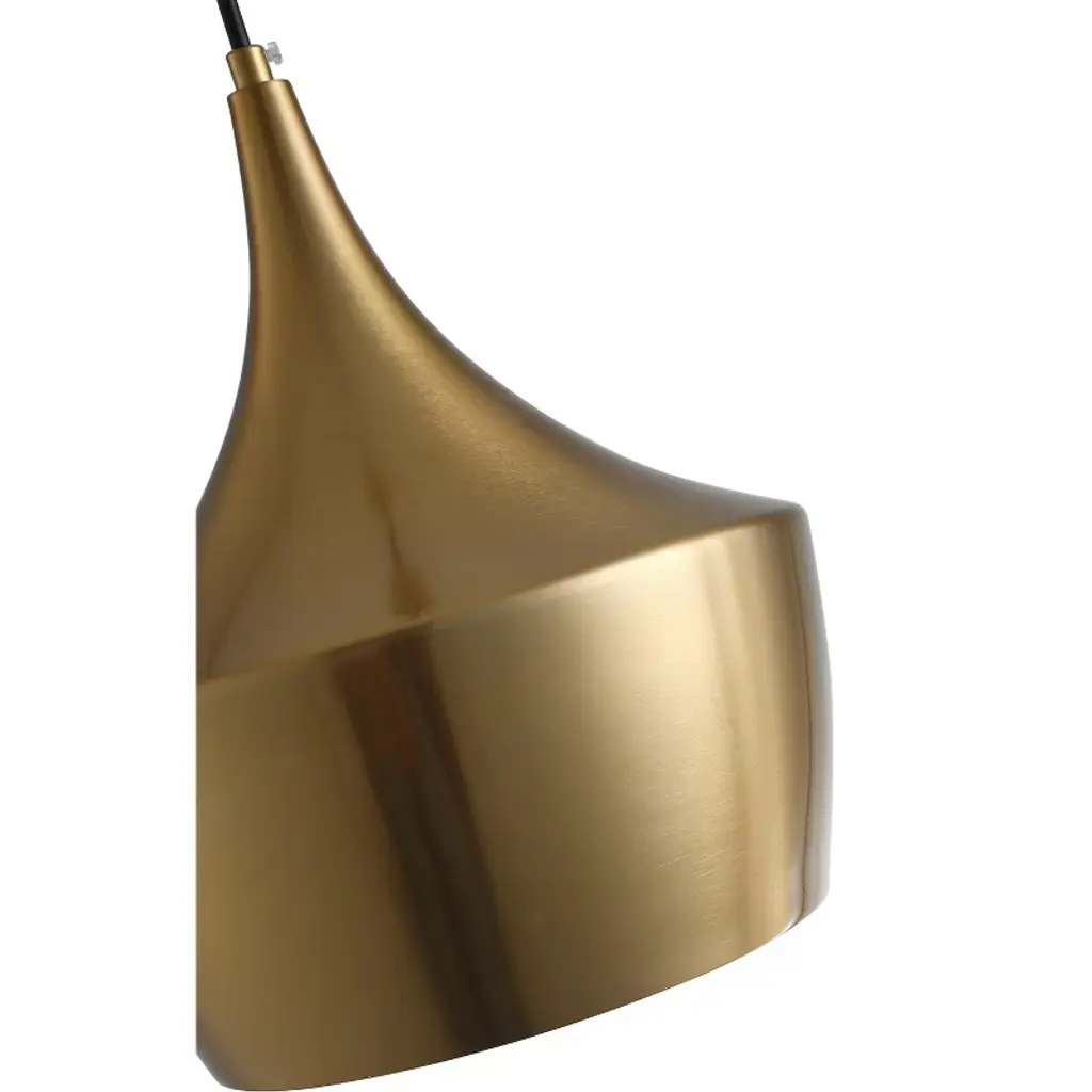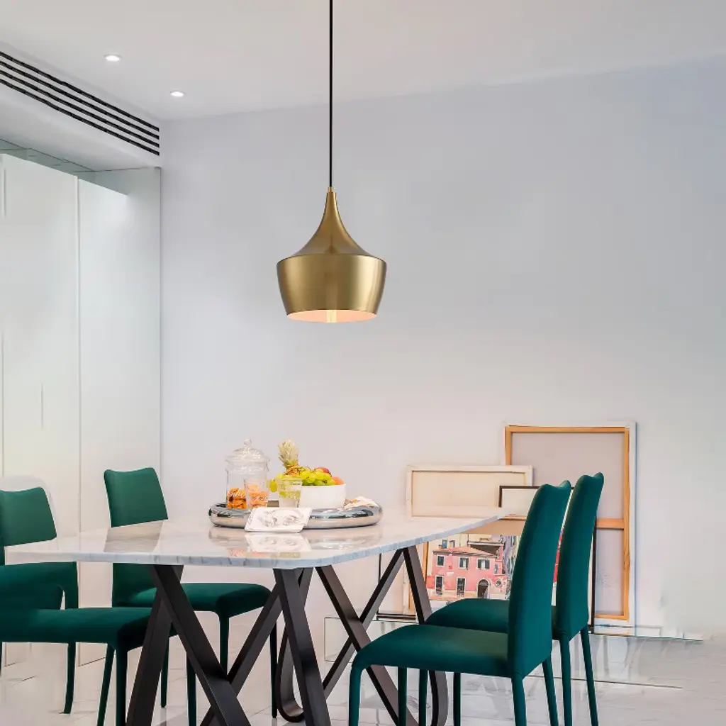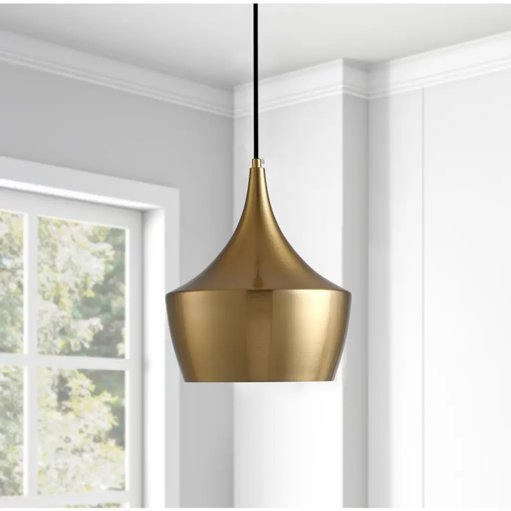 The Dewdrop Modern Gold Pendant Light features a copper-tone iron body, brushed gold metal shade, and matching gold canopy for a sleek, modern look. ETL certified for safety, it fits standard E26 bulbs (max 40W, not included) and includes an adjustable cord for versatile installation¡ªperfect for kitchens, dining rooms, and more.