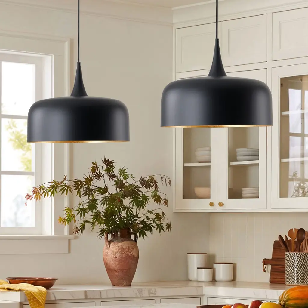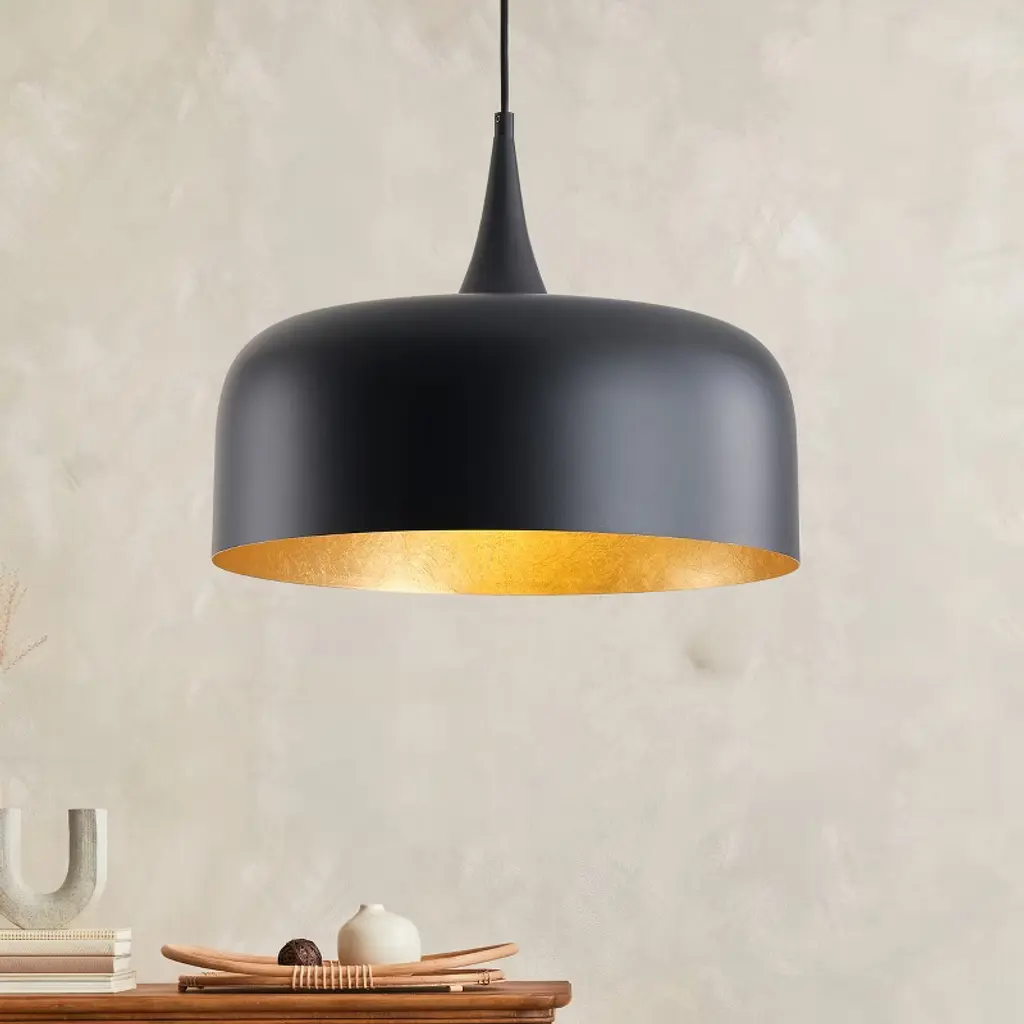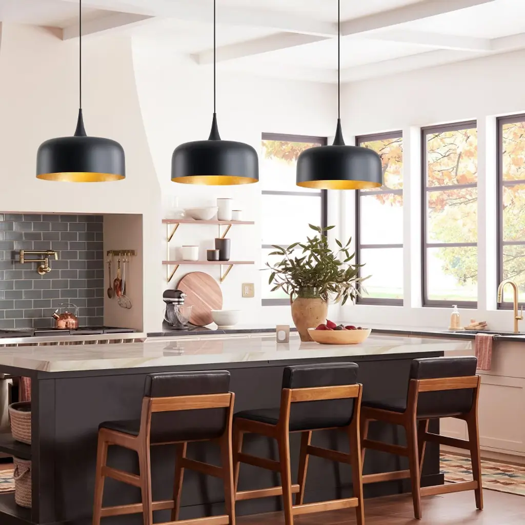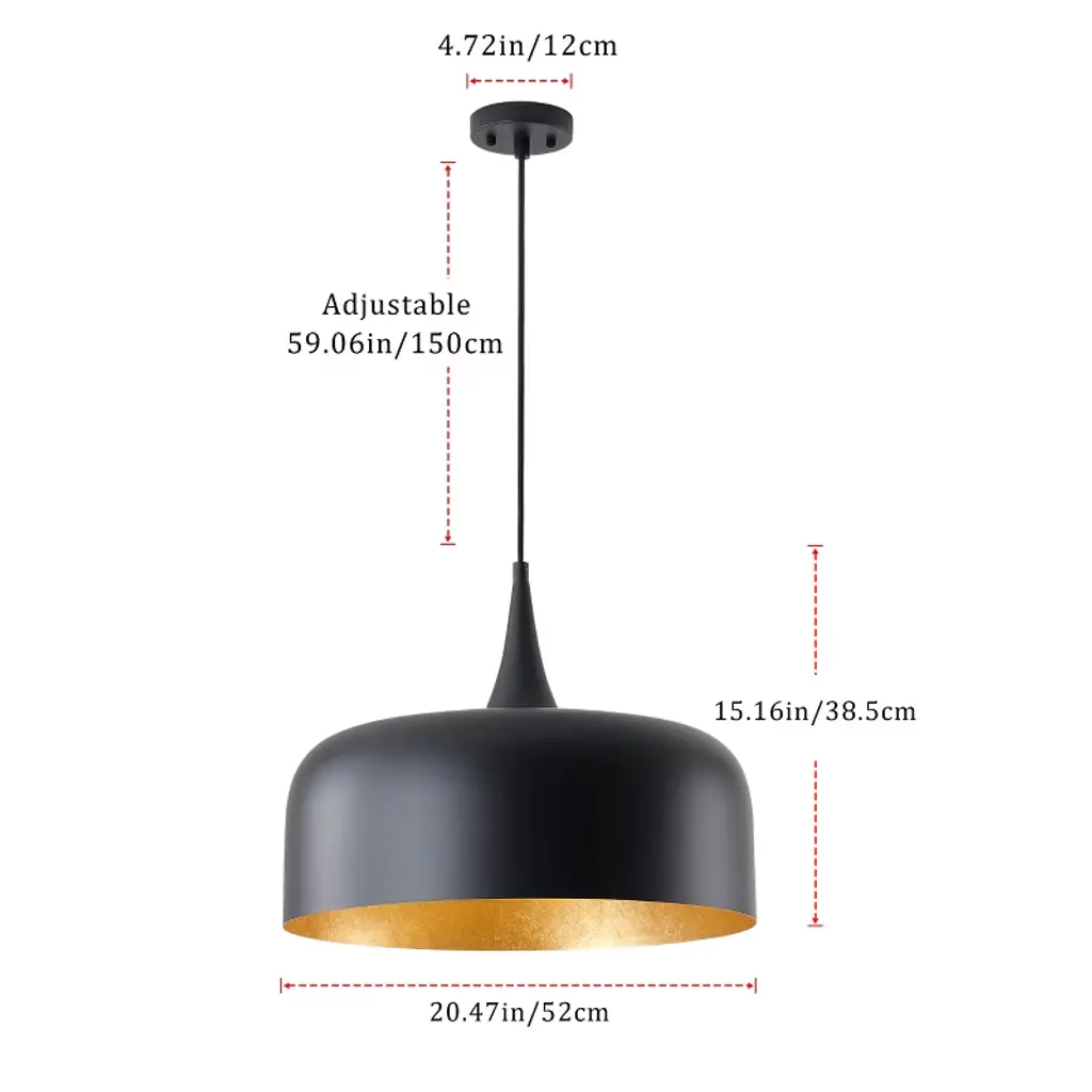 Dewdrop Modern Industrial Black Dome Pendant Light With Gold Interior Etl Listed Adjustable Hanging Lamp For Kitchen Island Dining Room