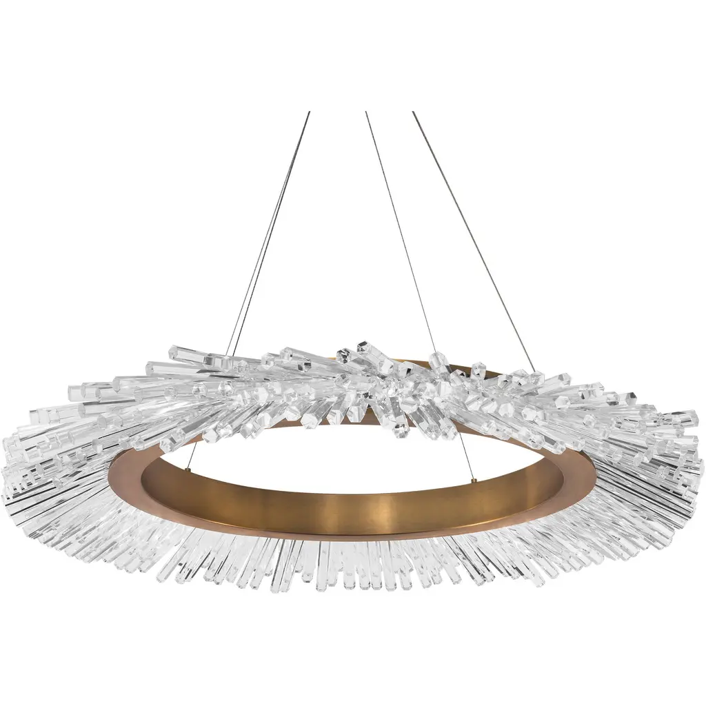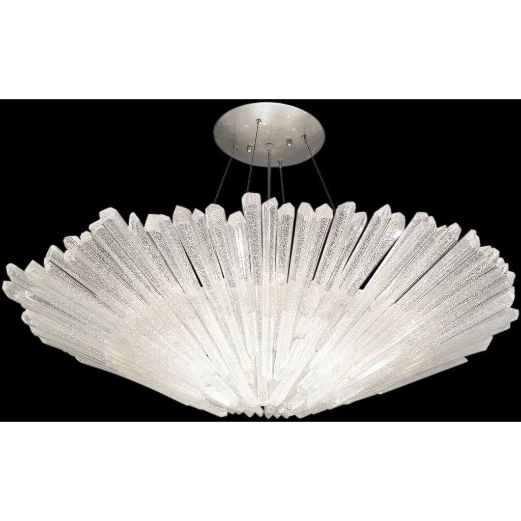 Building on glass techniques over 2000 years old, and using the core element of natural quartz, the spires on this incandescent pendant is worked by hand at over 2000 degrees. The raw crystal spires are then rough cut and hand polished to expose the inner