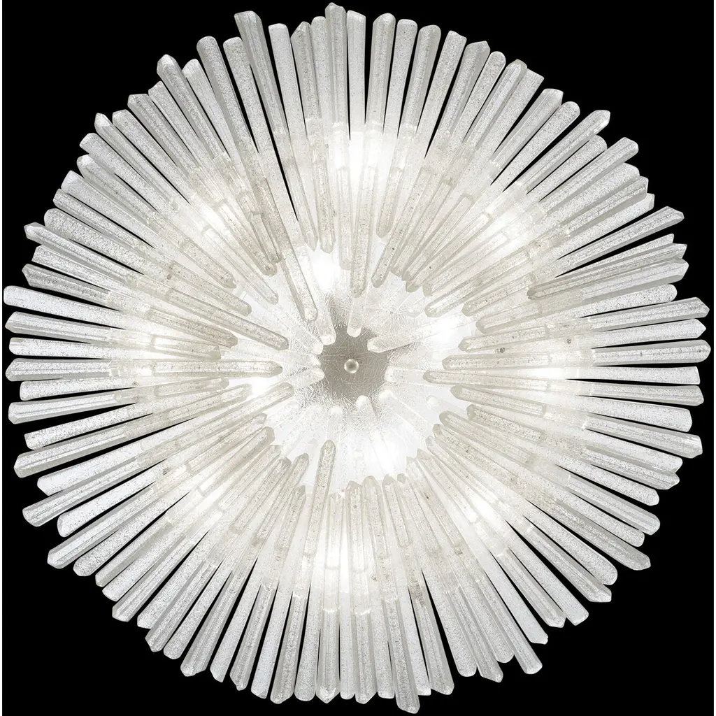 Building on glass techniques over 2000 years old, and using the core element of natural quartz, the spires on this incandescent pendant is worked by hand at over 2000 degrees. The raw crystal spires are then rough cut and hand polished to expose the inner