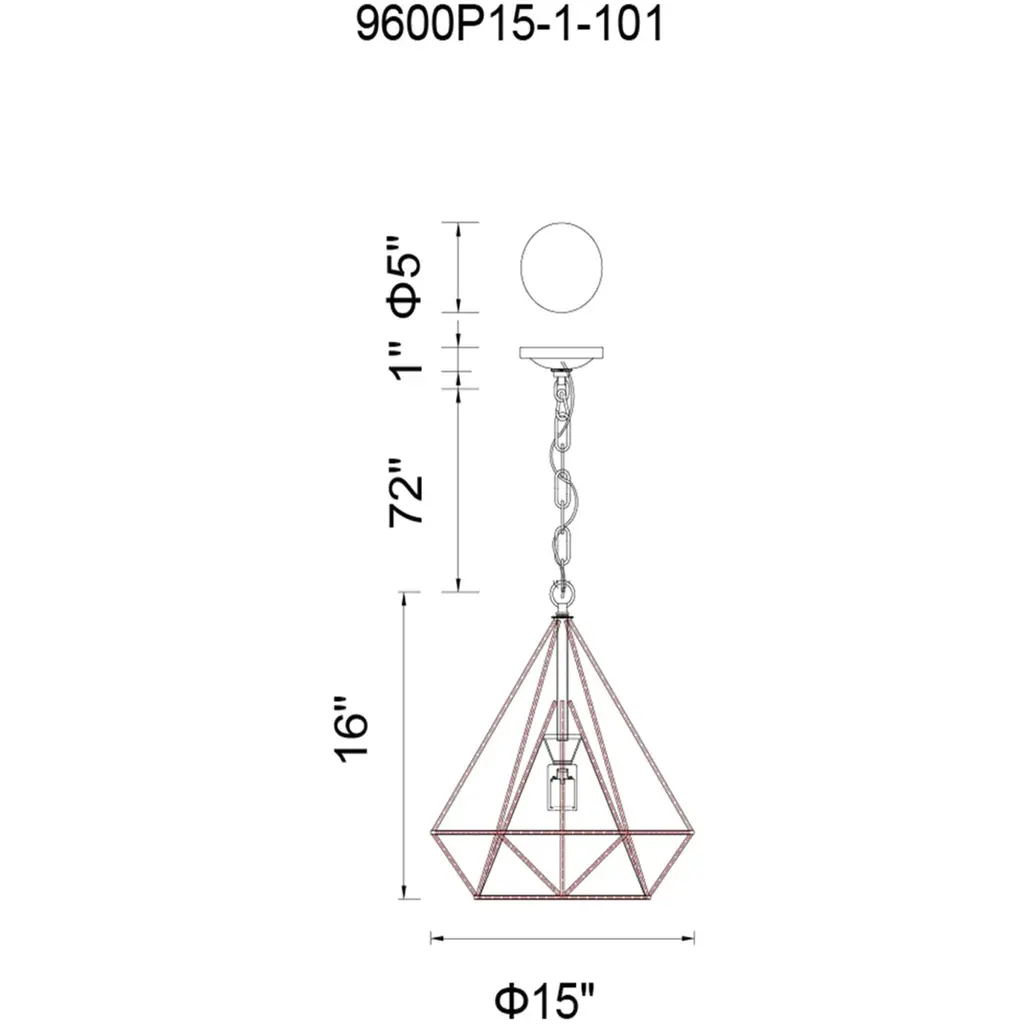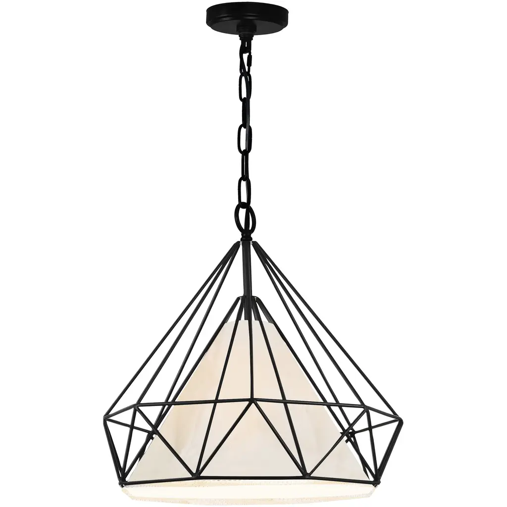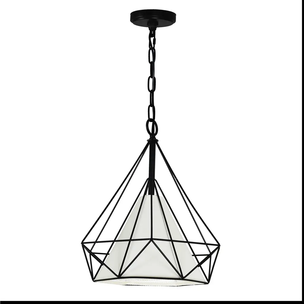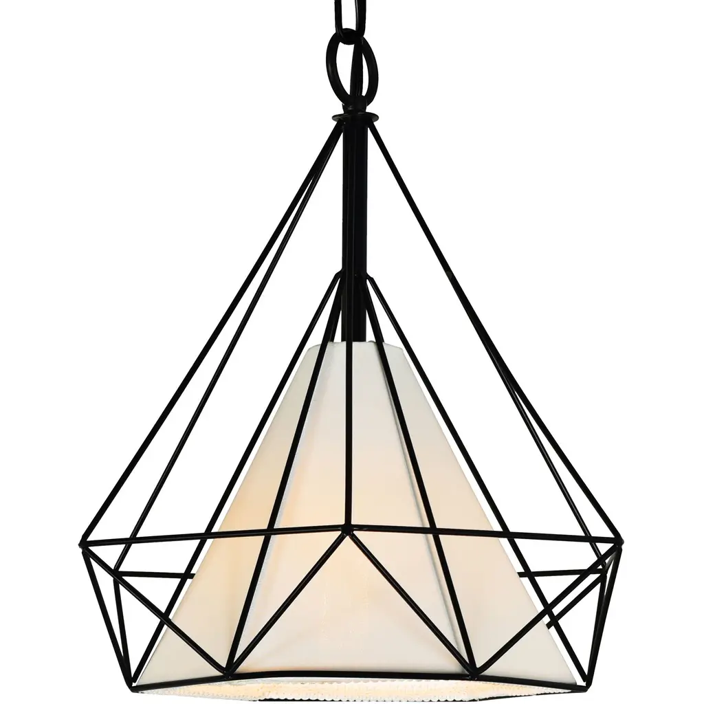 This breathtaking Diamond 15'' 1-Light Down Pendant with Black Finish is a bold and stylish take on modern lighting. Designed with a geometric, diamond-inspired silhouette, the slim black metal frame creates a visually compelling focal point while softly enclosing the inner shade. The pendant suspends from an adjustable chain, giving you flexibility in height and placement. Whether you're enhancing a dining room, illuminating a kitchen island, or adding interest to a foyer, this fixture delivers modern charm with customizable function. E26 bulb not included. Finish: Black Light Count: 1 Light Source: E26 Base (Bulb Not Included) Adjustable