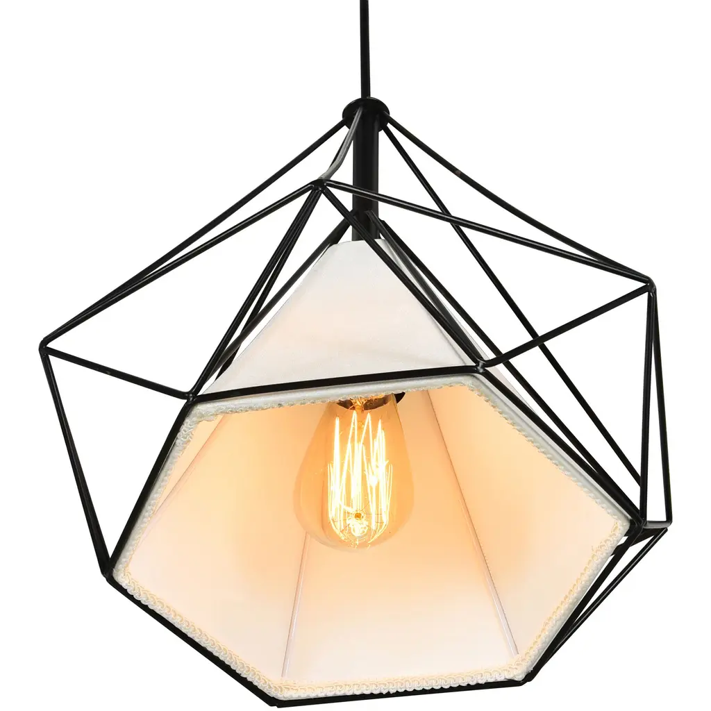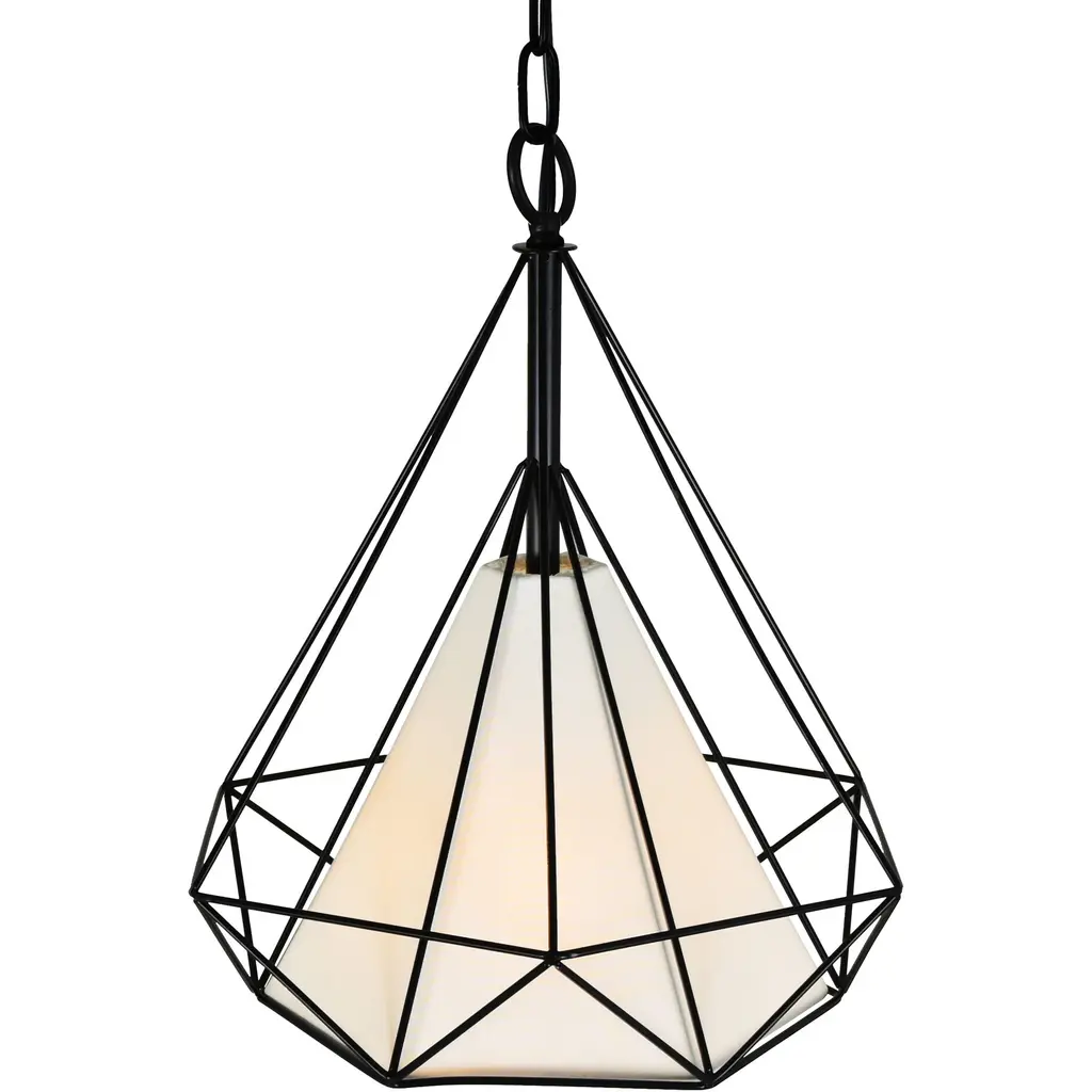 This breathtaking Diamond 20'' 1-Light Down Pendant with Black Finish offers a modern twist on geometric lighting. Featuring a bold diamond shape with defined facets, this pendant light brings visual interest and ambient illumination to your living space. Its clean-lined metal frame in matte black is the perfect complement to modern, industrial, or contemporary interiors. Hang this in pairs or clusters over a kitchen island or dining area to create a trendy yet welcoming atmosphere. Compatible with a single E26 base bulb (not included). Finish: Black Light Count: 1 Light Source: E26 Base (Bulb Not Included) Adjustable Hanging Height: Yes Material: Metal Style: Modern / Industrial / Geometric