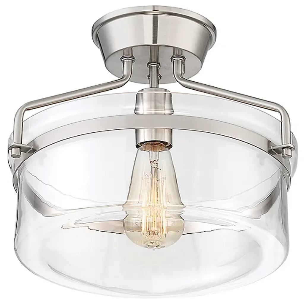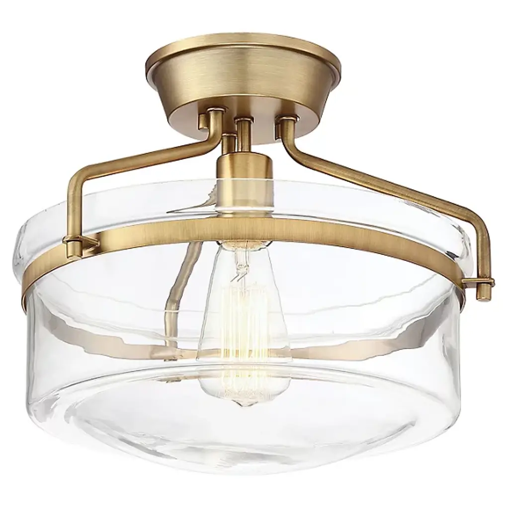 Extended versatility. The Diesal Semi-Flushmount by Alder & Ore sports a single bulb while featuring a broad glass enclosure that carries the aesthetic of a larger multi-light fixture. Elegant metalwork holds the shade in place while contributing to the light's wide stance, making it an assertive finishing touch for any room's interior design.
