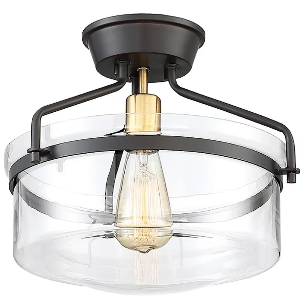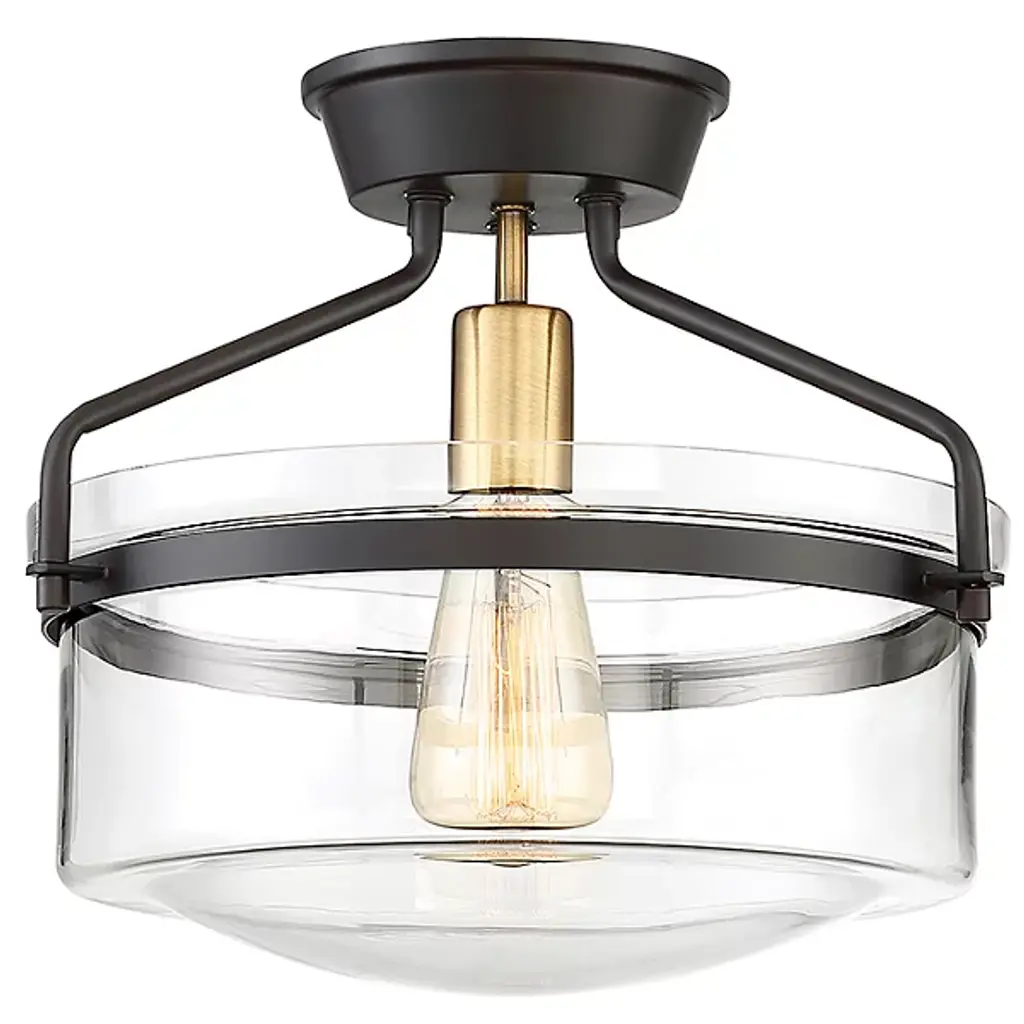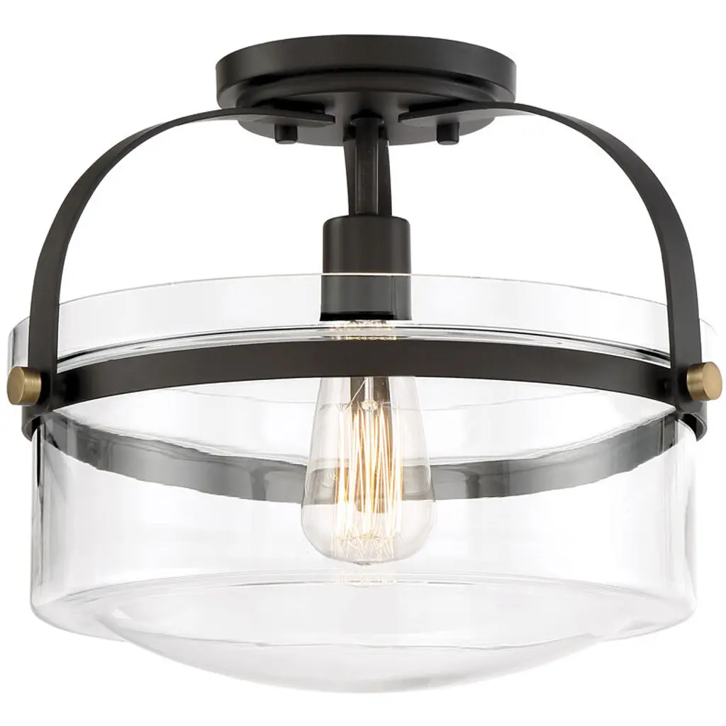 Extended versatility. The Diesal Semi-Flushmount by Alder & Ore sports a single bulb while featuring a broad glass enclosure that carries the aesthetic of a larger multi-light fixture. Elegant metalwork holds the shade in place while contributing to the light's wide stance, making it an assertive finishing touch for any room's interior design.