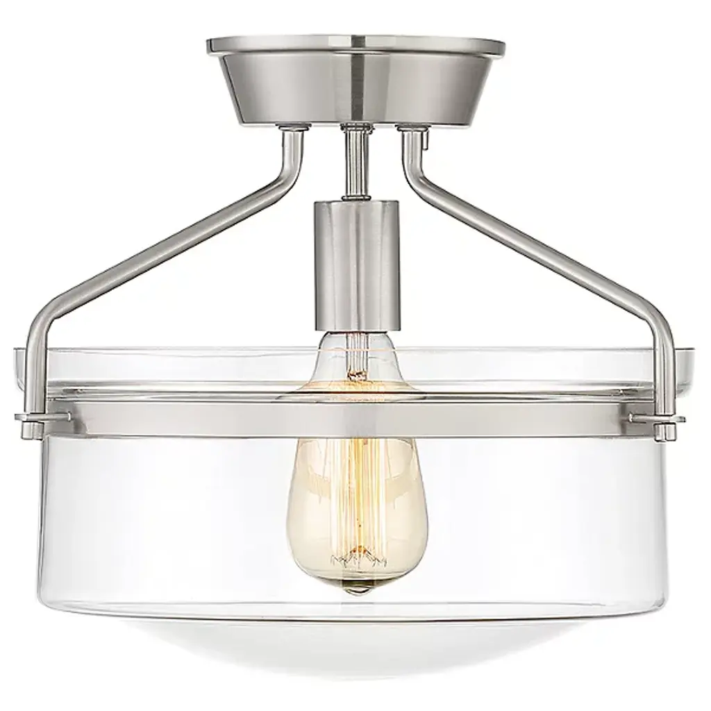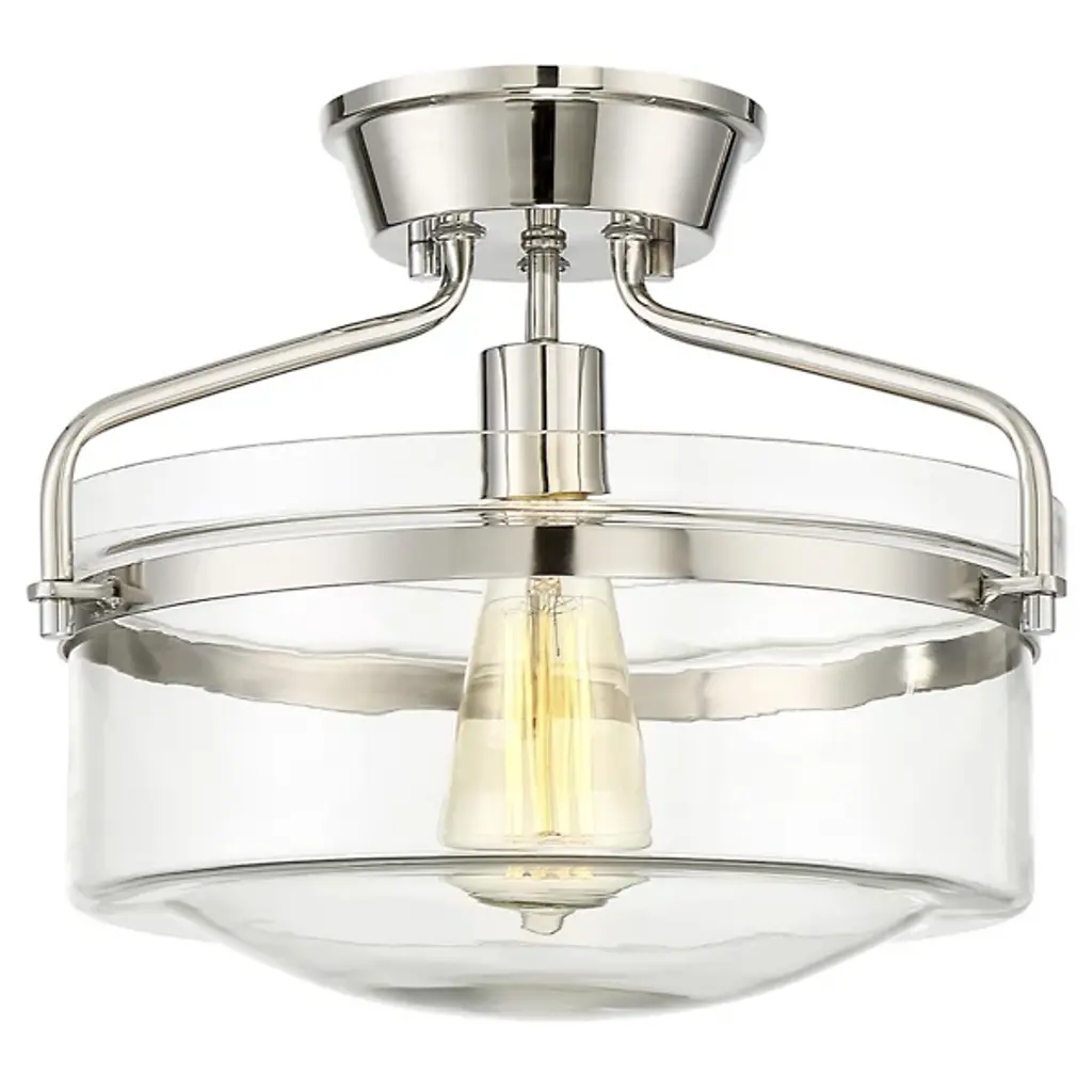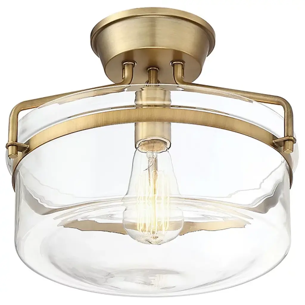 Extended versatility. The Diesal Semi-Flushmount by Alder & Ore sports a single bulb while featuring a broad glass enclosure that carries the aesthetic of a larger multi-light fixture. Elegant metalwork holds the shade in place while contributing to the light's wide stance, making it an assertive finishing touch for any room's interior design.