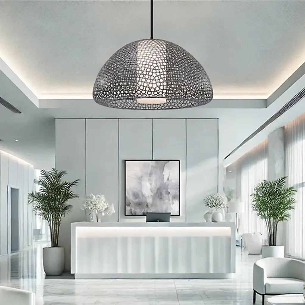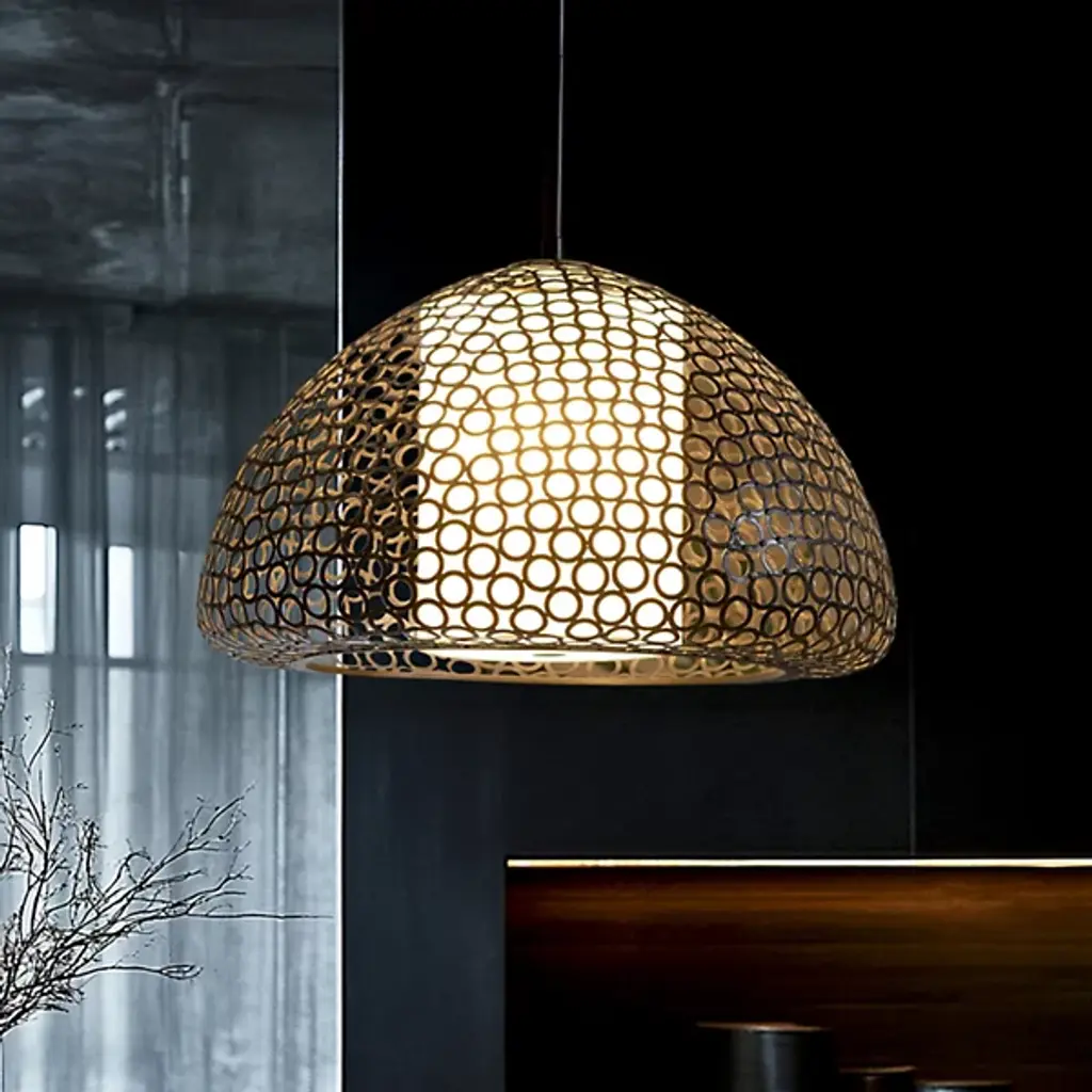The Dilston Dome Pendant from Justice Design Group brings a touch of elegance to your modern spaces. Featuring a fabric and metal construction, this fixture showcases a dome shape that makes it an ideal choice for enhancing the aesthetic of any dining room, hallway, or entryway. Its modern design seamlessly fits into various settings, adding a sophisticated touch. This pendant is perfect for residential use only and embodies the expertly crafted design that Justice Design Group is known for.