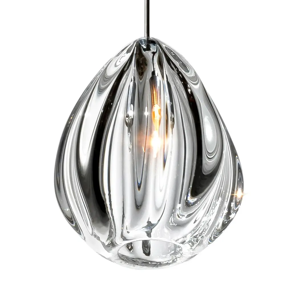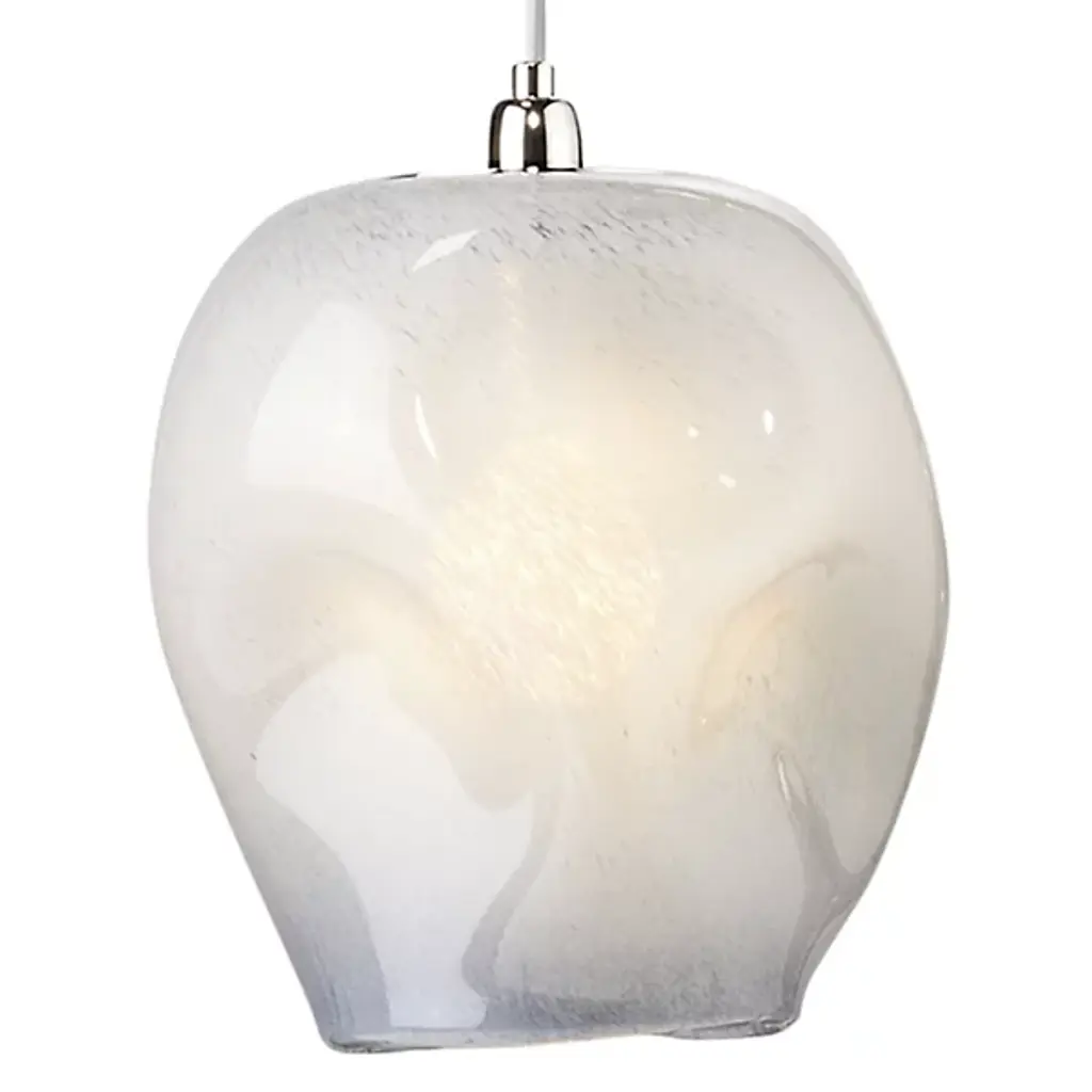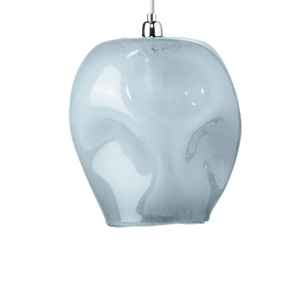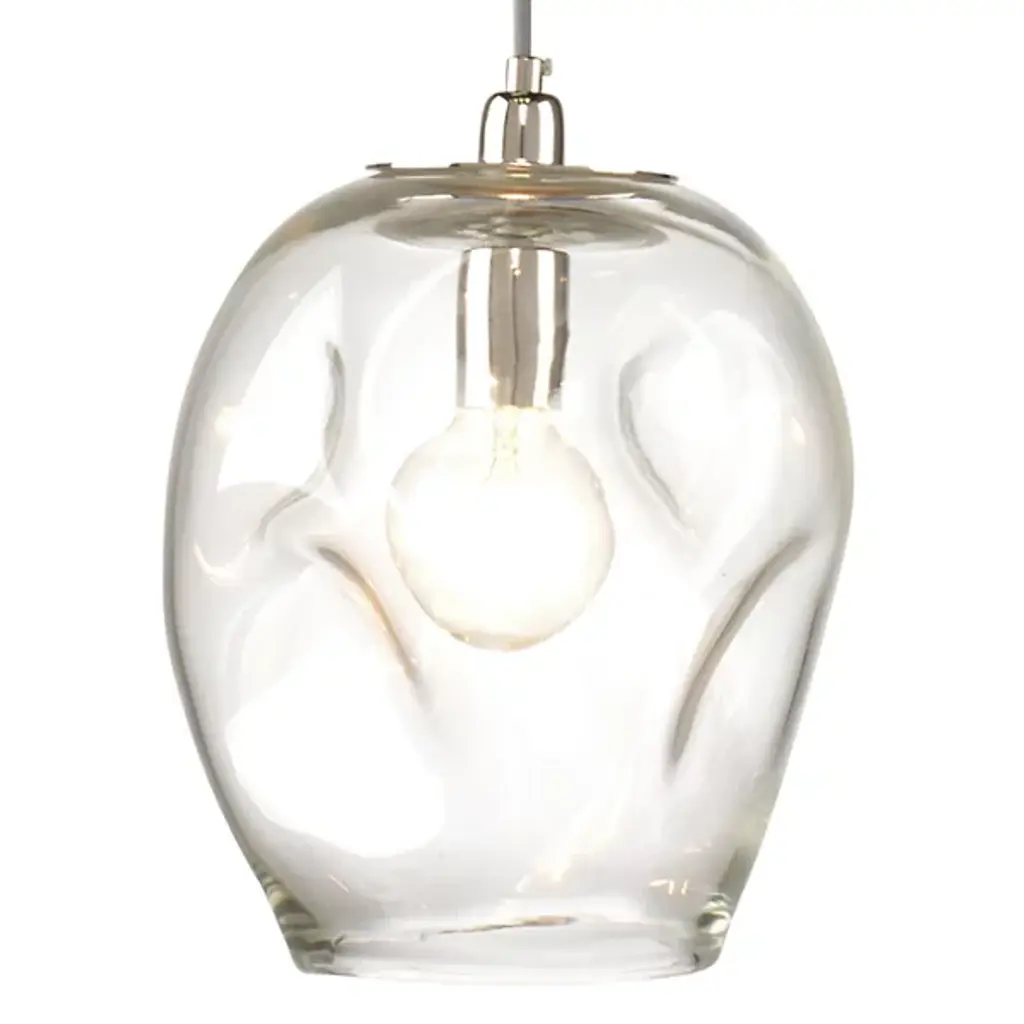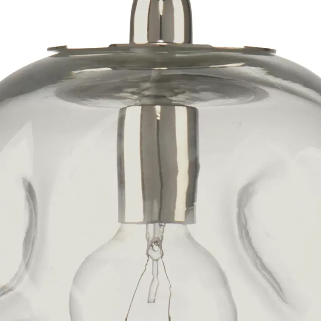 Simple, functional, and elegant, the Dimpled Glass Pendant Jamie Young Co. offers a pleasant addition to your interior spaces. A round canopy made of smooth metal steps down to a conical extrusion, itself holding a single cord down to a rounded, downward-facing socket. The lamping itself is surrounded by a shade of dimpled glass that narrows towards the bottom, creating a pool of light below that contrasts with the warm ambiance shining through the naturally-curving sides.