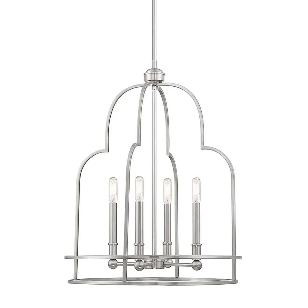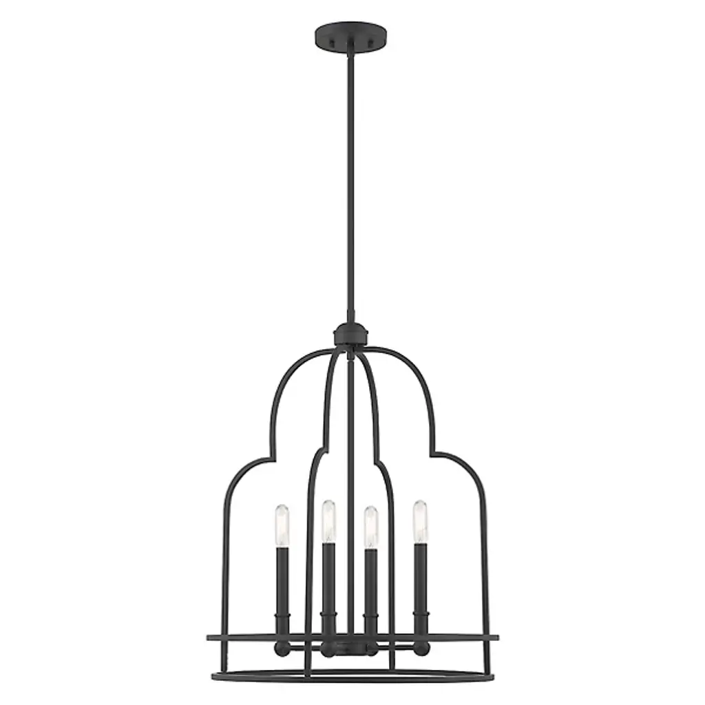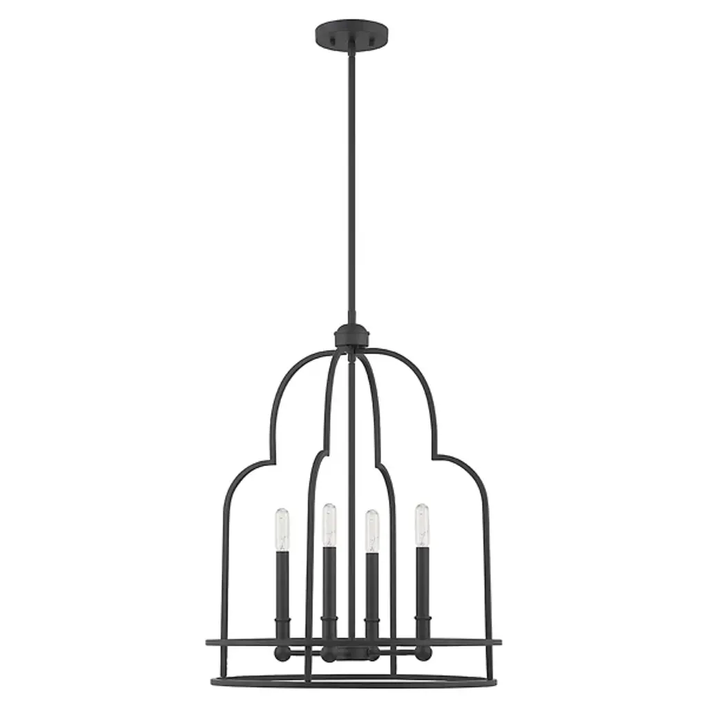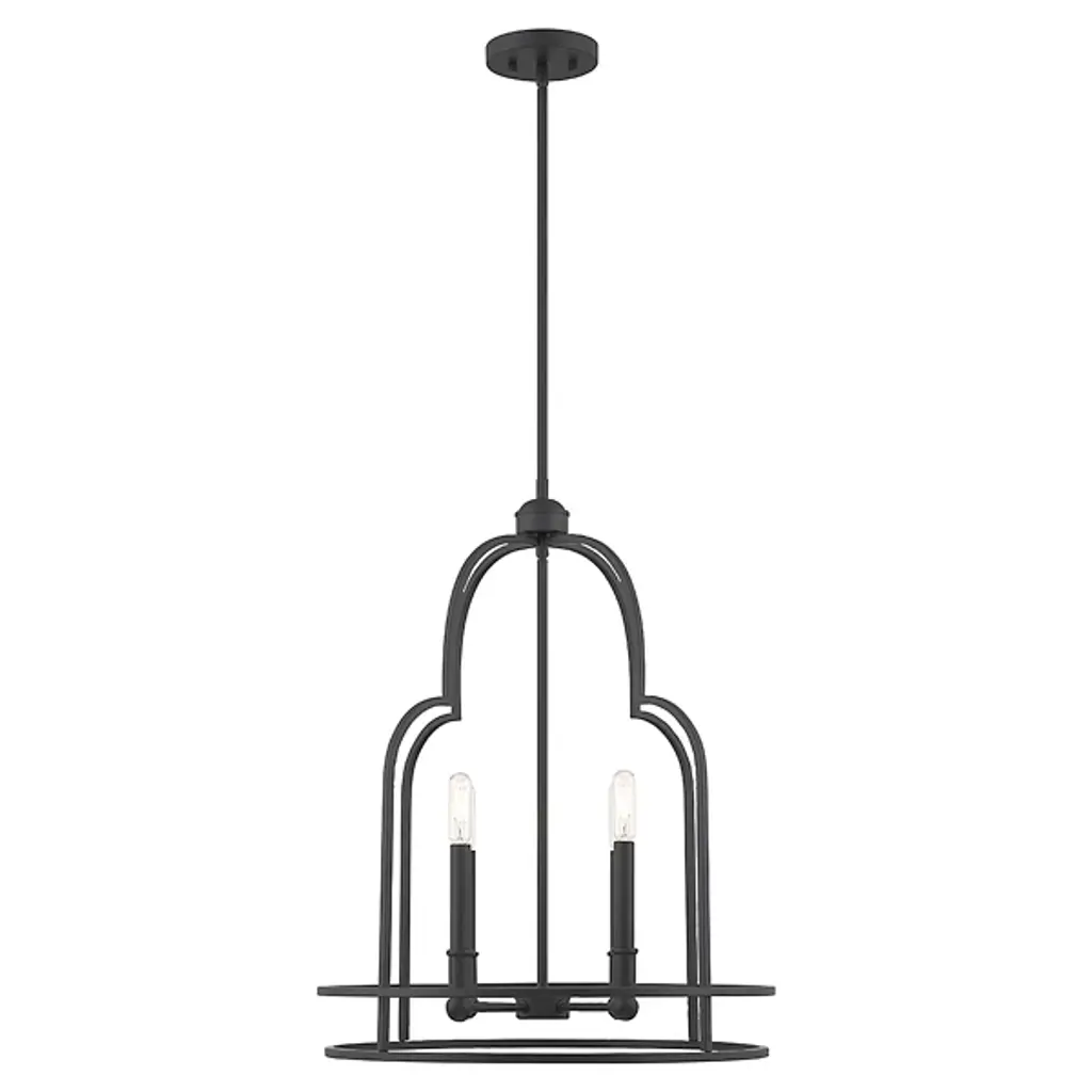 Put your best foot forward with the daring Diplomat Pendant from Savoy House. This enchanting fixture brings bold intrigue with its retro-futuristic cage design. An open lamping structure inhabits the center of the design, perfect for showing off candelabra bulbs in their full retro glory, which practically begs for eye-catching filament bulbs. The crisscrossing metal curves create an intricate silhouette sure to impress upon entry, providing a modern twist to rustic settings or bringing vintage flair to any room with its mysterious allure and cage-like contrast.