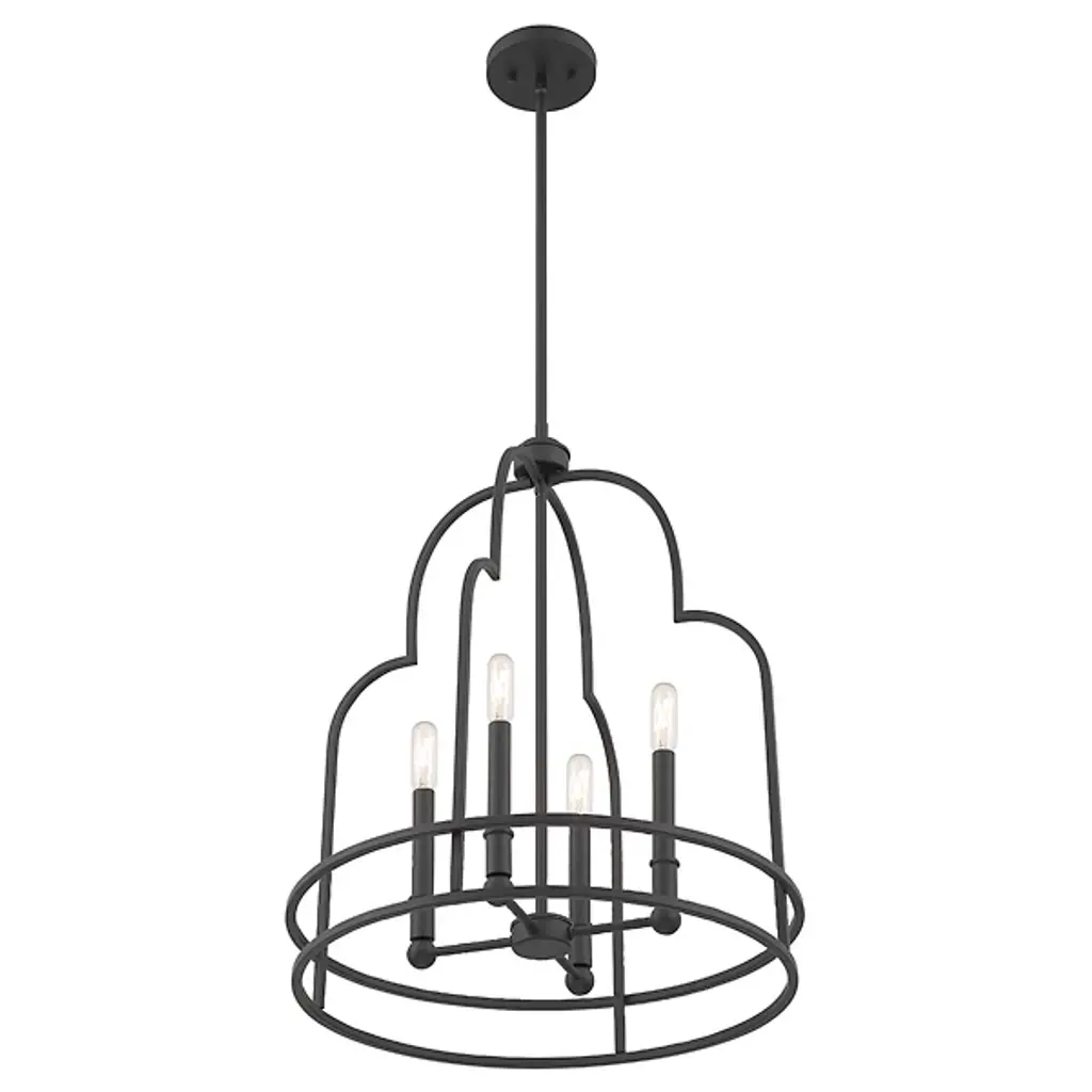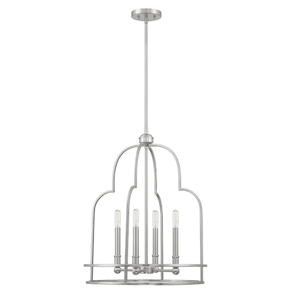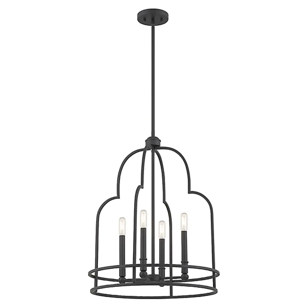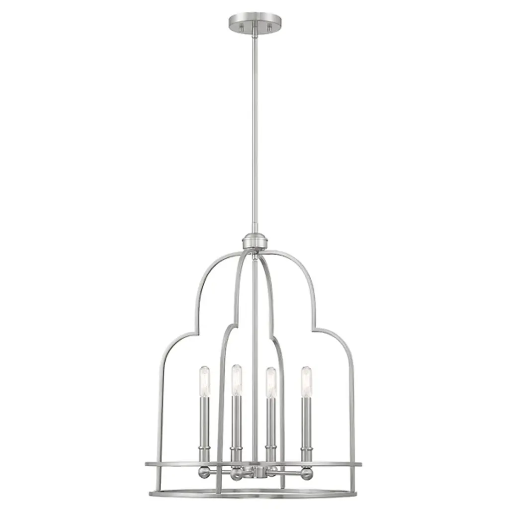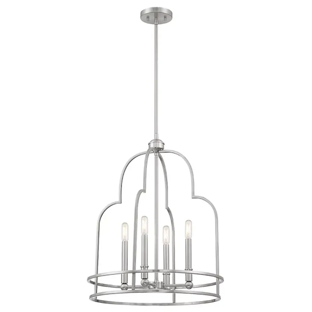 Put your best foot forward with the daring Diplomat Pendant from Savoy House. This enchanting fixture brings bold intrigue with its retro-futuristic cage design. An open lamping structure inhabits the center of the design, perfect for showing off candelabra bulbs in their full retro glory, which practically begs for eye-catching filament bulbs. The crisscrossing metal curves create an intricate silhouette sure to impress upon entry, providing a modern twist to rustic settings or bringing vintage flair to any room with its mysterious allure and cage-like contrast.