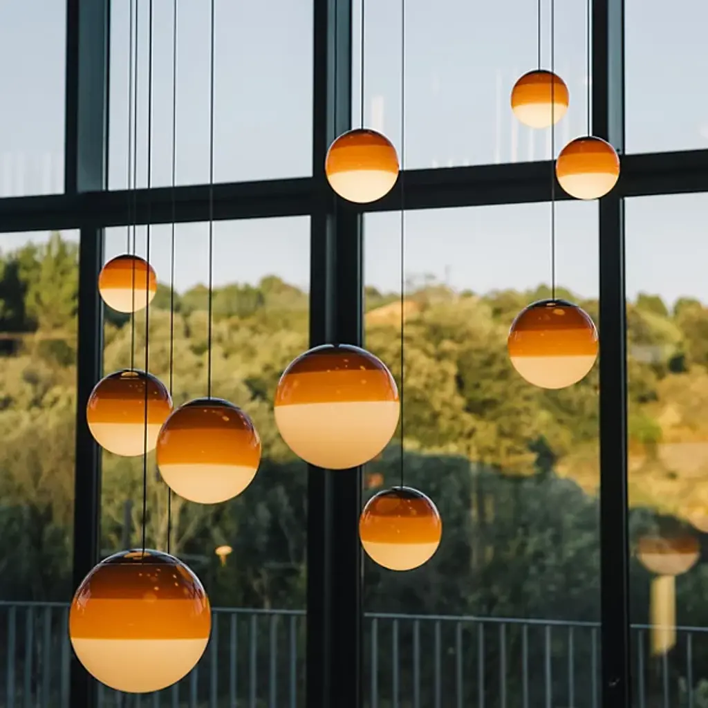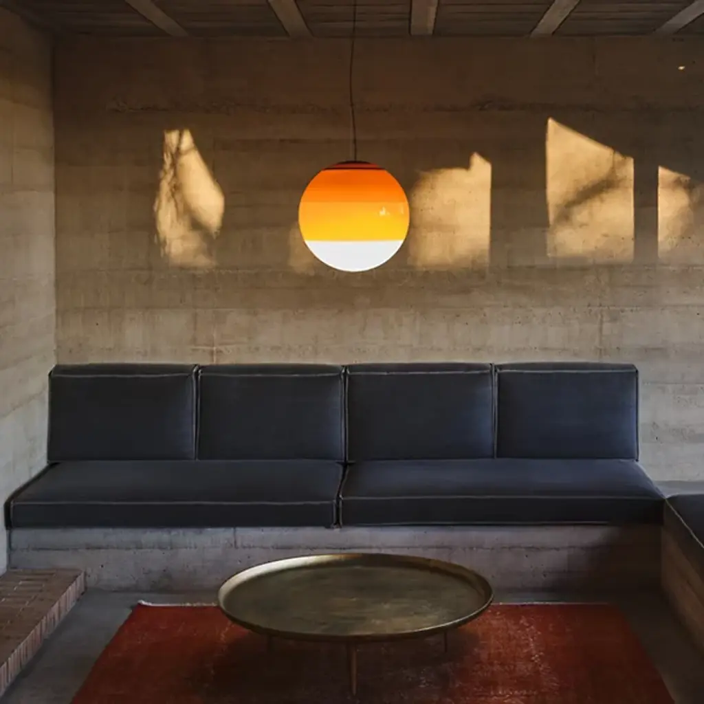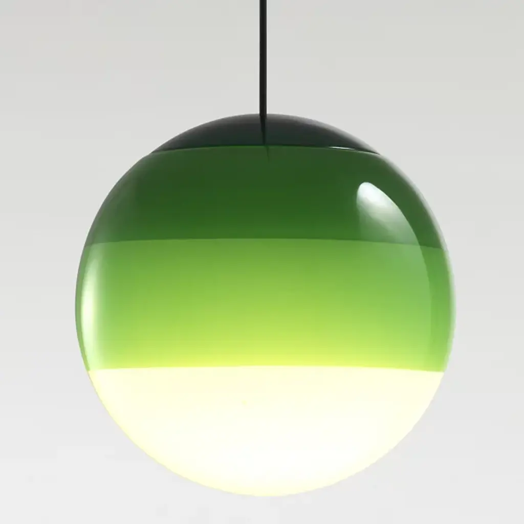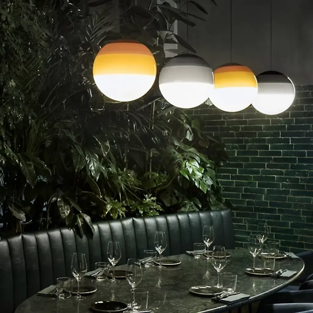 Add a kaleidoscope of color to your inside spaces with the Dipping Light LED Pendant by Marset. A simple design from the mind of Jordi Canudas, it exemplifies his experience in product development and interior design, starting by suspending a single LED lamp from a low-profile canopy via a single thin cable. This lamping descends from a dish retention mount that blends into the globe shade of blown glass below, its sleek and opaque surface contrasting perfectly with the “Dipped” strips of color on the shade’s surface that shine out a multifaceted glow of their own. Small and medium sizes come non-dimmable or with low voltage 0-10V dimming which requires 2 additional wires. Before selecting 0-10V dimming we recommend consulting with a qualified electrician to determine compatibility.